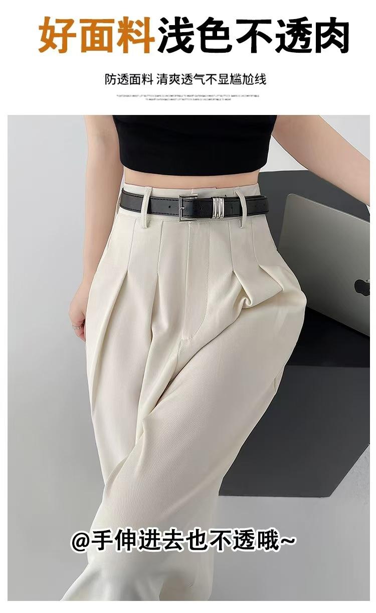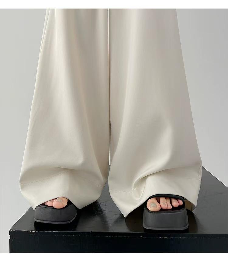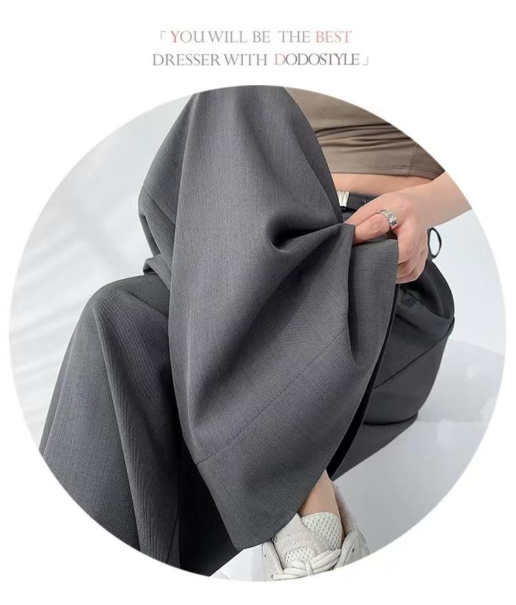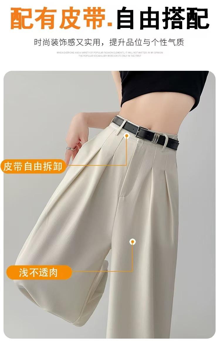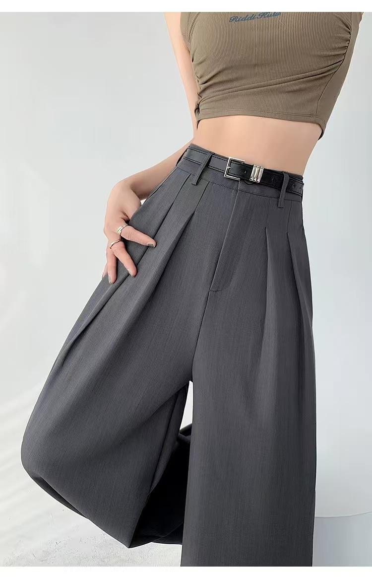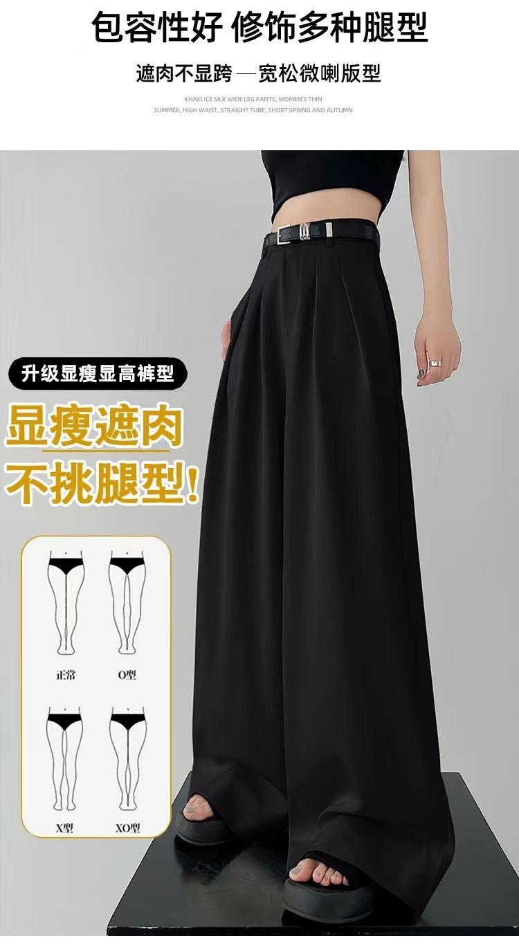 Pantalones de Traje de Alta Gama para Mujer Primavera y Verano 2024 Casual Elegante Cintura Alta Sueltos Drapeados Versátiles Rectos Pierna Ancha Largo hasta el Piso