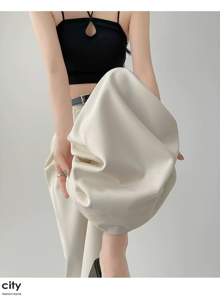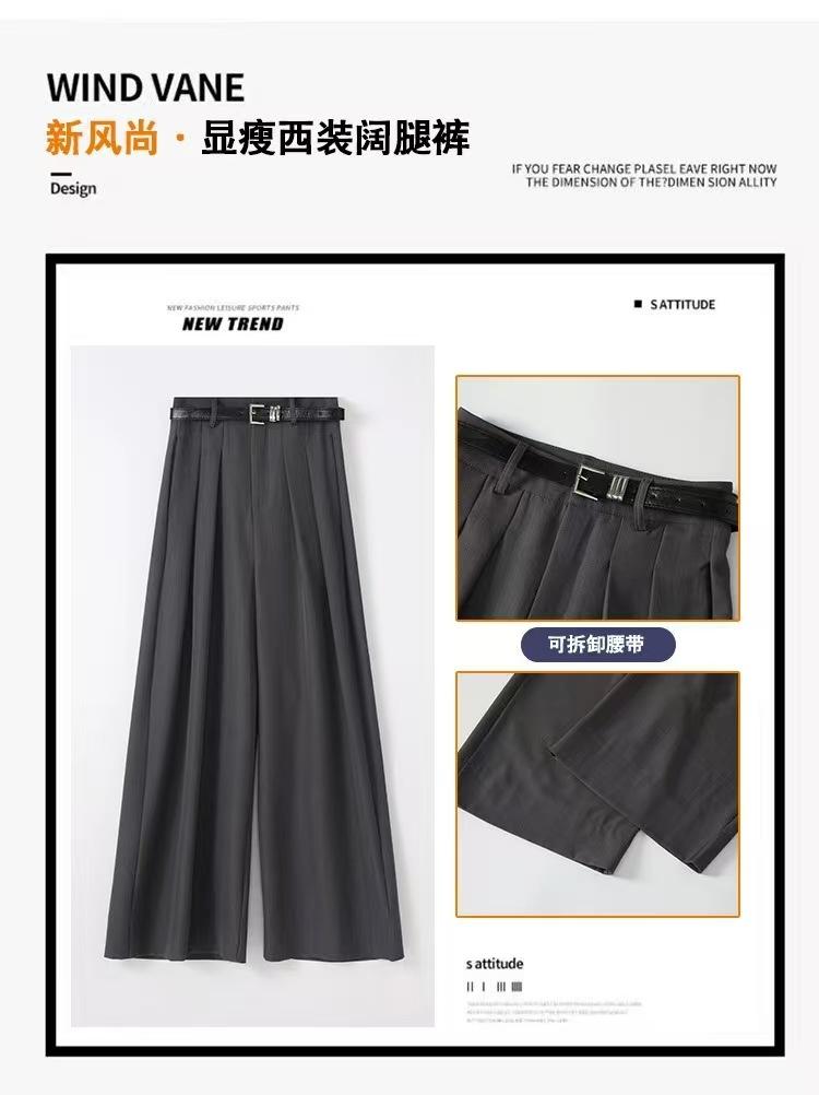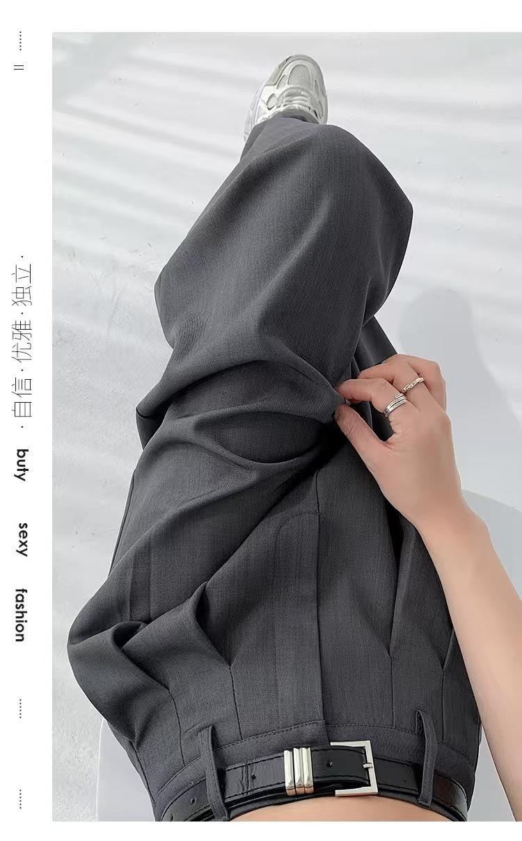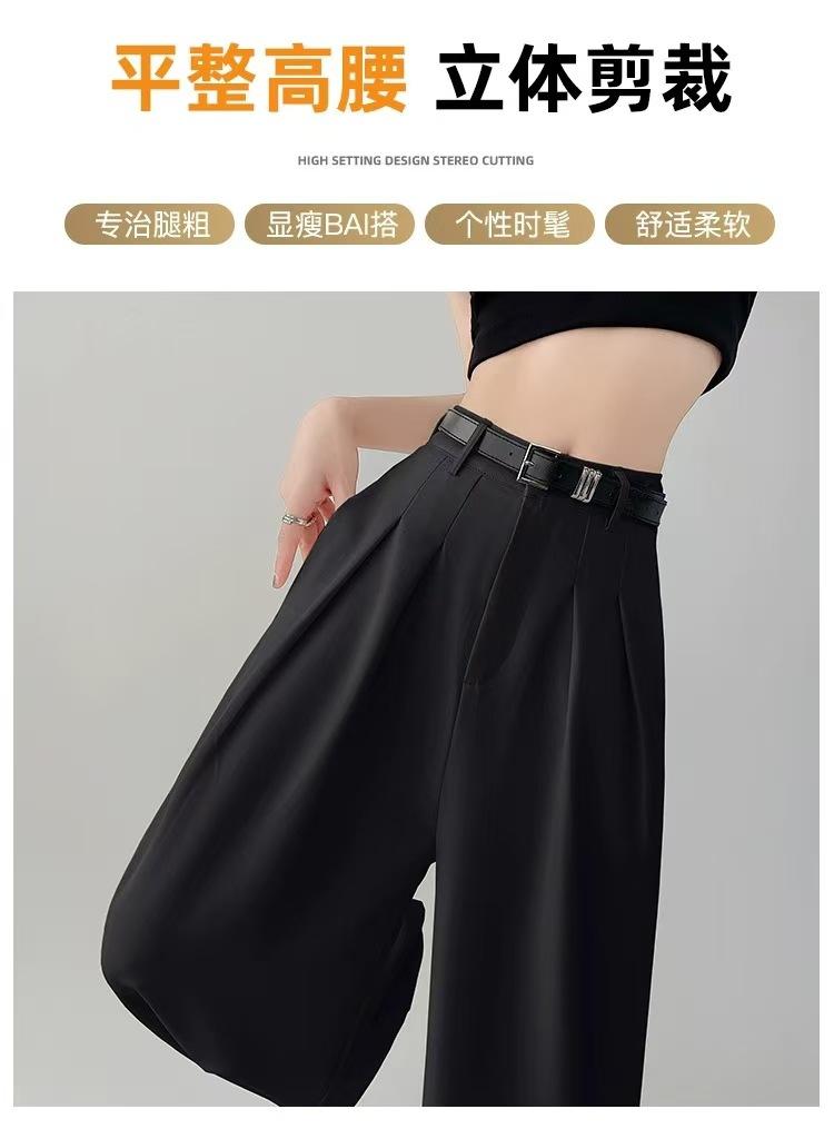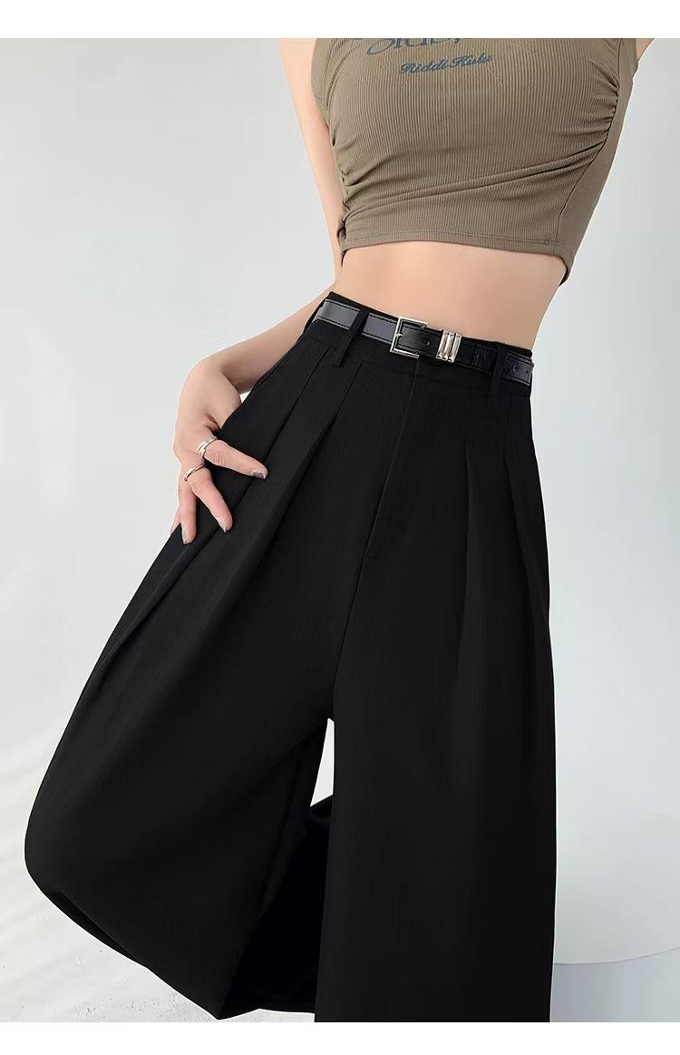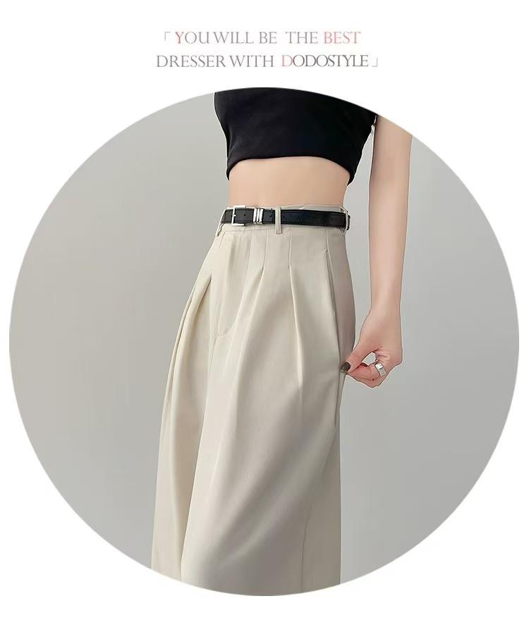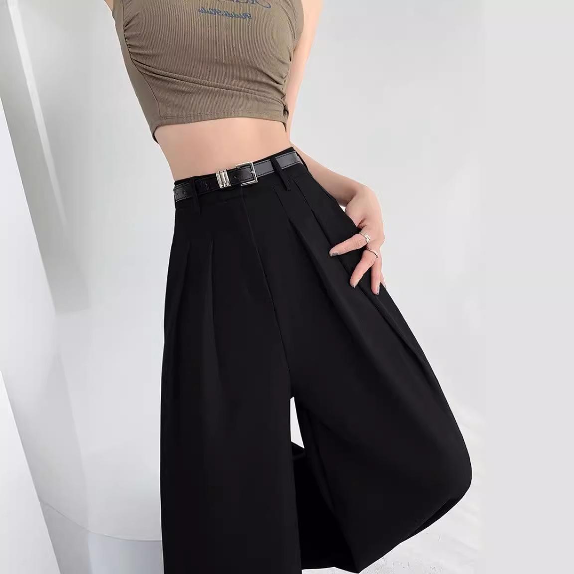 Pantalones de Traje de Alta Gama para Mujer Primavera y Verano 2024 Casual Elegante Cintura Alta Sueltos Drapeados Versátiles Rectos Pierna Ancha Largo hasta el Piso