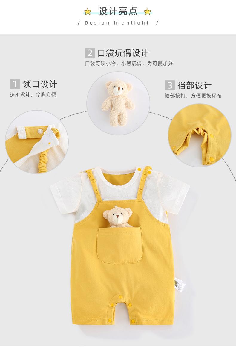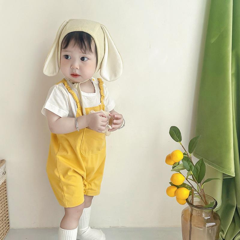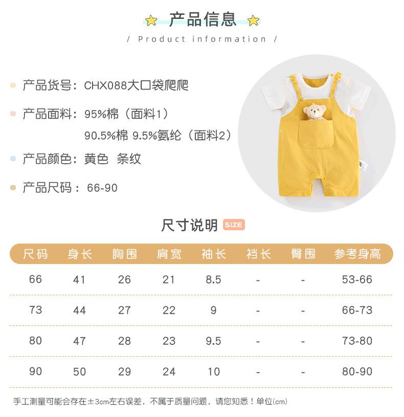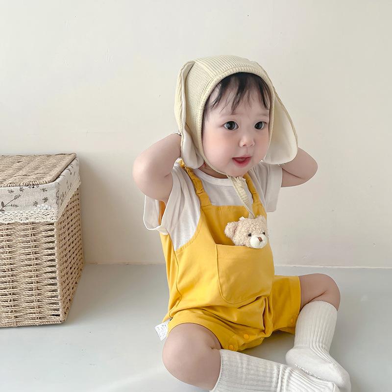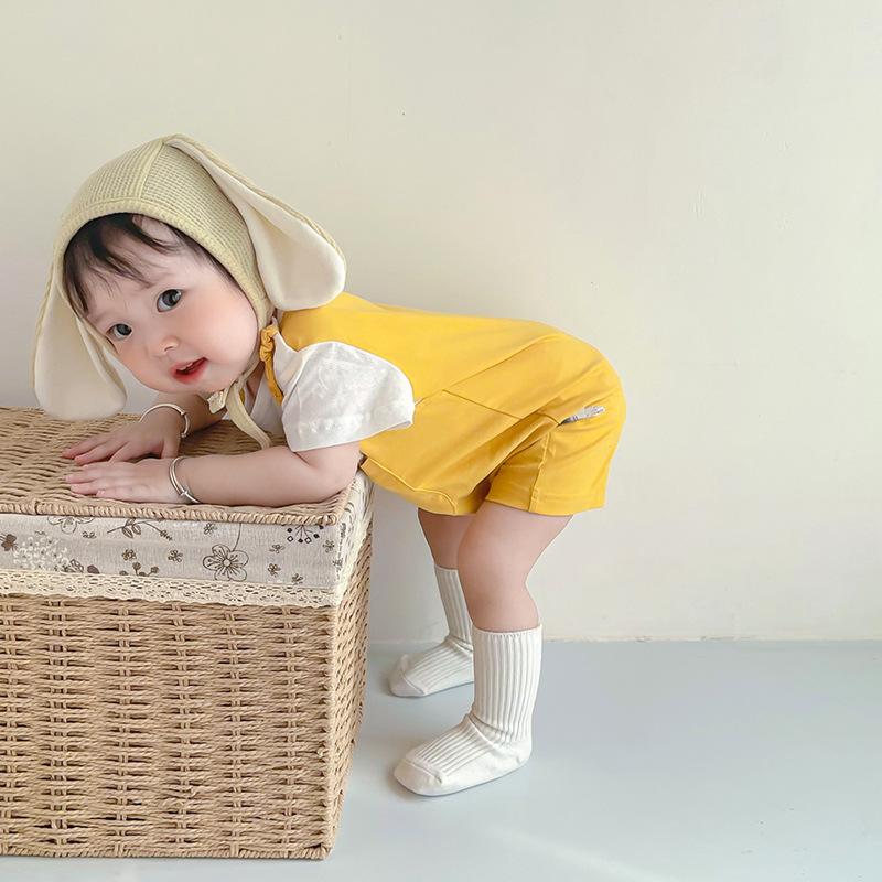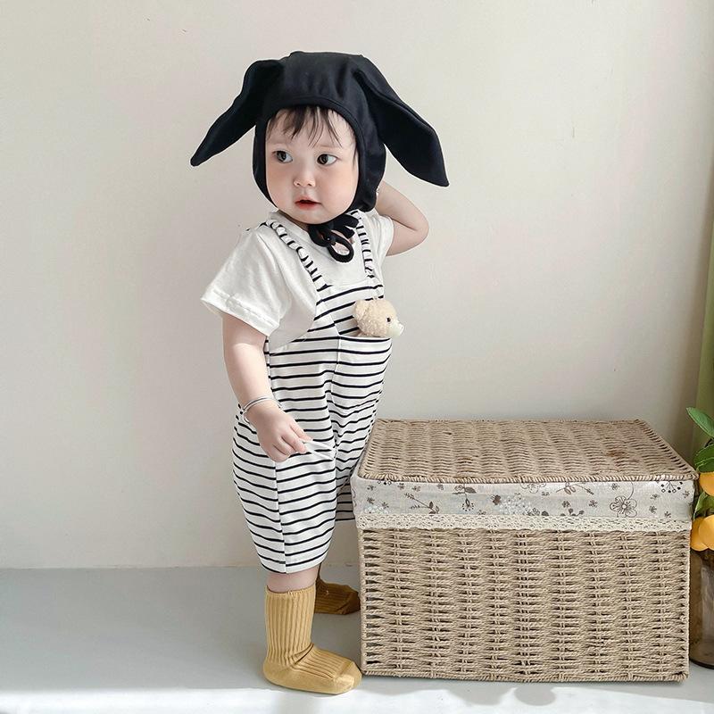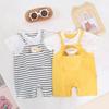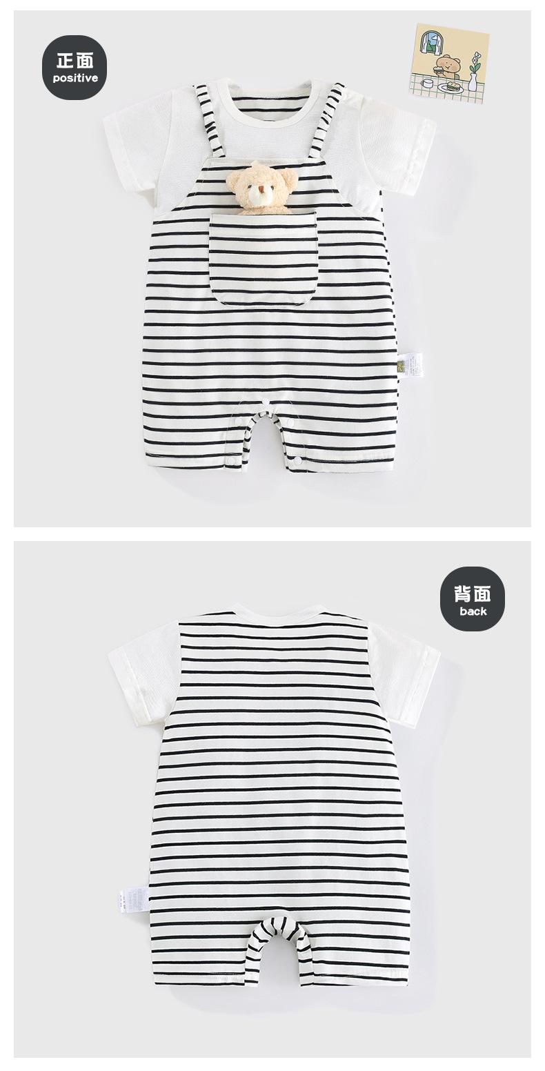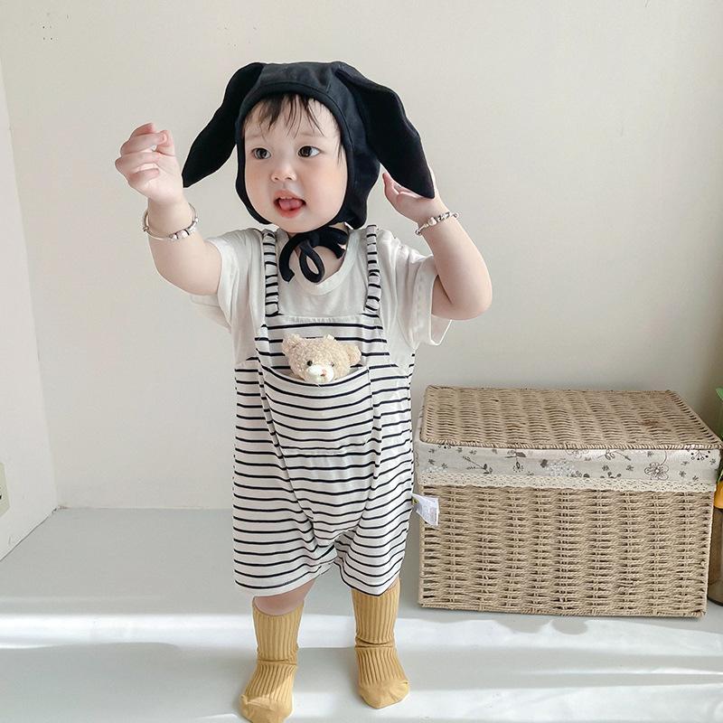 Mono de bebé con dos bolsillos grandes y rayas falsas de estilo coreano de verano 2022