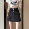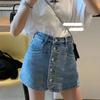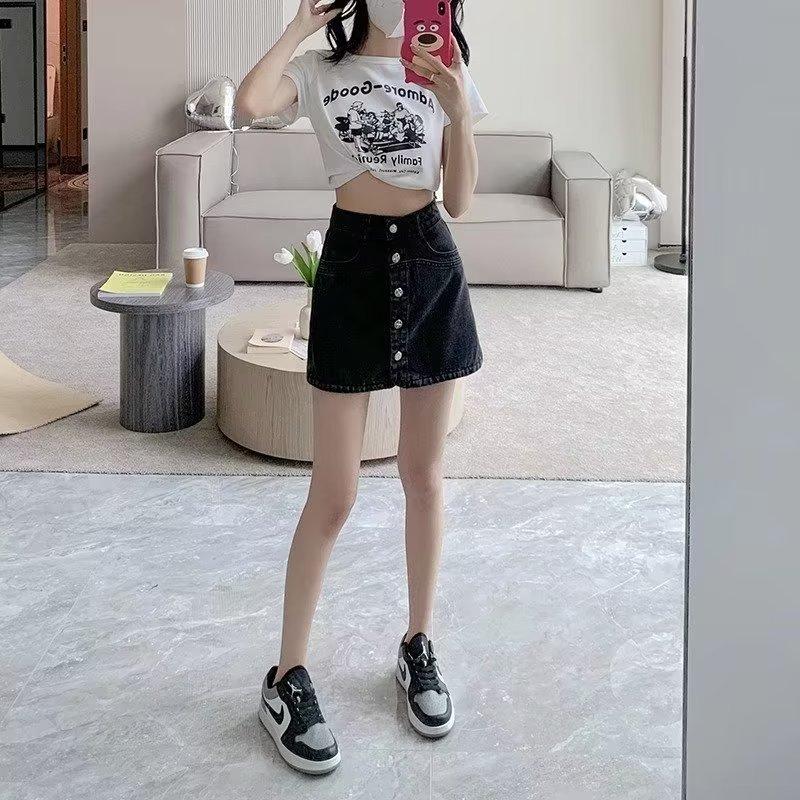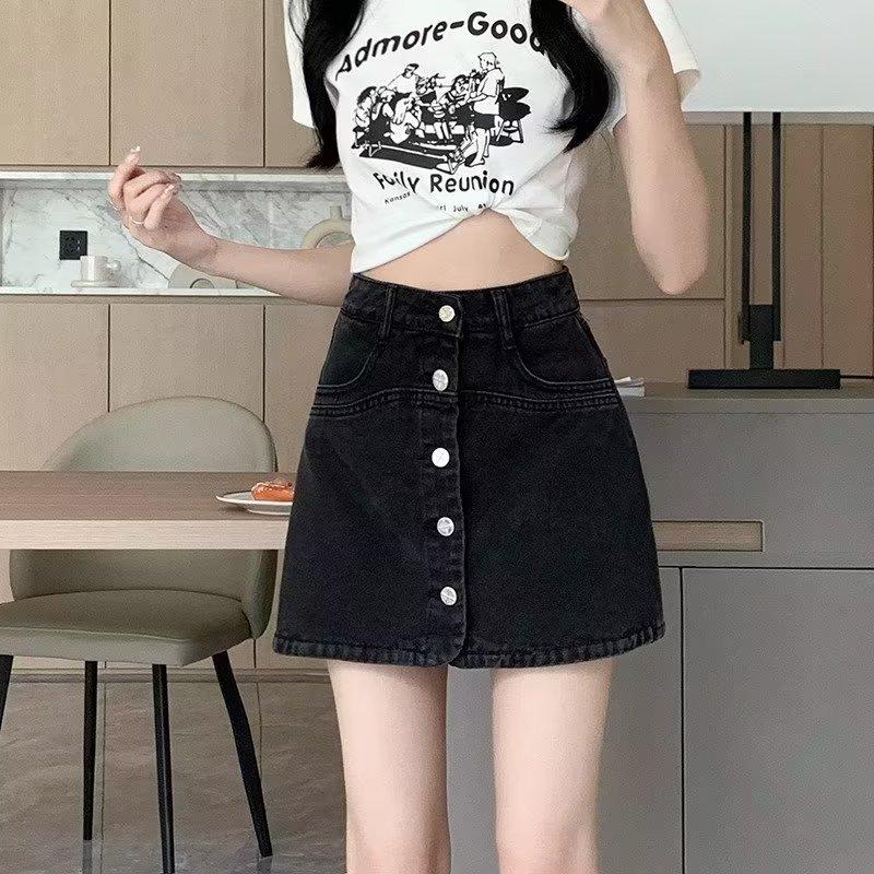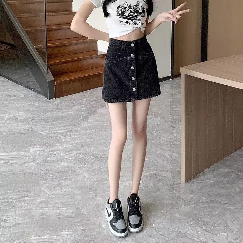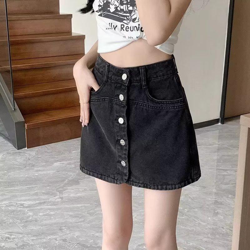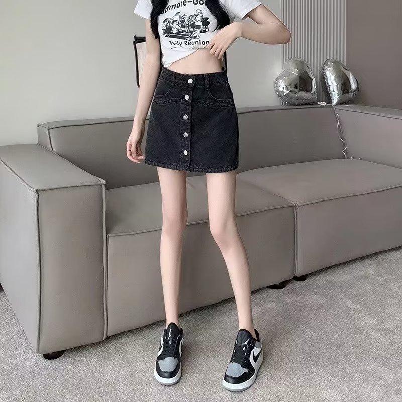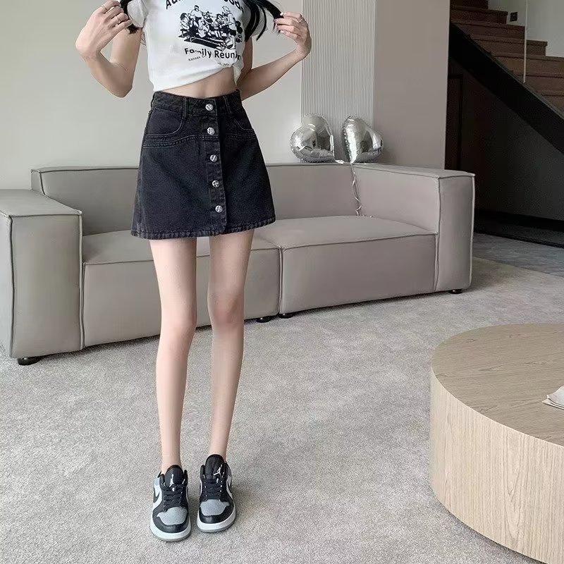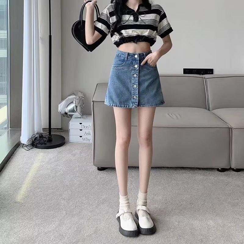 Falda corta de mezclilla de verano 2024 a prueba de exposición para mujer, pantalón falda de cintura alta, corte slim, estilo ins, holgada, con botones, falda acampanada