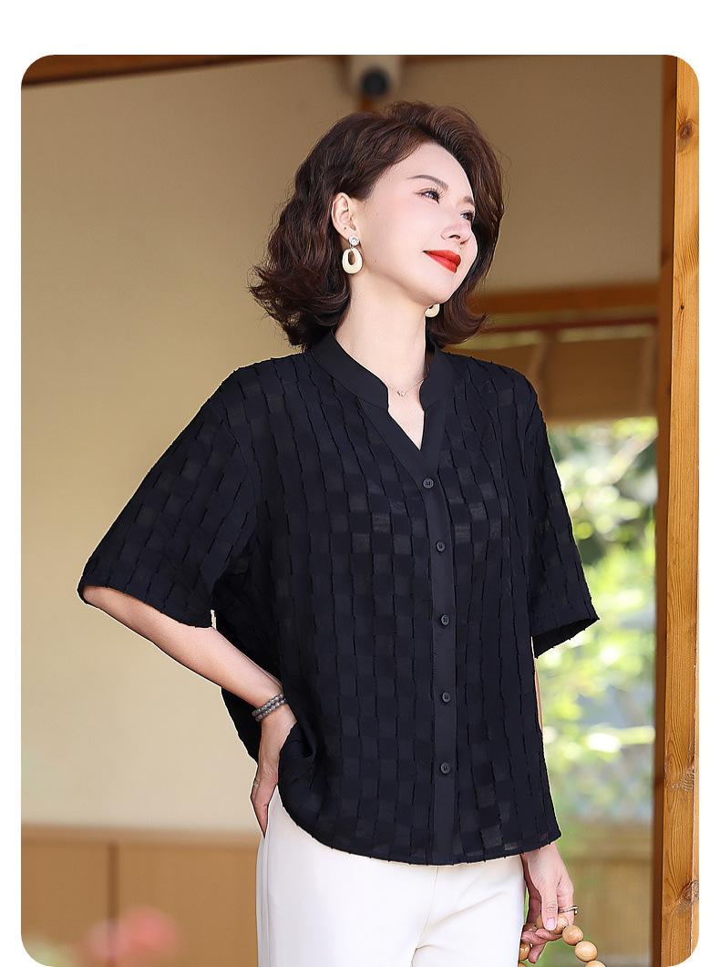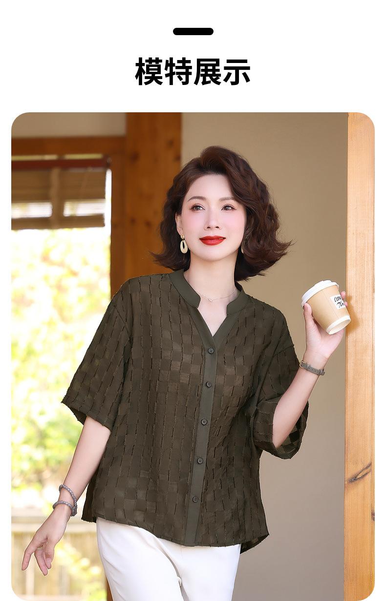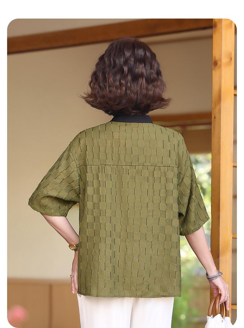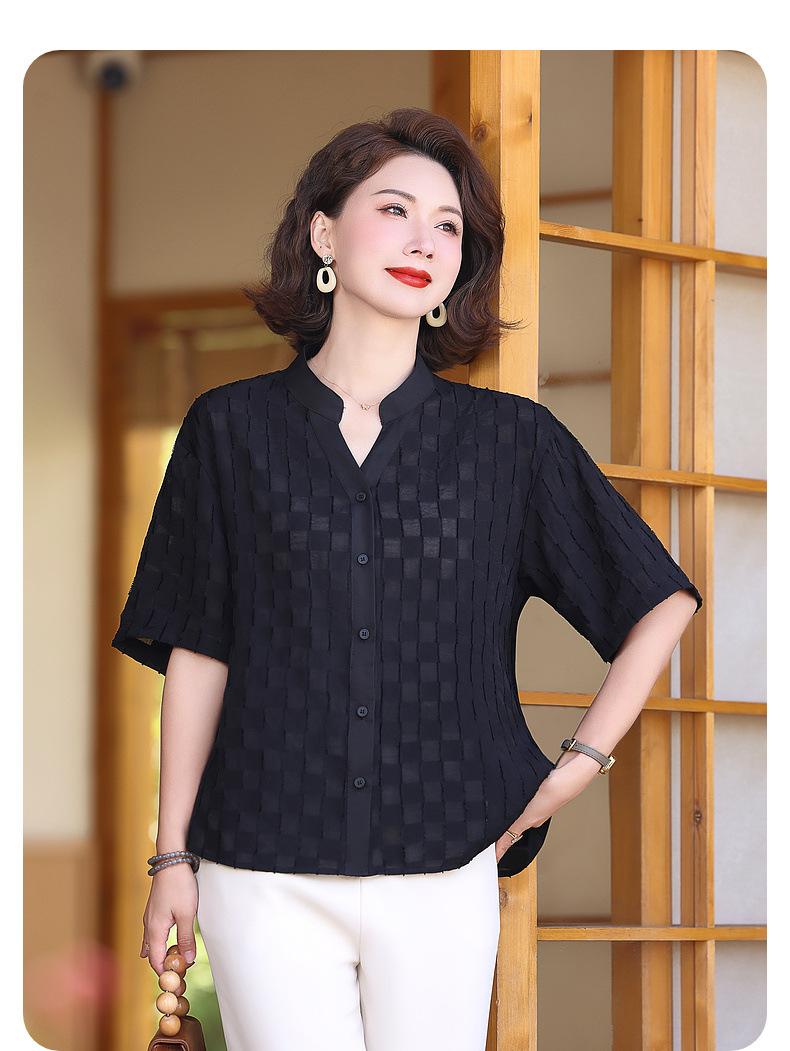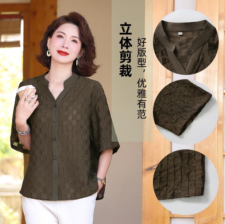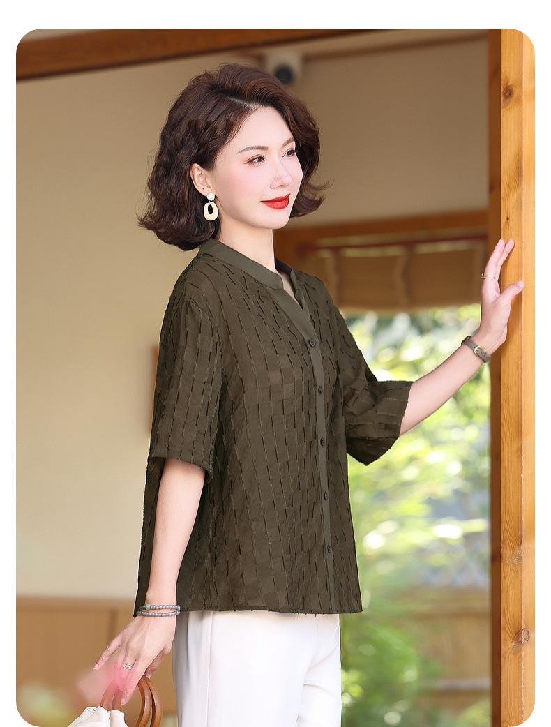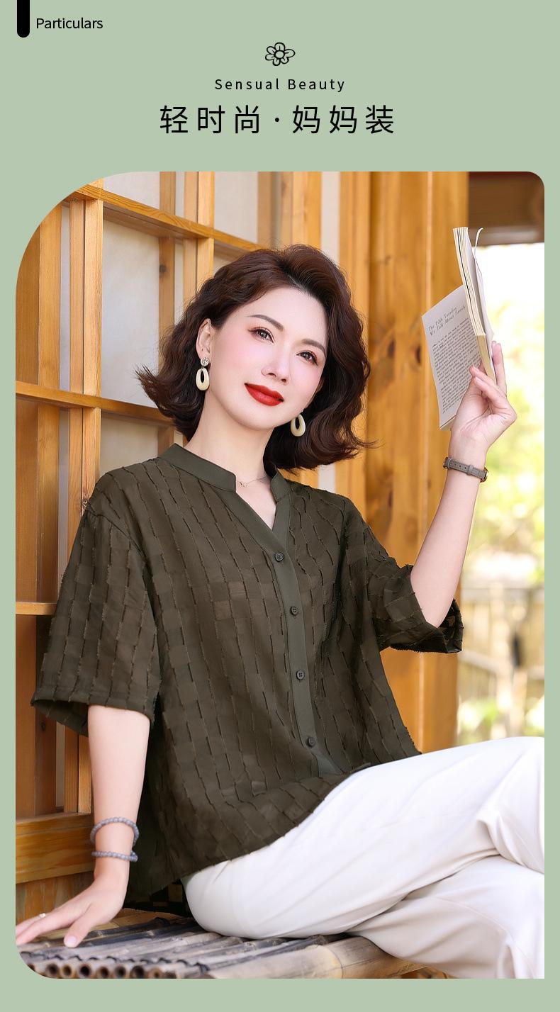 Camiseta de manga corta de verano para madre, estilo occidental, nueva camisa pequeña de verano, combina con todo, informal, de mediana edad, elegante, adelgazante, que cubre la carne.