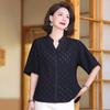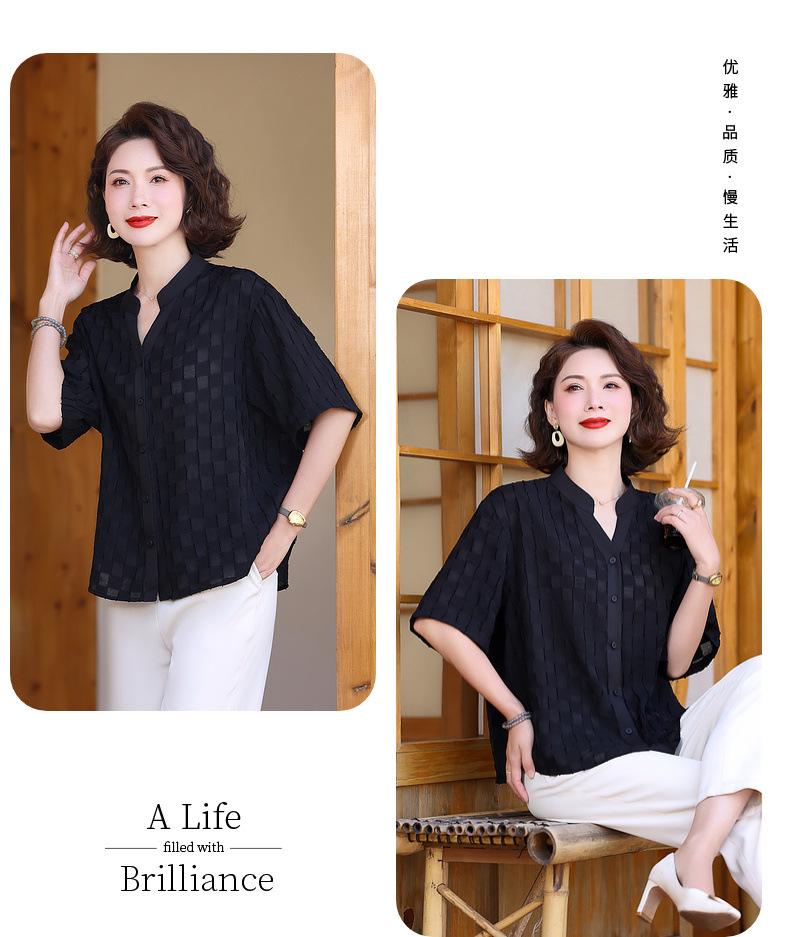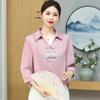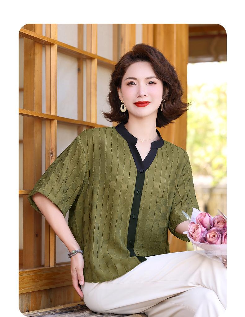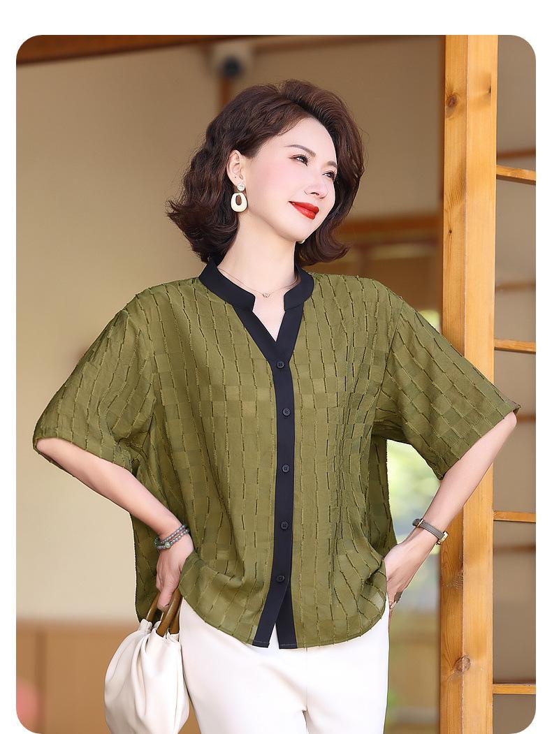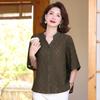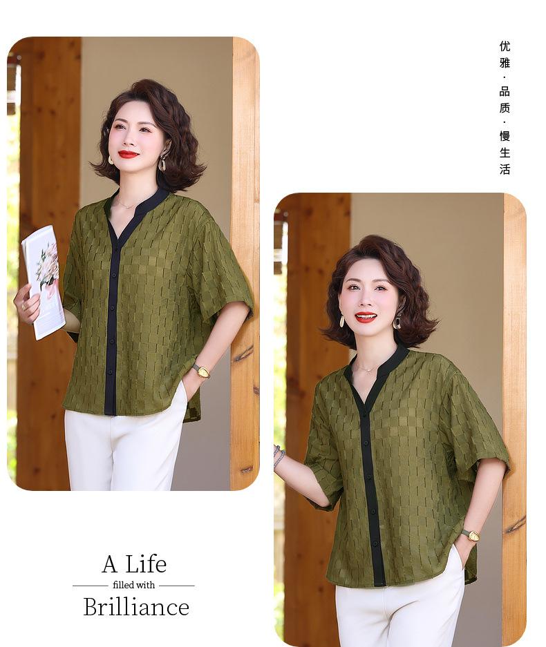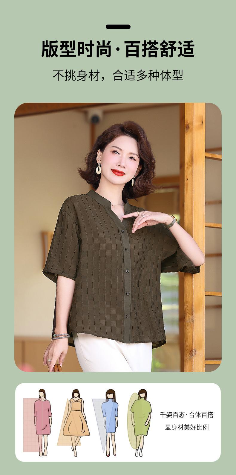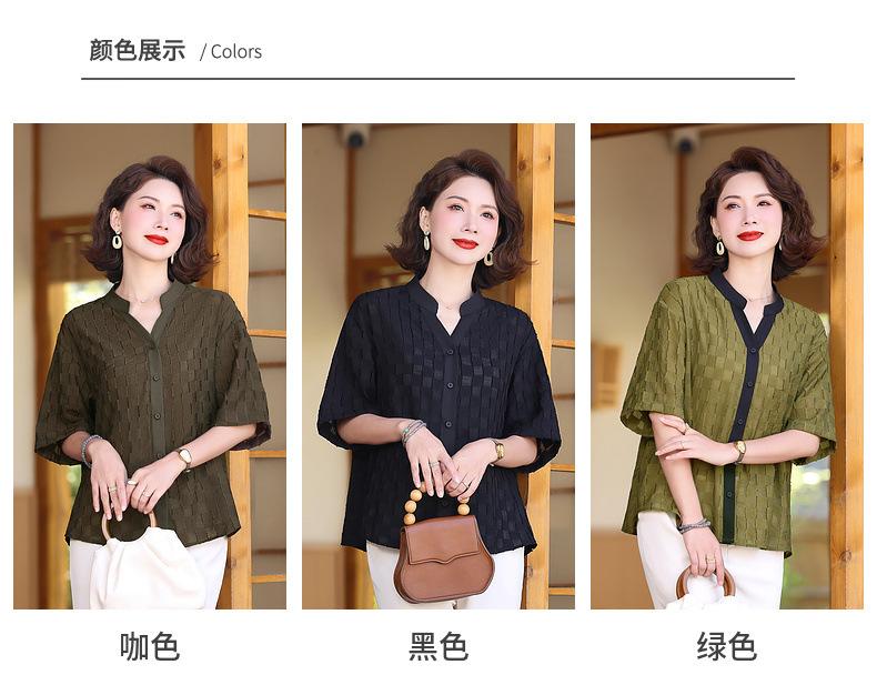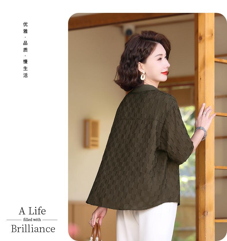 Camiseta de manga corta de verano para madre, estilo occidental, nueva camisa pequeña de verano, combina con todo, informal, de mediana edad, elegante, adelgazante, que cubre la carne.