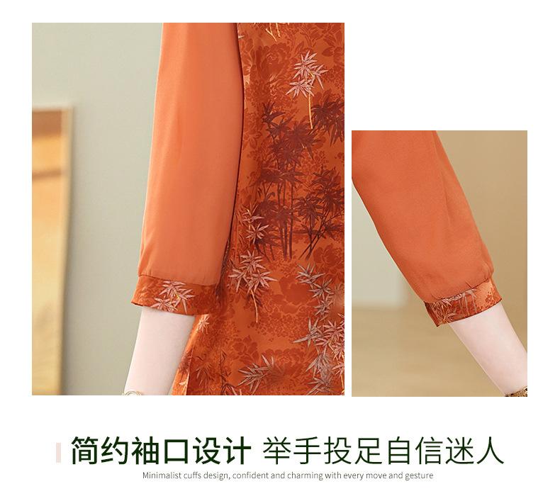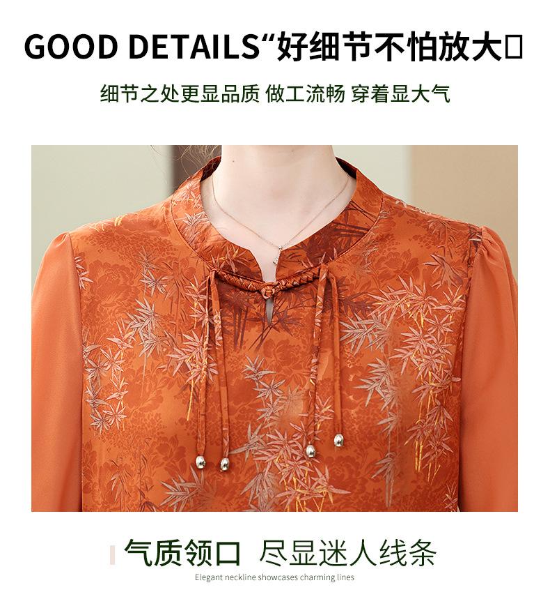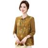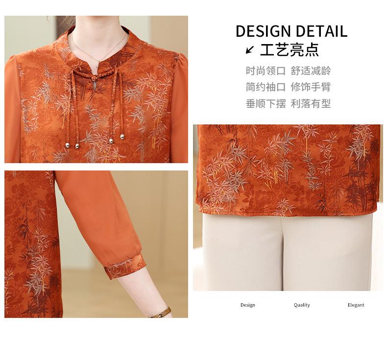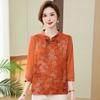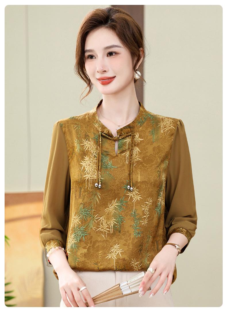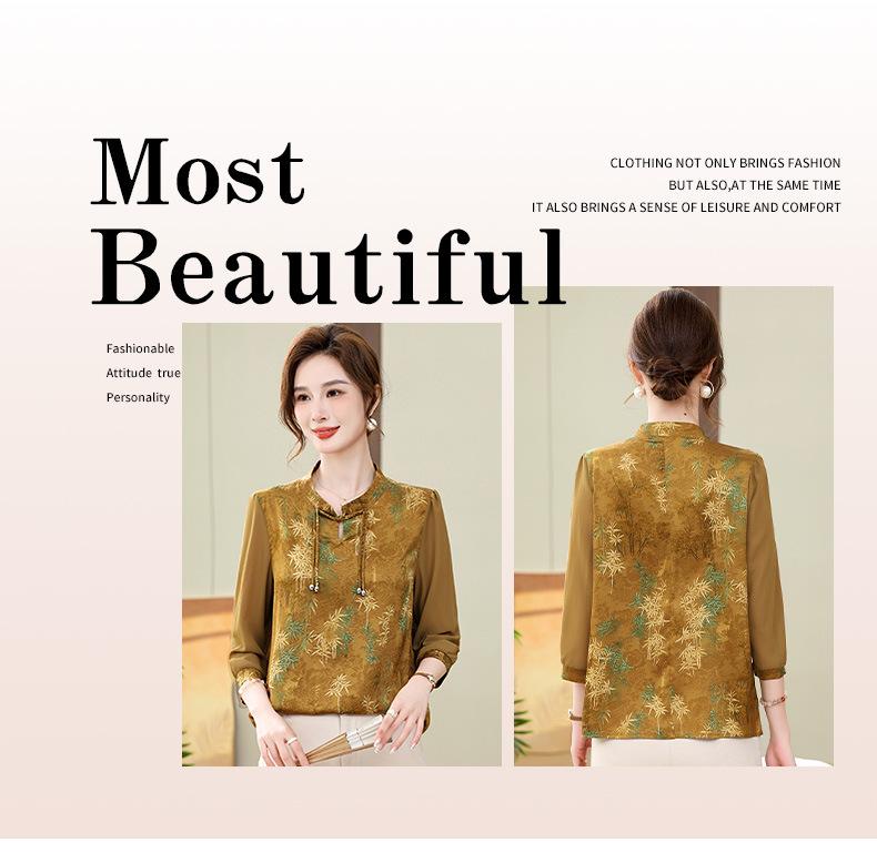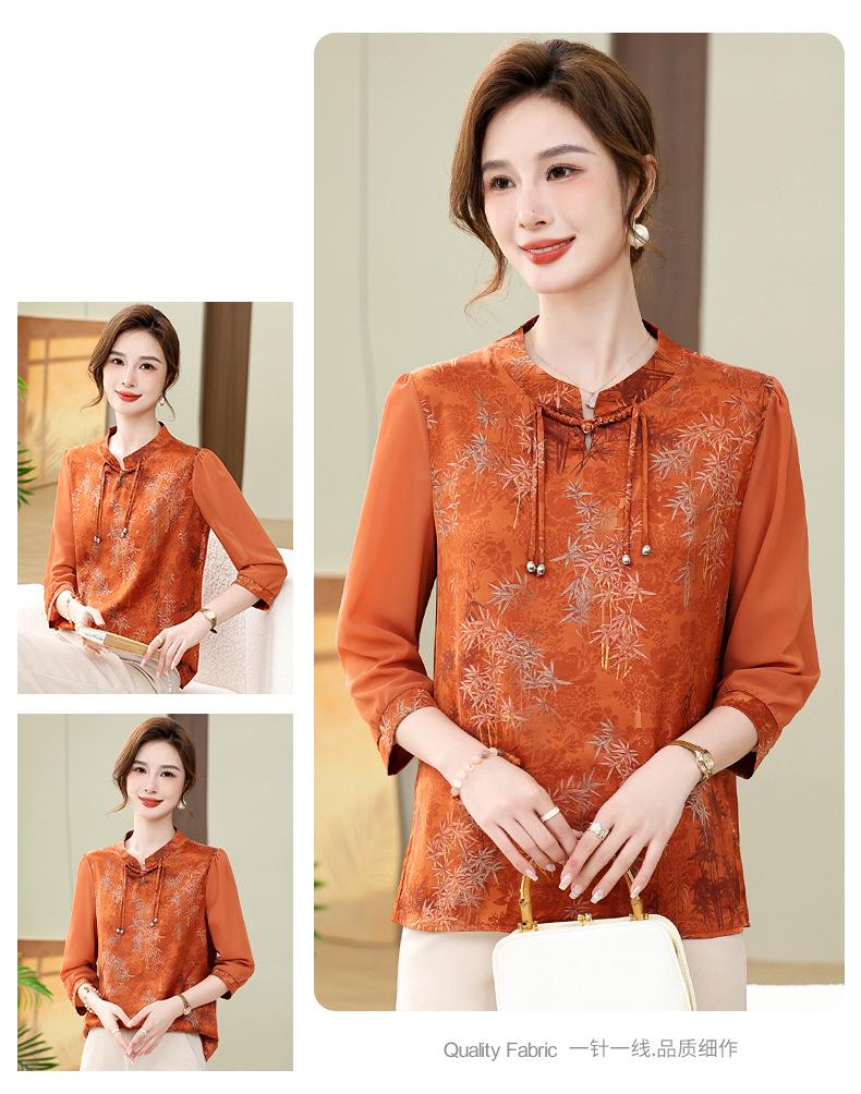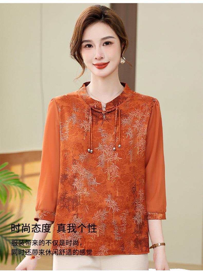 Nueva camiseta de manga larga estilo chino para madres, camisa pequeña de primavera para mujeres de mediana edad con cuello vertical, manga media, top nuevo de principios de verano 2024 para mujeres