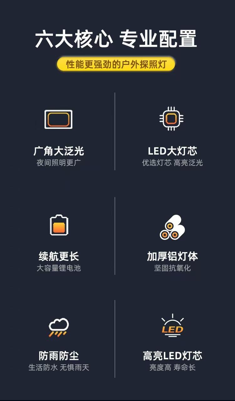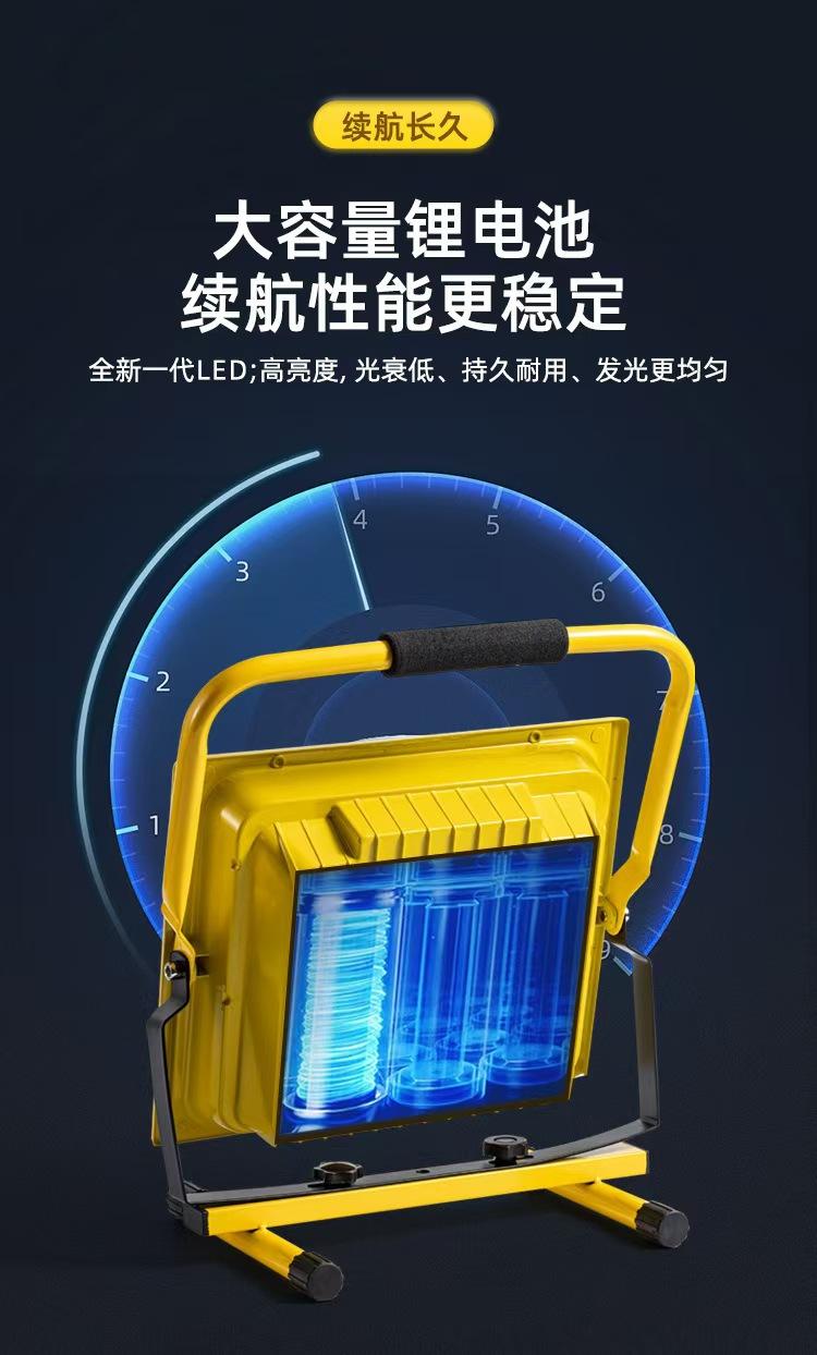 Foco recargable portátil móvil de emergencia luz para exteriores puesto de mercado nocturno con soporte iluminación luz roja y azul de advertencia