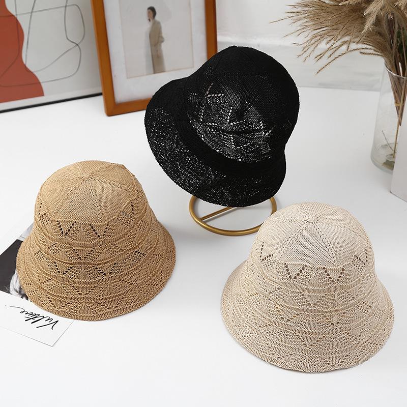 Sombrero de cubo tejido con patrón calado estilo coreano para mujer para primavera y otoño