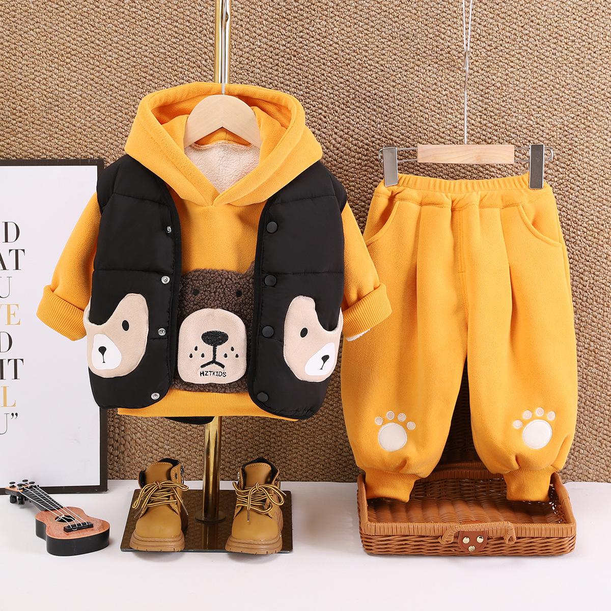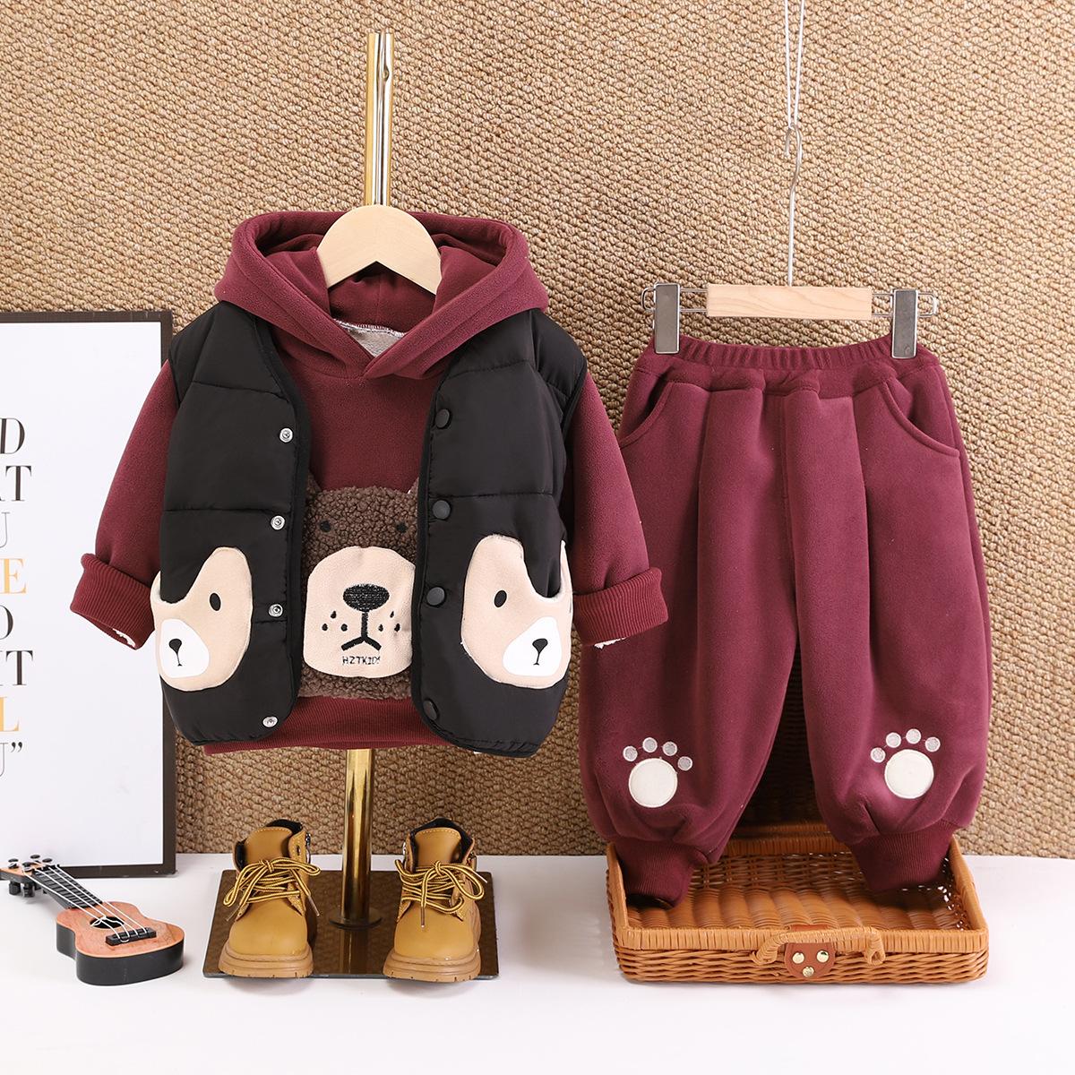 Traje infantil de manga larga con forro polar 2024 invierno nuevo suéter conjunto de tres piezas 1-5 años traje de invierno para bebé