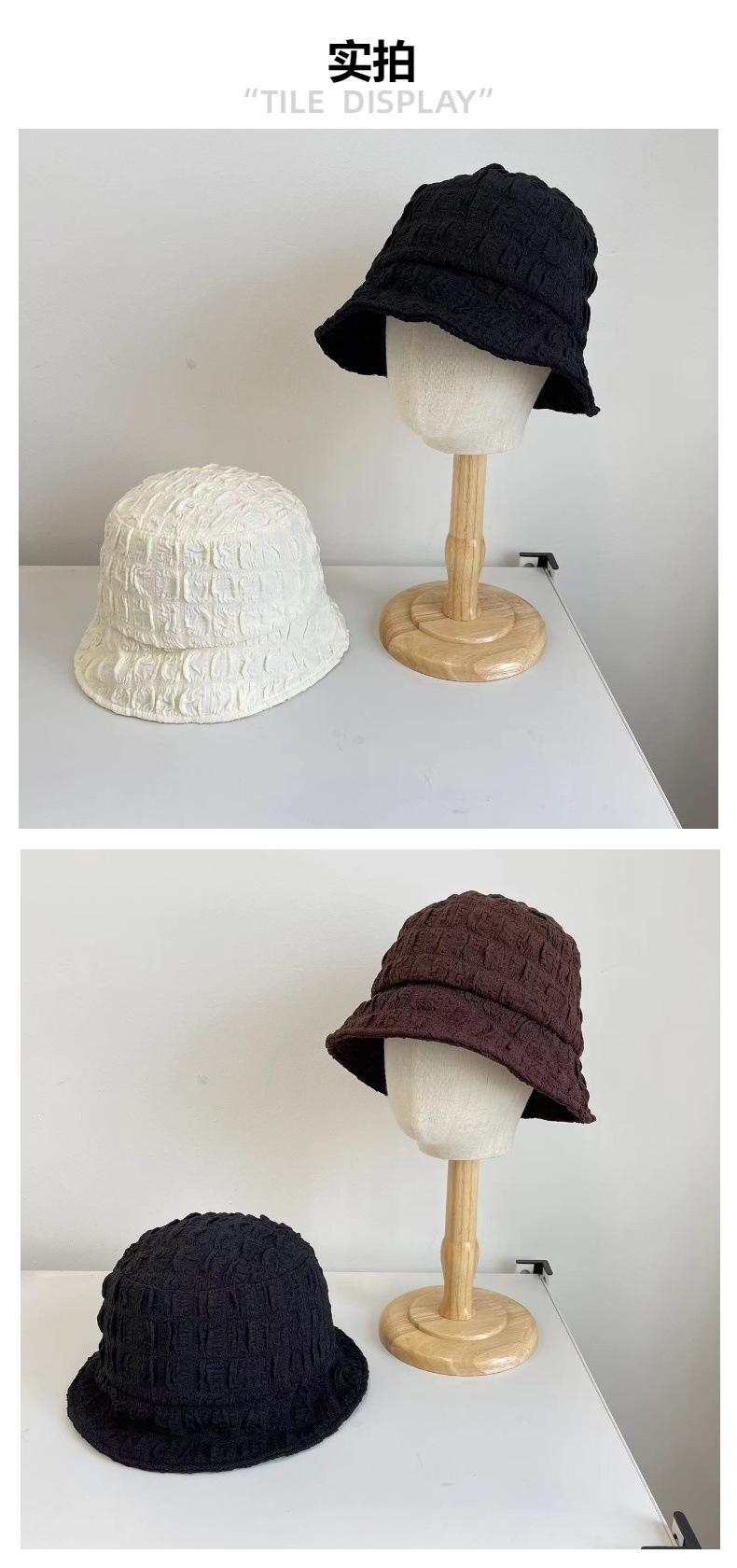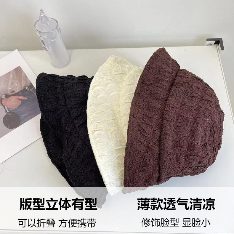 Sombrero de pescador de seersucker plisado estilo celebridad de Internet para mujer, primavera y otoño, estilo japonés, moda retro, textura que combina con todo, sombrero de lavabo
