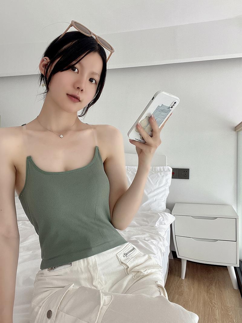 Camisola de estilo nuevo con diseño de puro deseo, sin costuras, con tirantes hermosos y almohadillas para el pecho, adelgazante, de color sólido, para niñas.