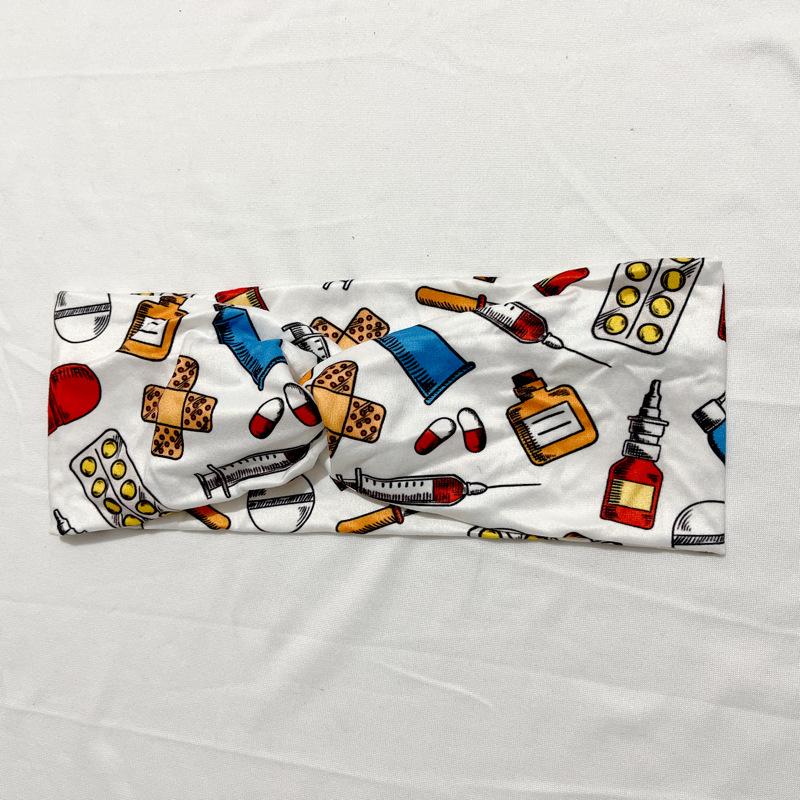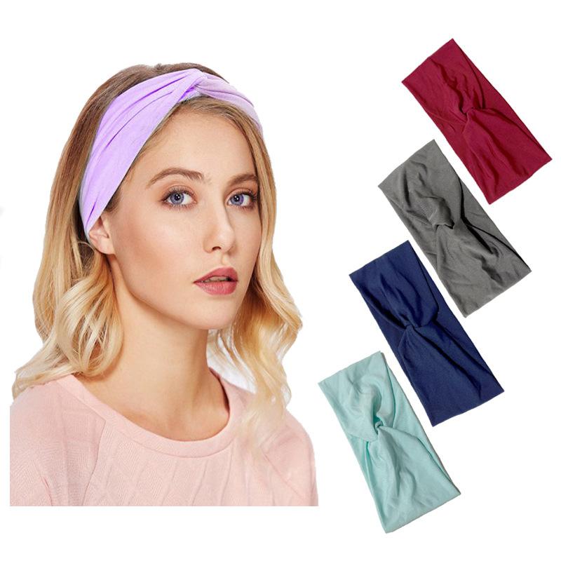 Diadema de algodón elástico con estampado de flores para mujer, banda para el cabello con diseño de cruz de una sola capa, para maquillaje de moda simple