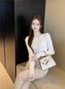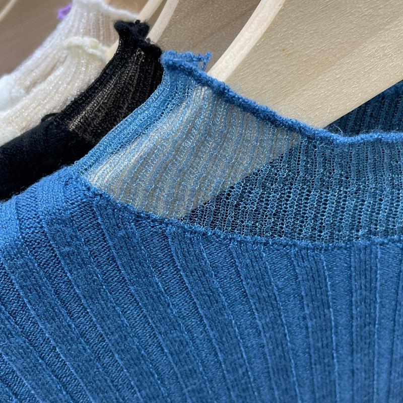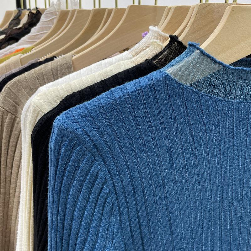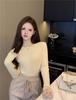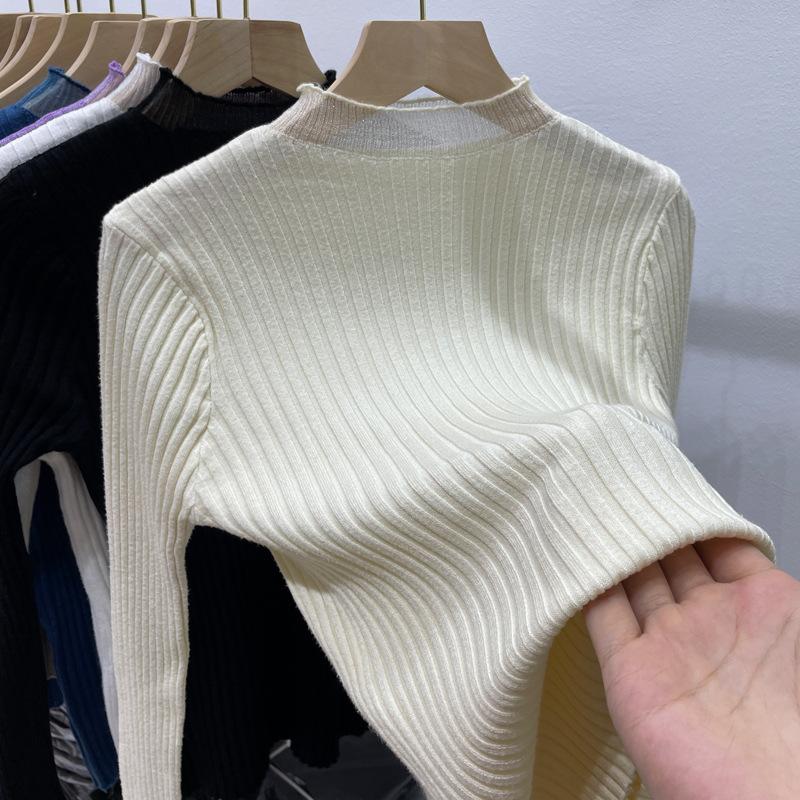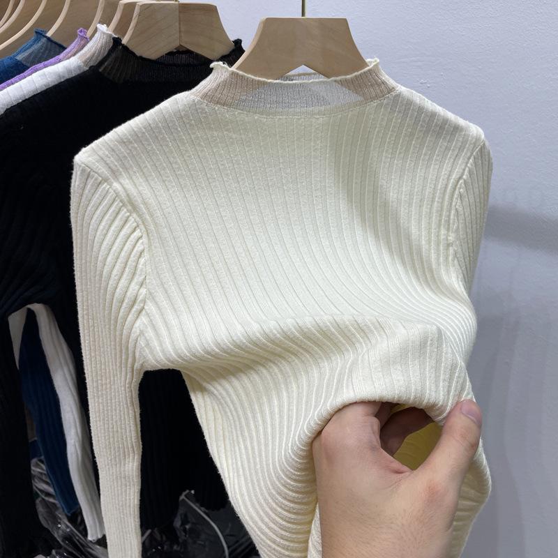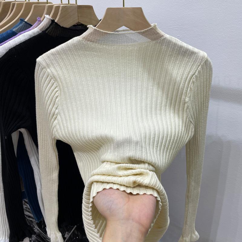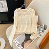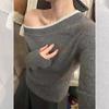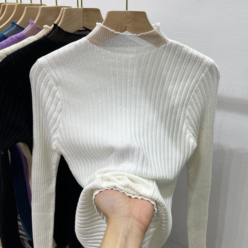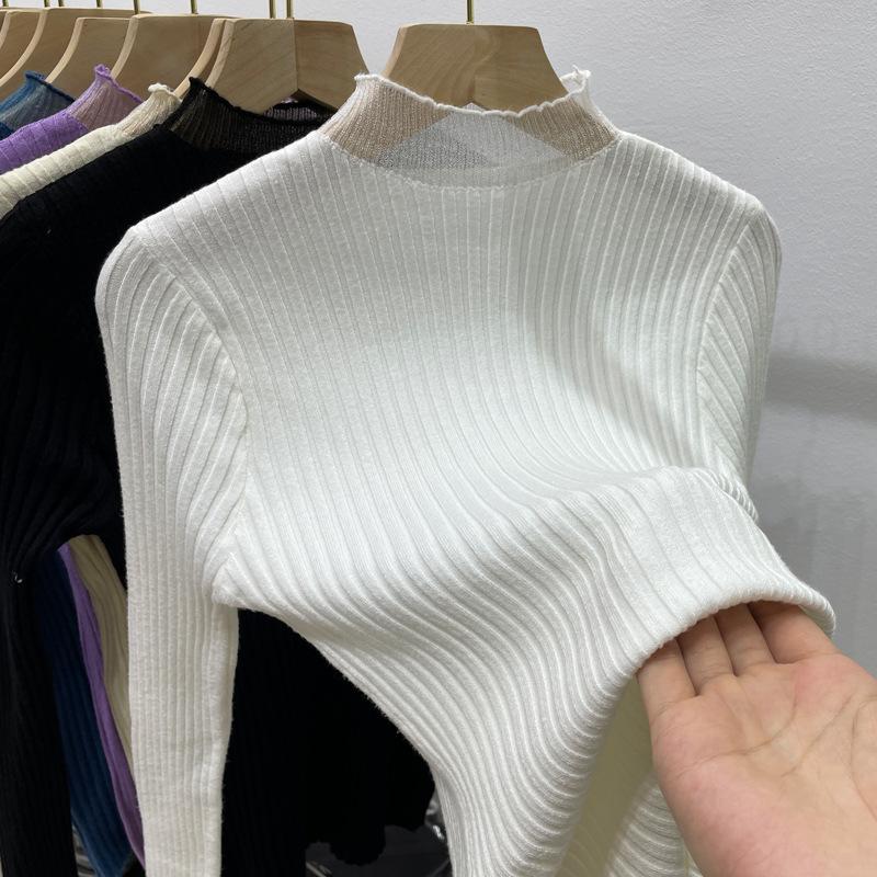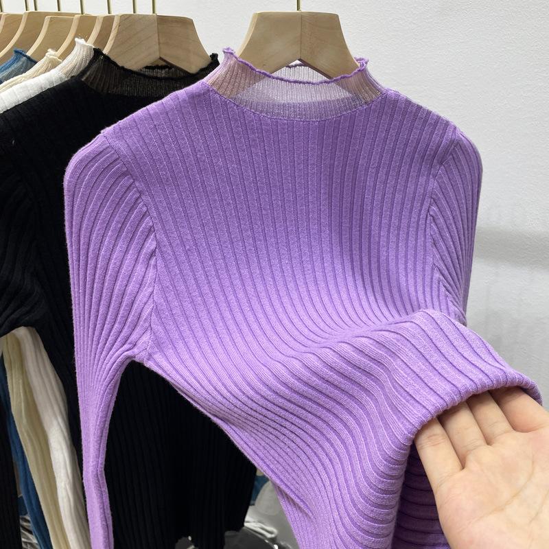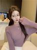 Camisa de punto de manga larga para mujer, nueva camisa de punto con diseño de encaje y costuras, estilo occidental, con mangas abullonadas, para primavera y otoño
