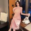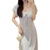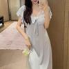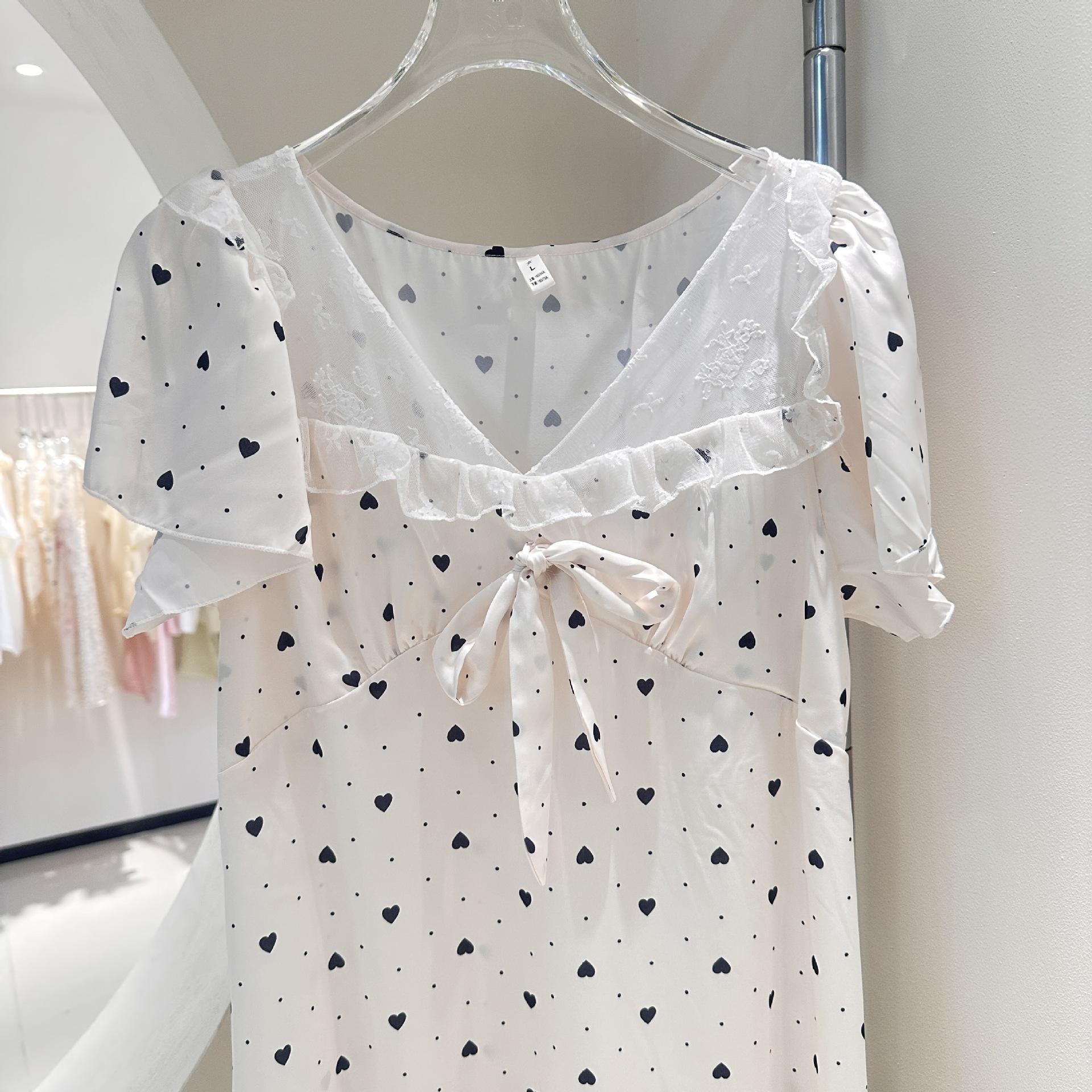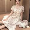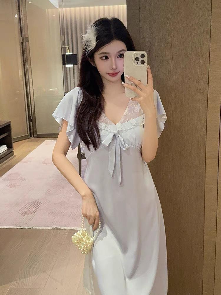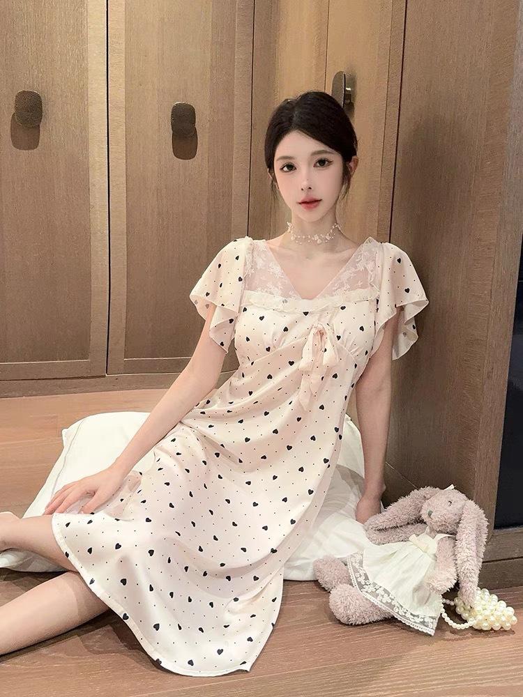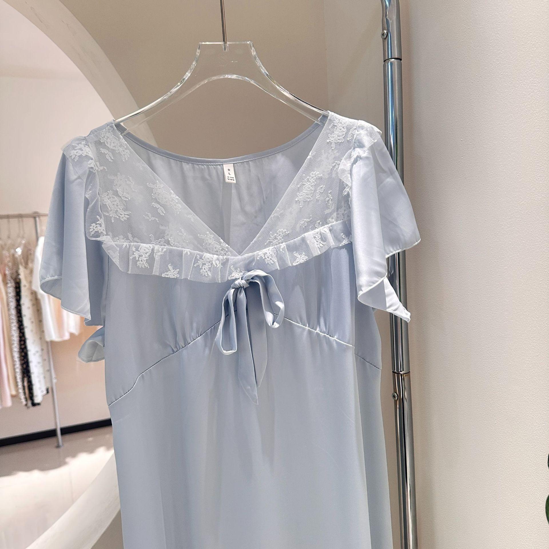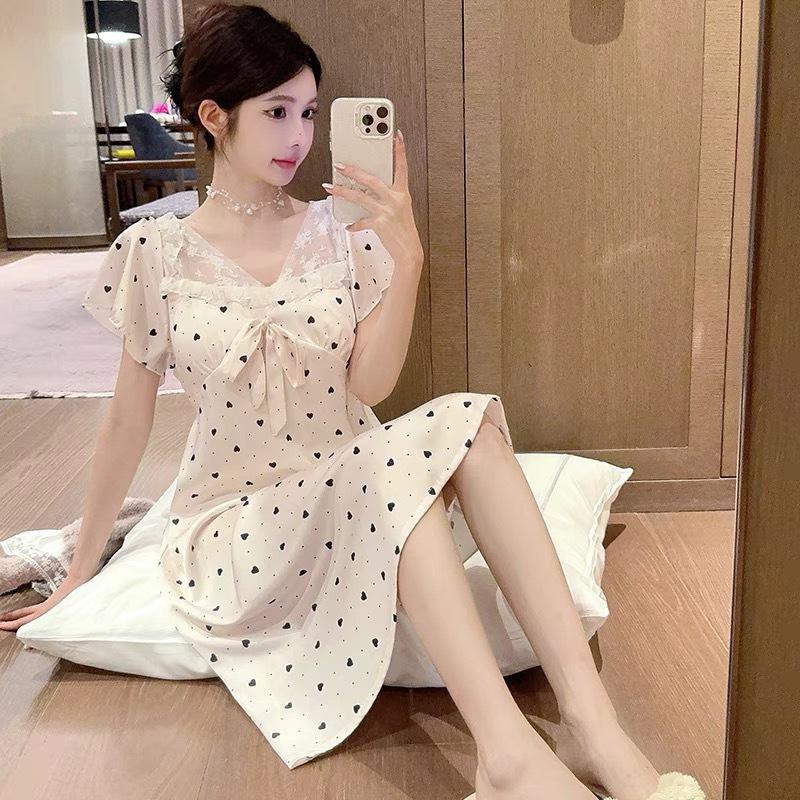 Camisón de seda de hielo para mujer, pijama de verano con almohadilla para el pecho, de encaje francés, para el hogar, de manga corta, fresco y fino, 2024