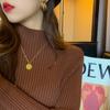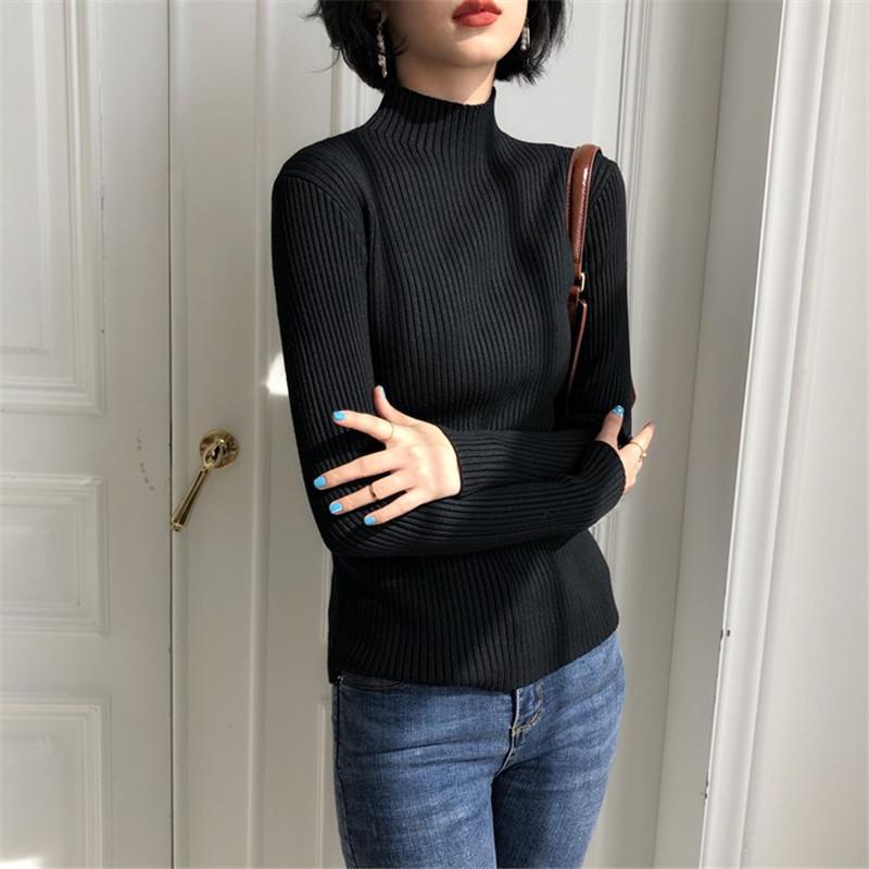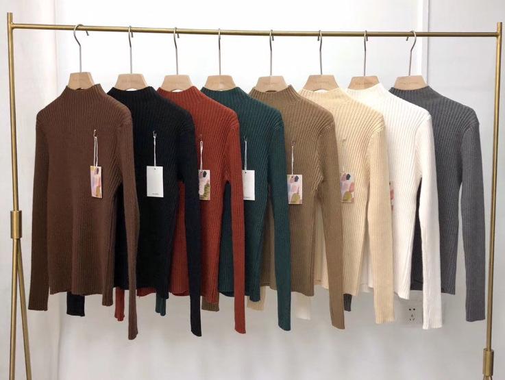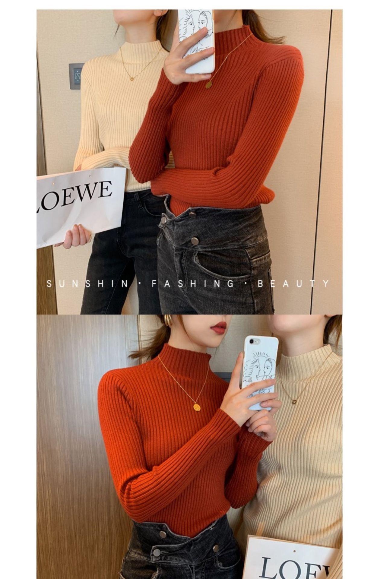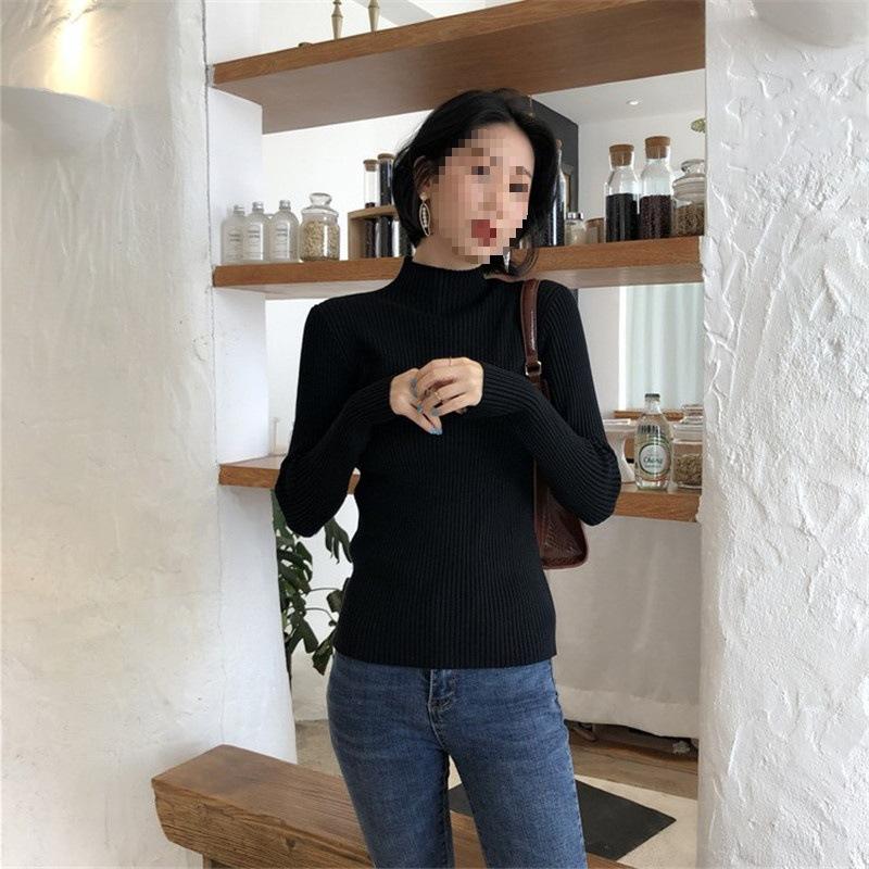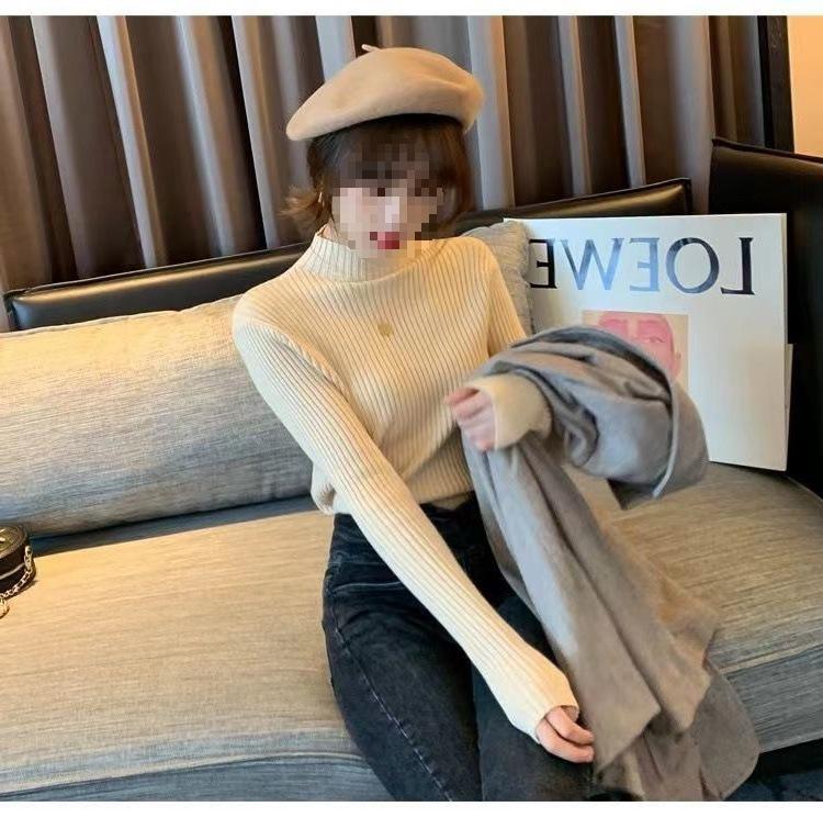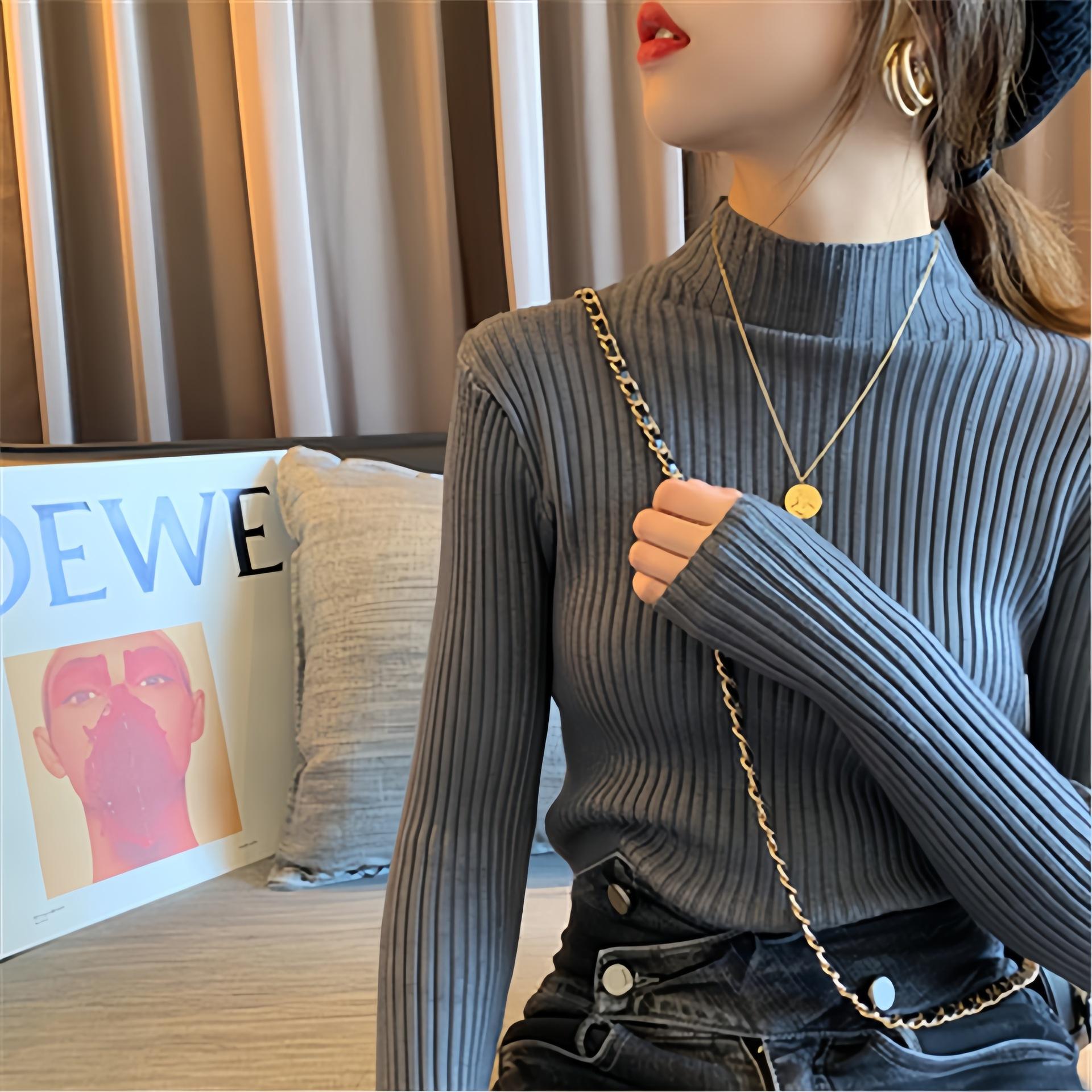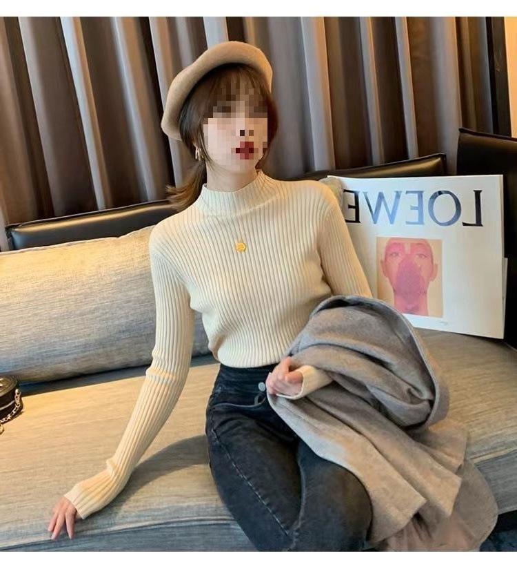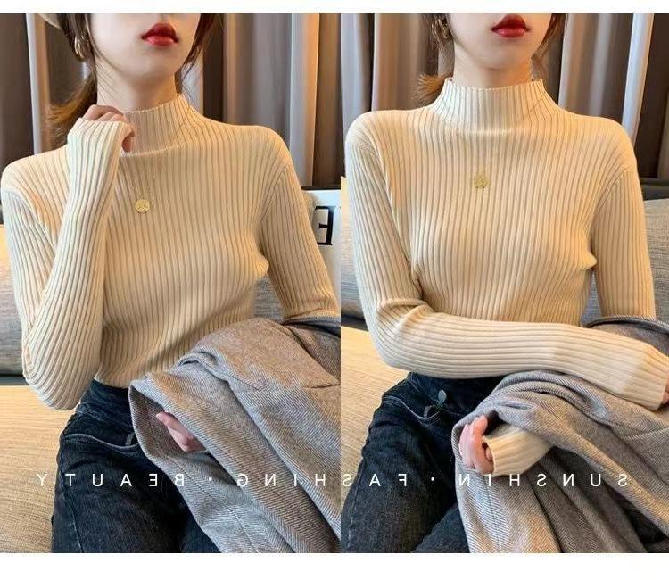 Suéter de cuello alto medio para exterior, camisa base, ropa interior para mujer, otoño e invierno, nueva llegada 2024, estilo occidental, coreano, ajustado, suéter que combina con todo