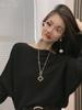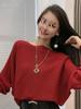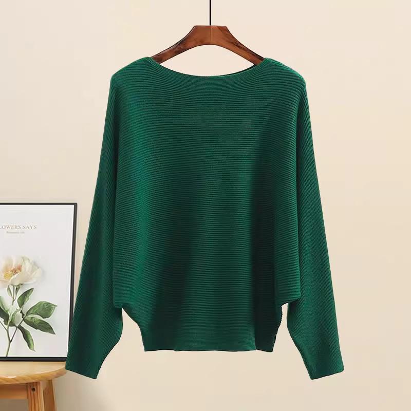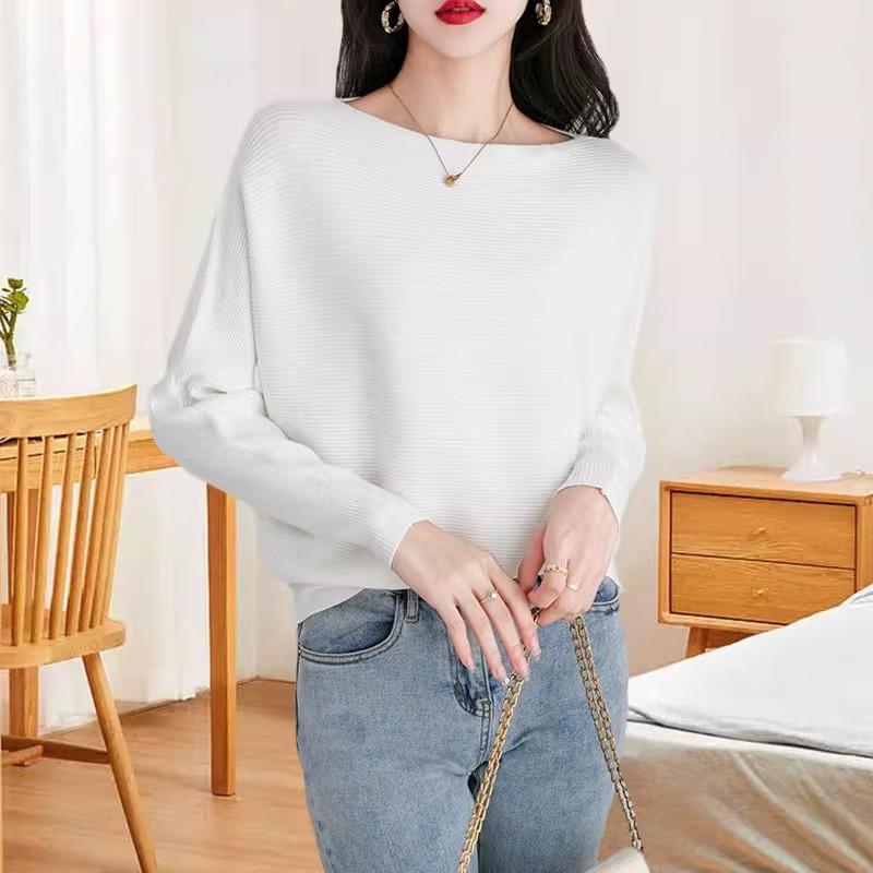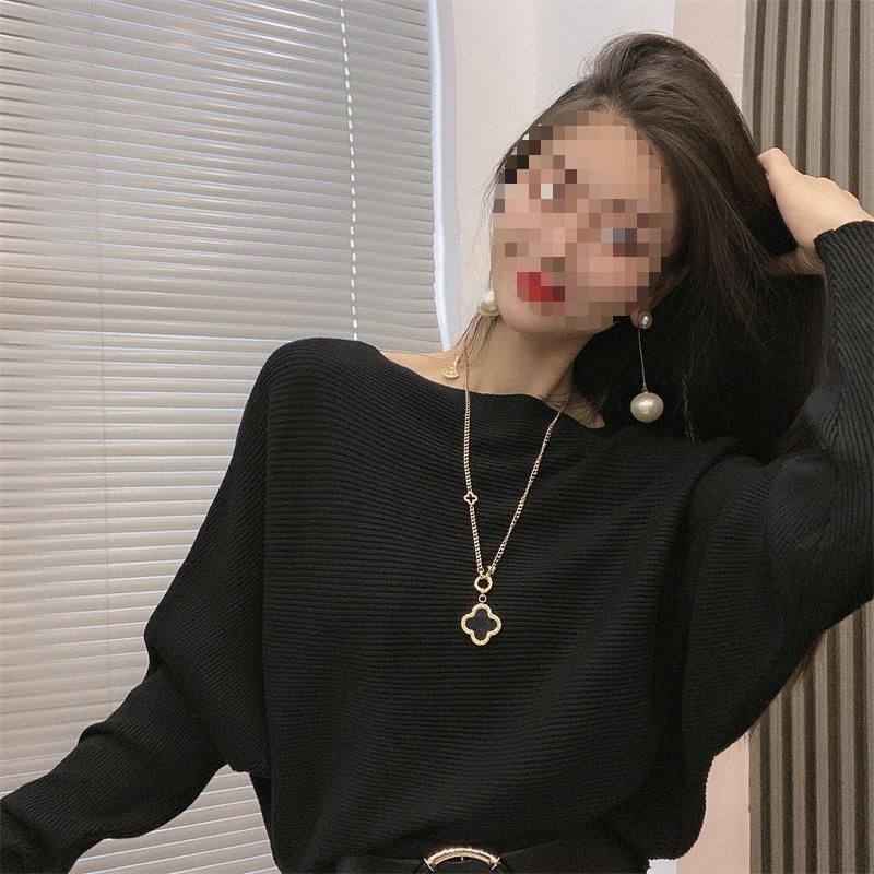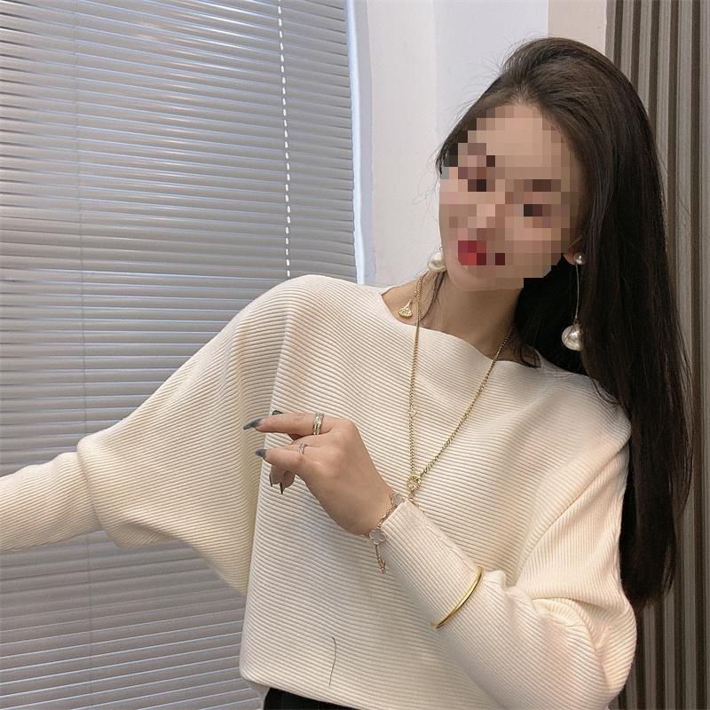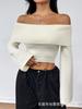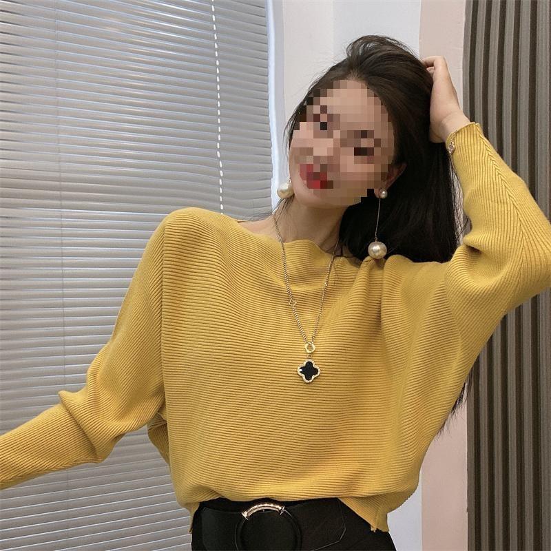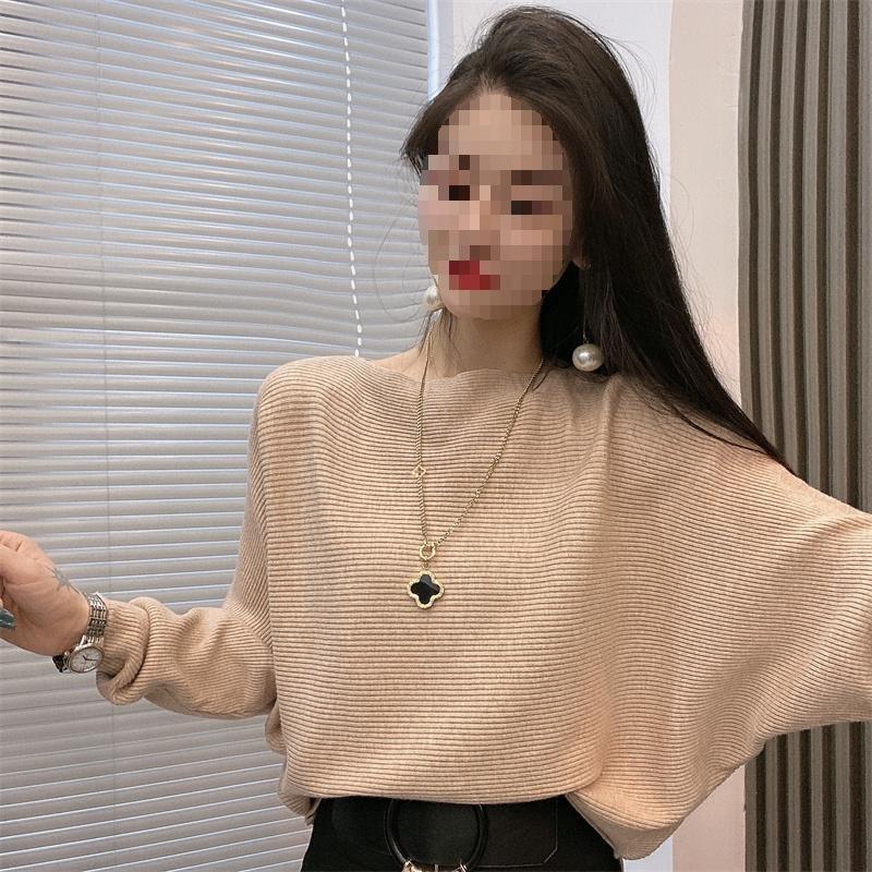 Suéter de manga larga con hombros descubiertos para mujer, otoño e invierno 2024, suéter holgado y ajustado con mangas murciélago, suéter estilo occidental, camisa base