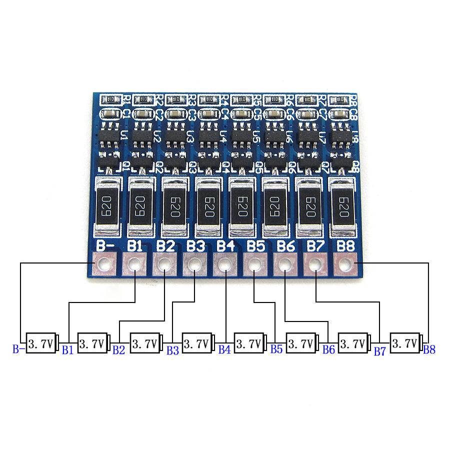 Esta placa equilibradora es adecuada para paquetes de baterías de litio sin carga equilibrada, ecualización de cargaAsegúrese de que todas las baterías en el paquete de baterías estén completamente cargadas al mismo tiempo.