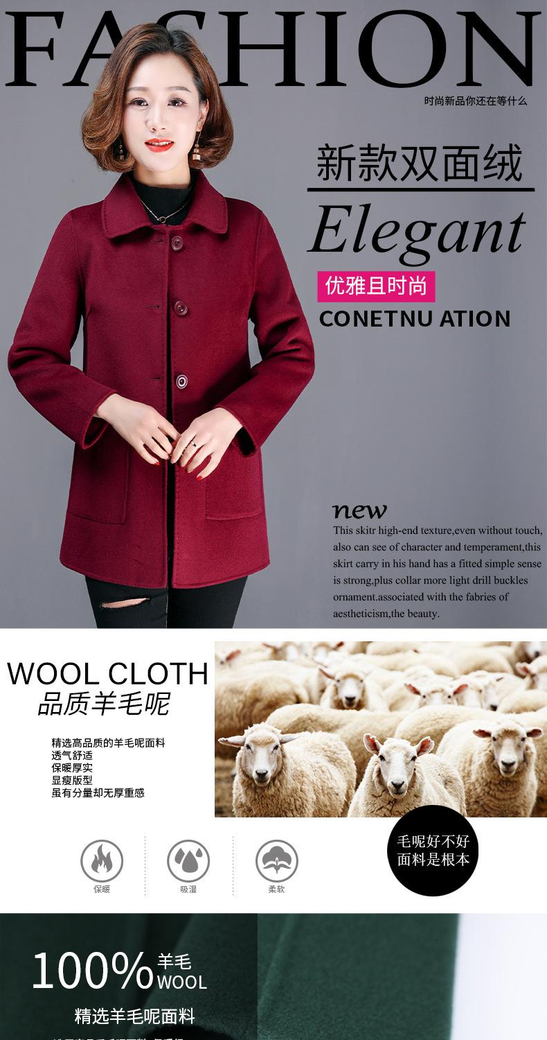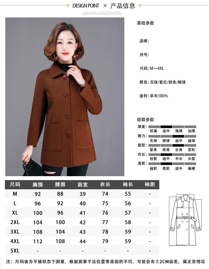 Abrigo de cachemira de doble cara para mujer de alta gama de pura lana abrigo de invierno para mamá corto para mujeres de mediana edad y mayores abrigo de lana de primavera