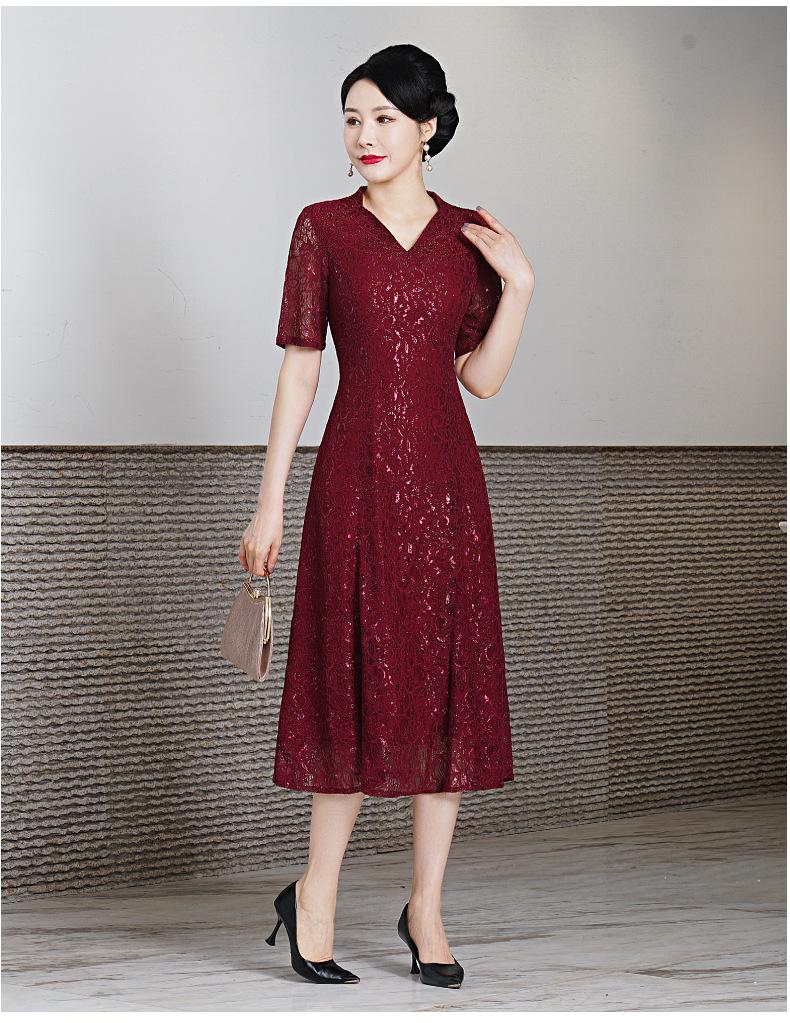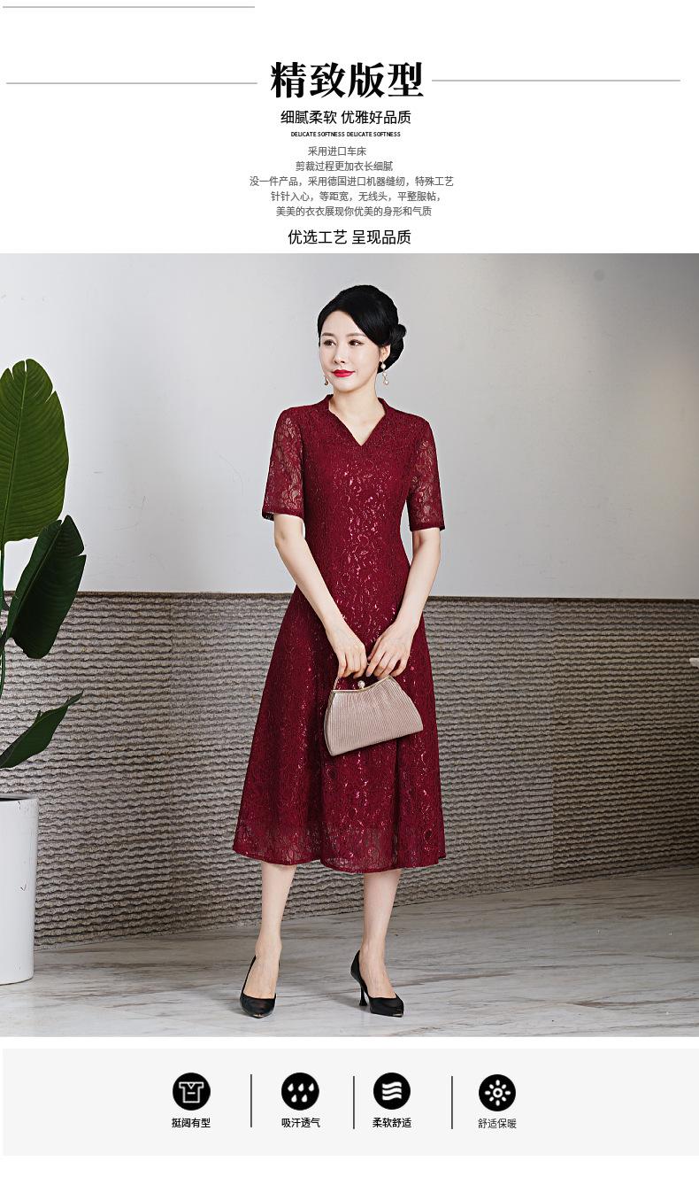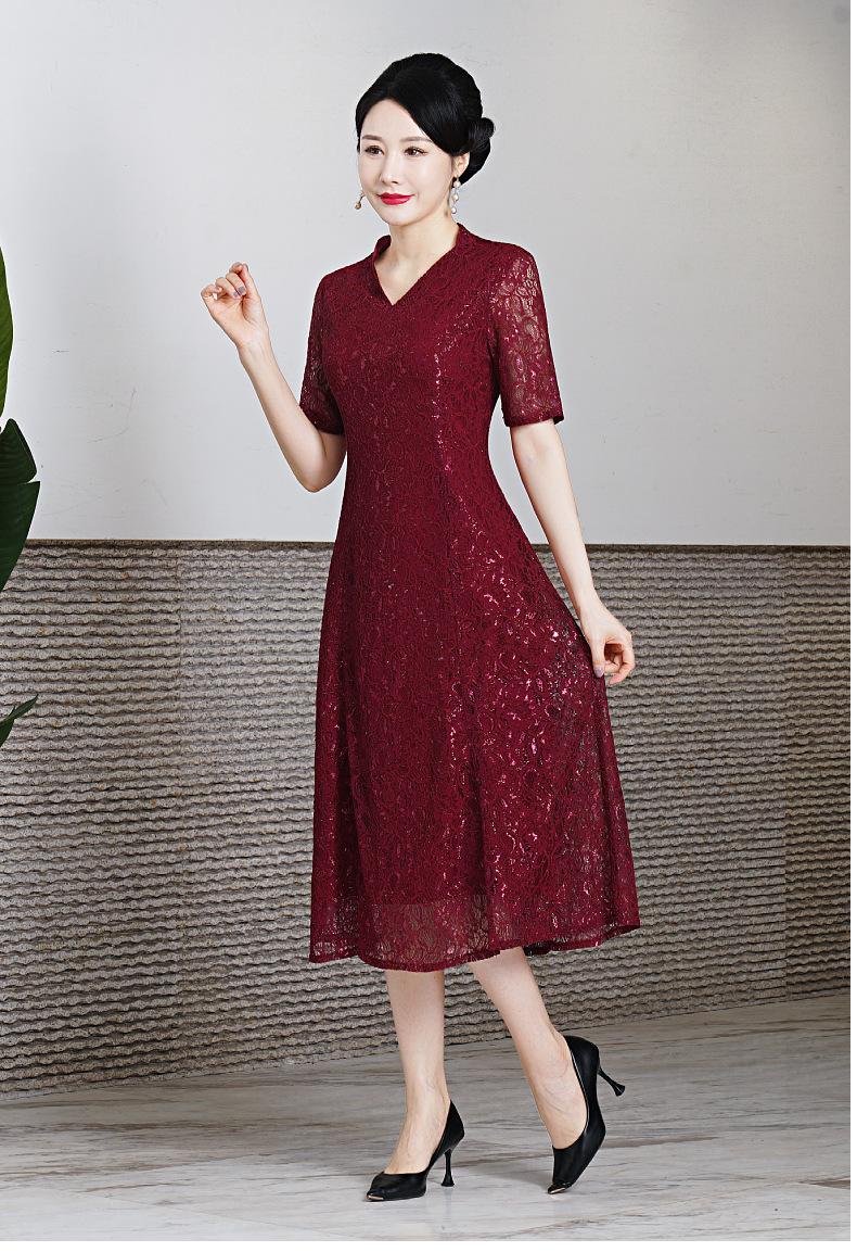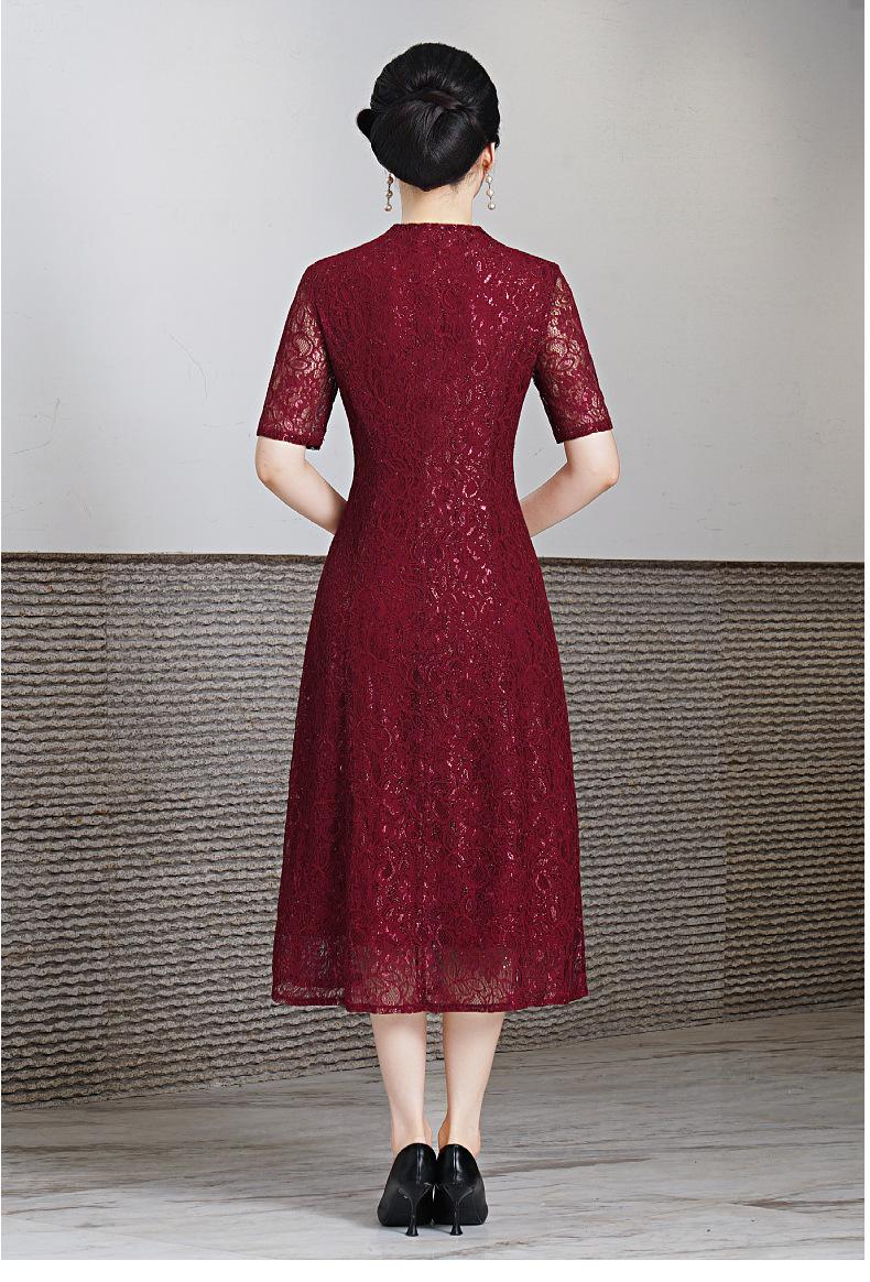 Vestido de encaje de entrega de una pieza talla grande 2023 primavera y verano nuevo vestido para mujeres de mediana edad y mayores manga corta banquete de boda vestido de mamá