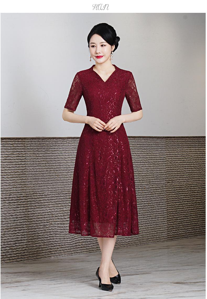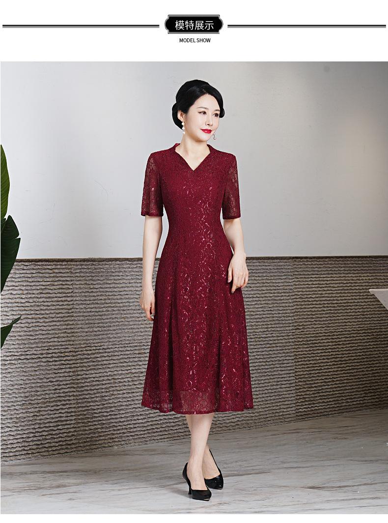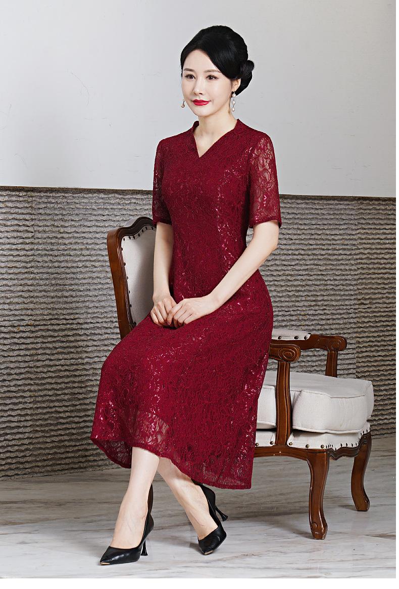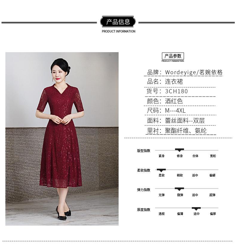 Vestido de encaje de entrega de una pieza talla grande 2023 primavera y verano nuevo vestido para mujeres de mediana edad y mayores manga corta banquete de boda vestido de mamá