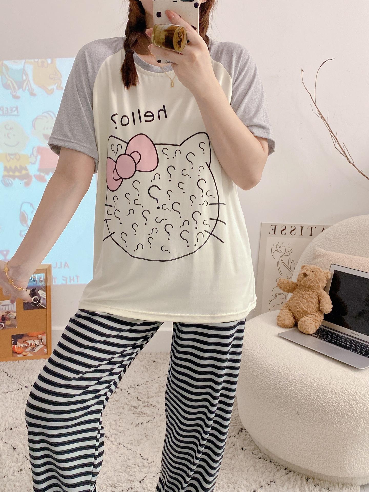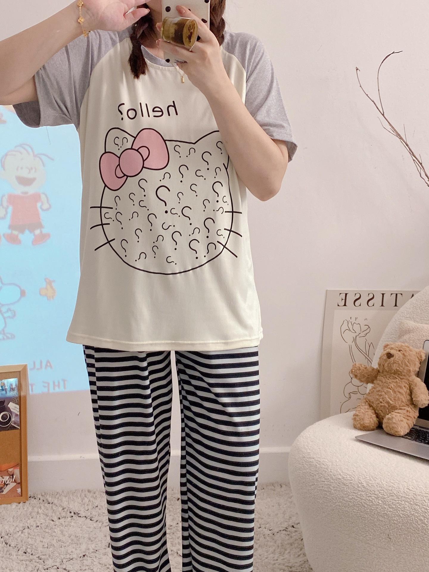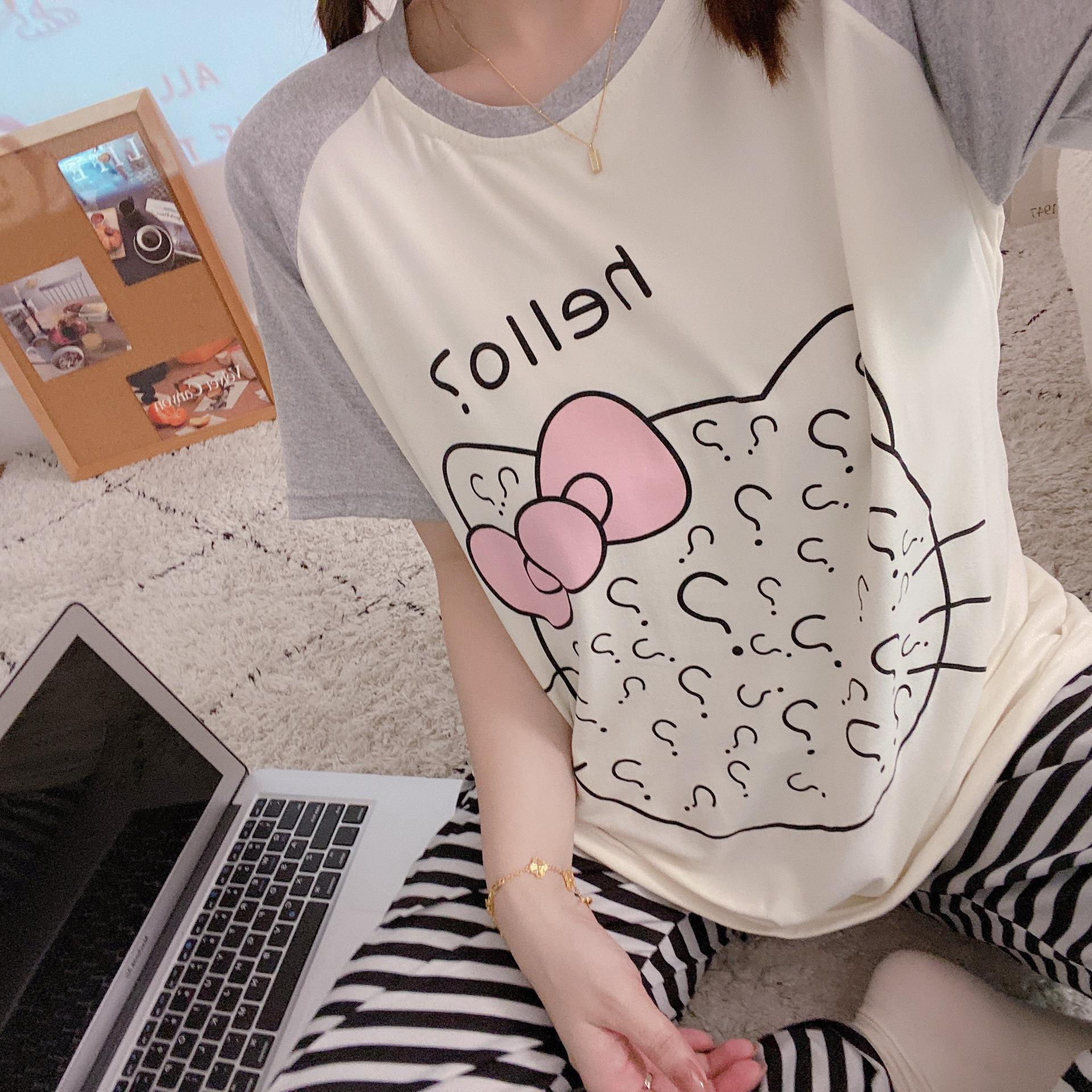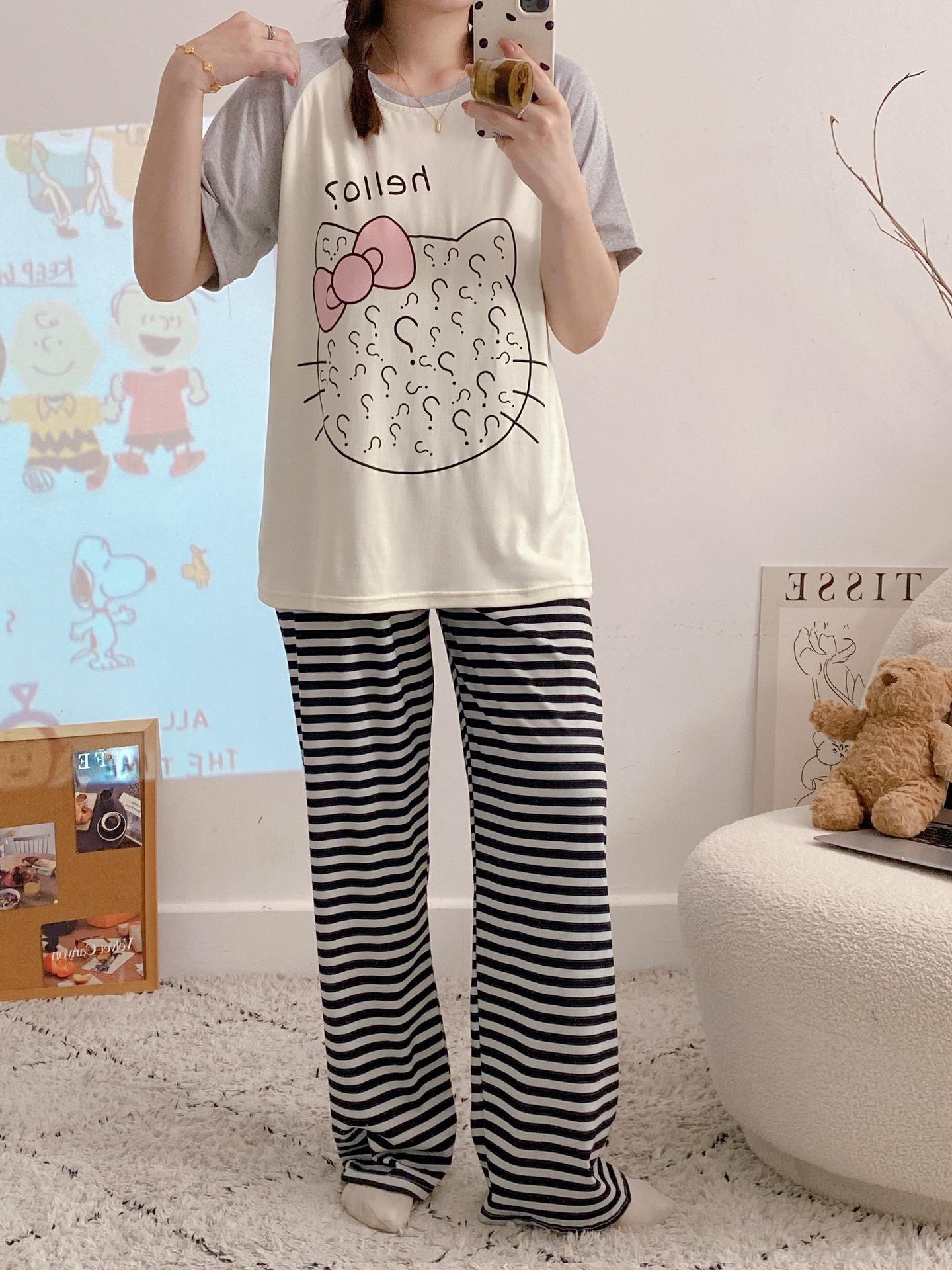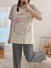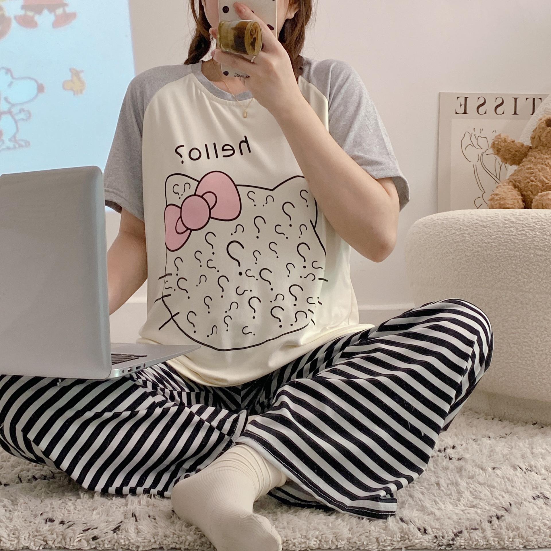 Pijamas de mujer de manga corta, pantalones de verano, nuevos, de algodón de imitación, con dibujos animados, ropa de abrigo, ropa para el hogar, traje