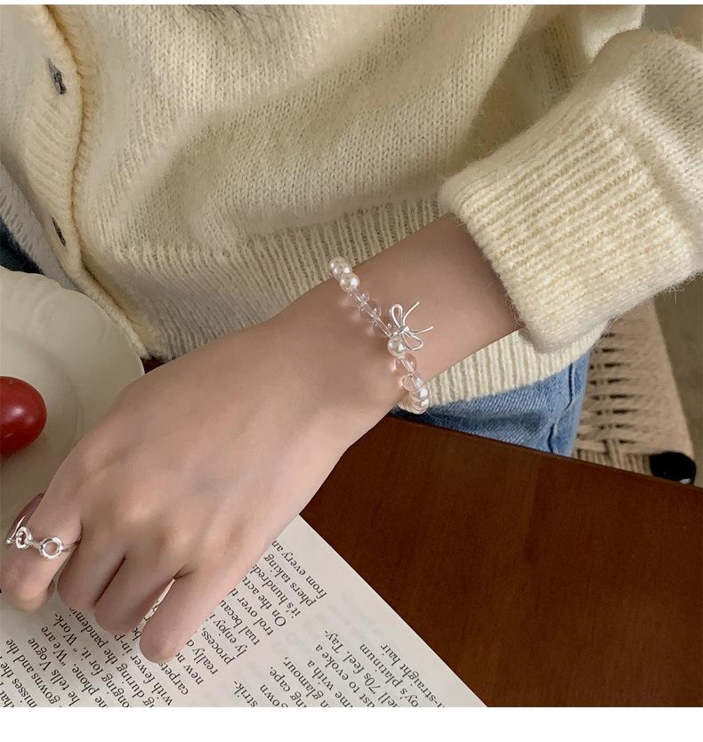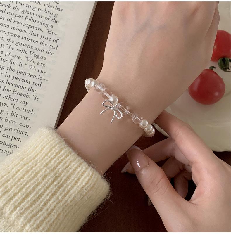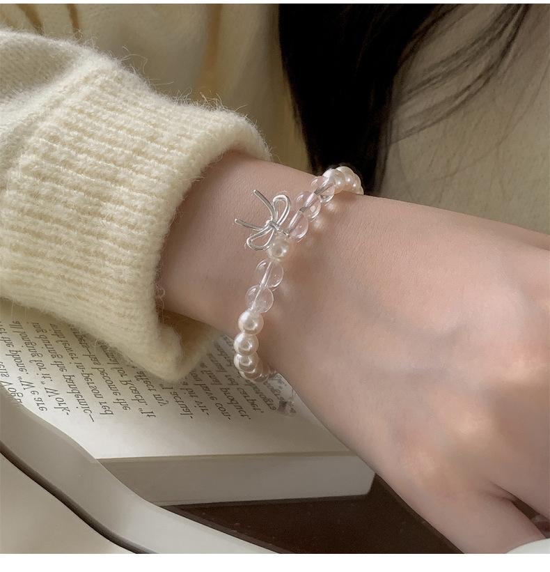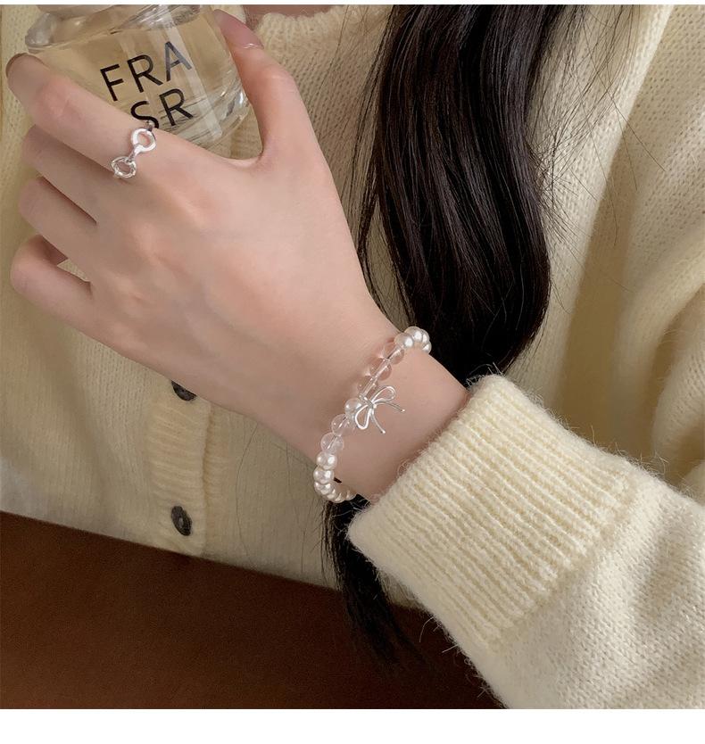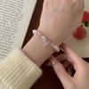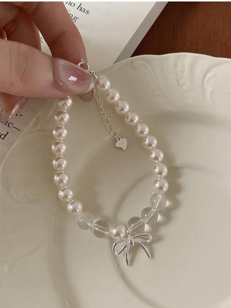 Pulsera de Plata Esterlina S925 con Cristal y Perla con Lazo para Mujer, Estilo Coreano, Combinable con Todo, Estilo Ins, Diseño de Lujo Ligero, Pulsera para Usar Apilada