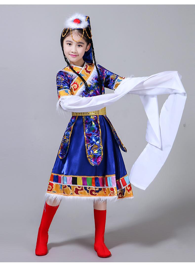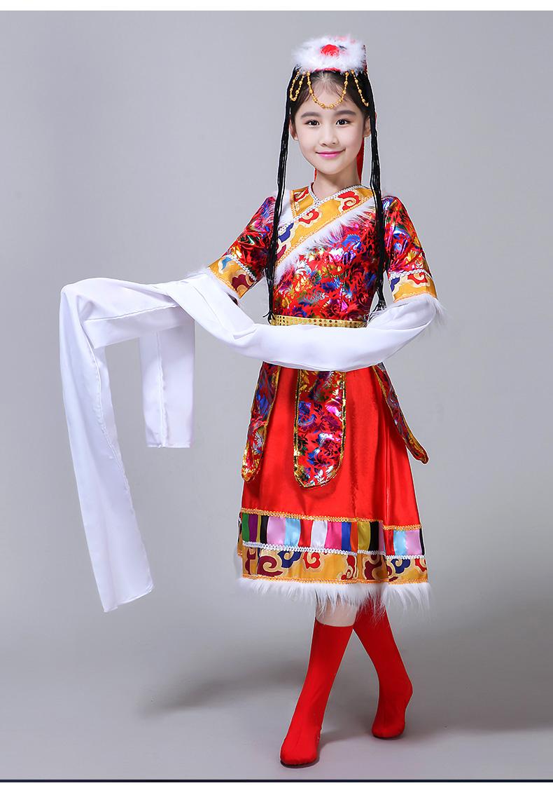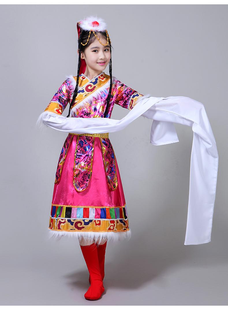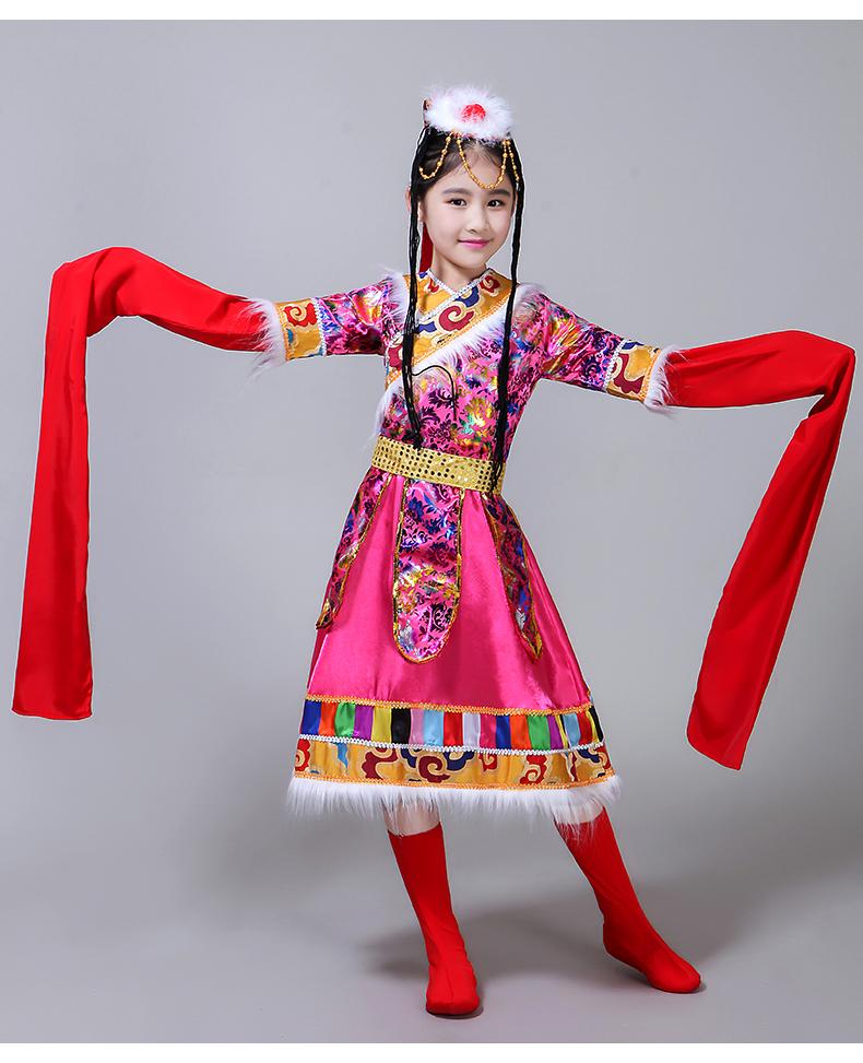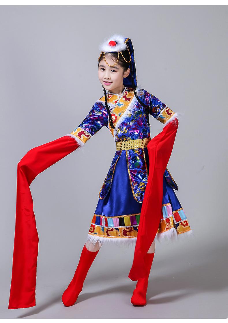 Traje de Danza Xizang para Niños Traje de Actuación Traje de Manga de Agua Xizang para Niños Traje de Danza para Niñas de Minorías