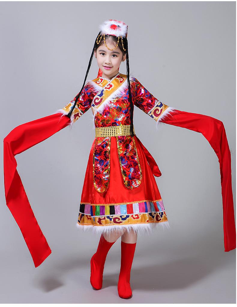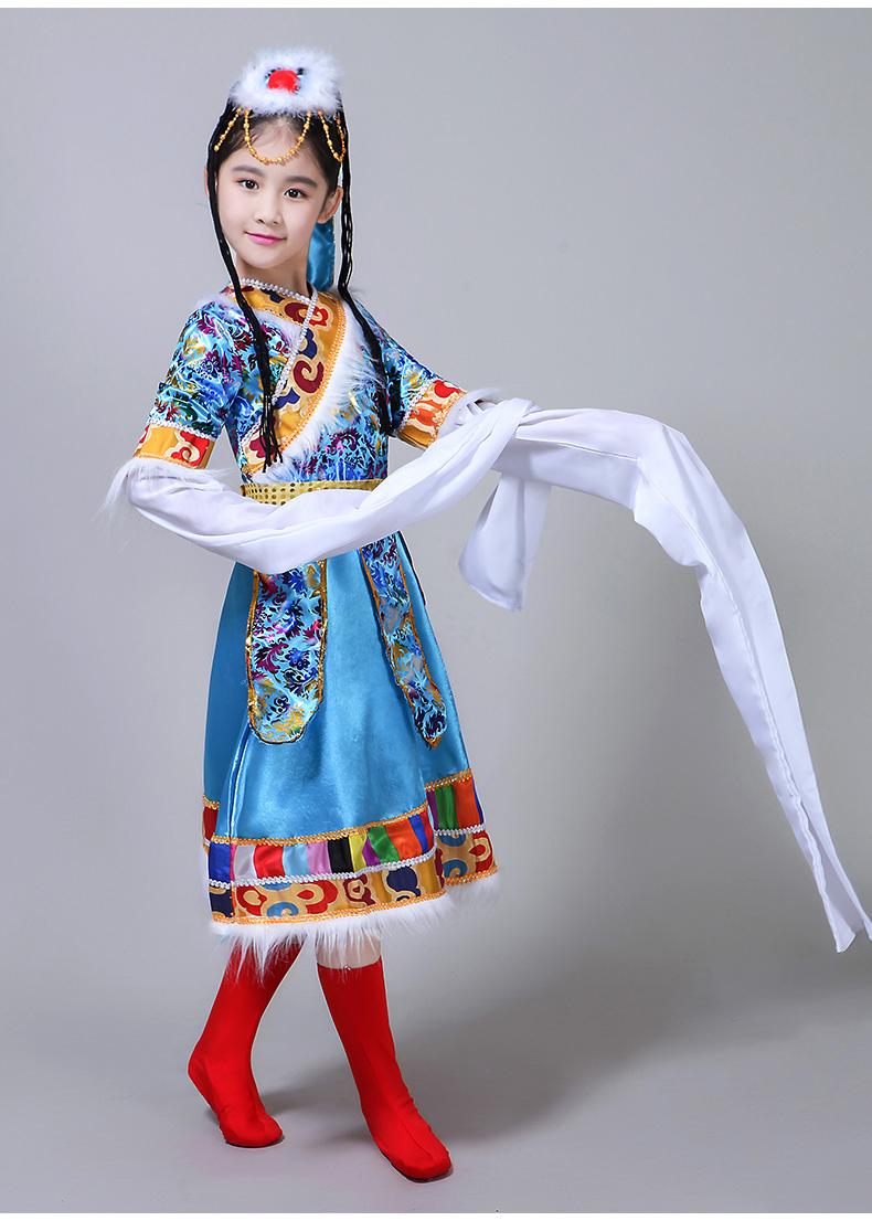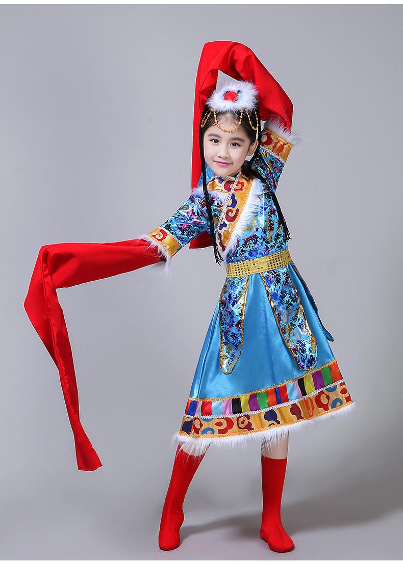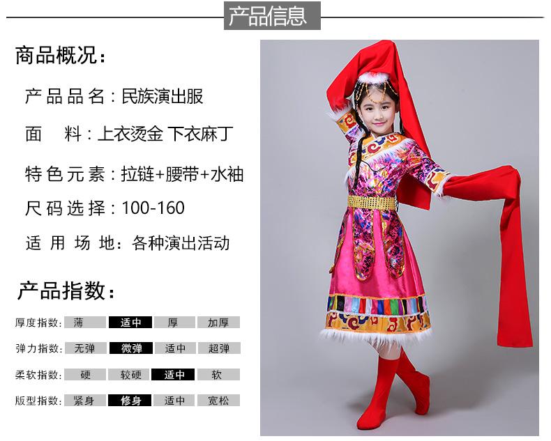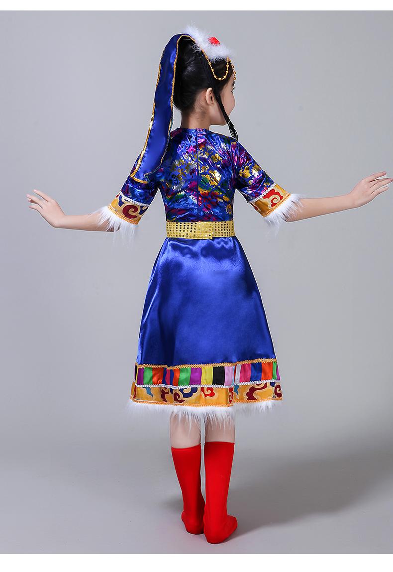 Traje de Danza Xizang para Niños Traje de Actuación Traje de Manga de Agua Xizang para Niños Traje de Danza para Niñas de Minorías