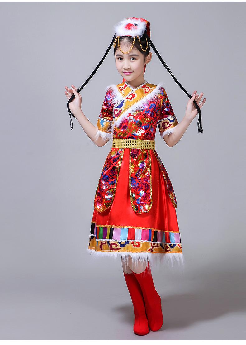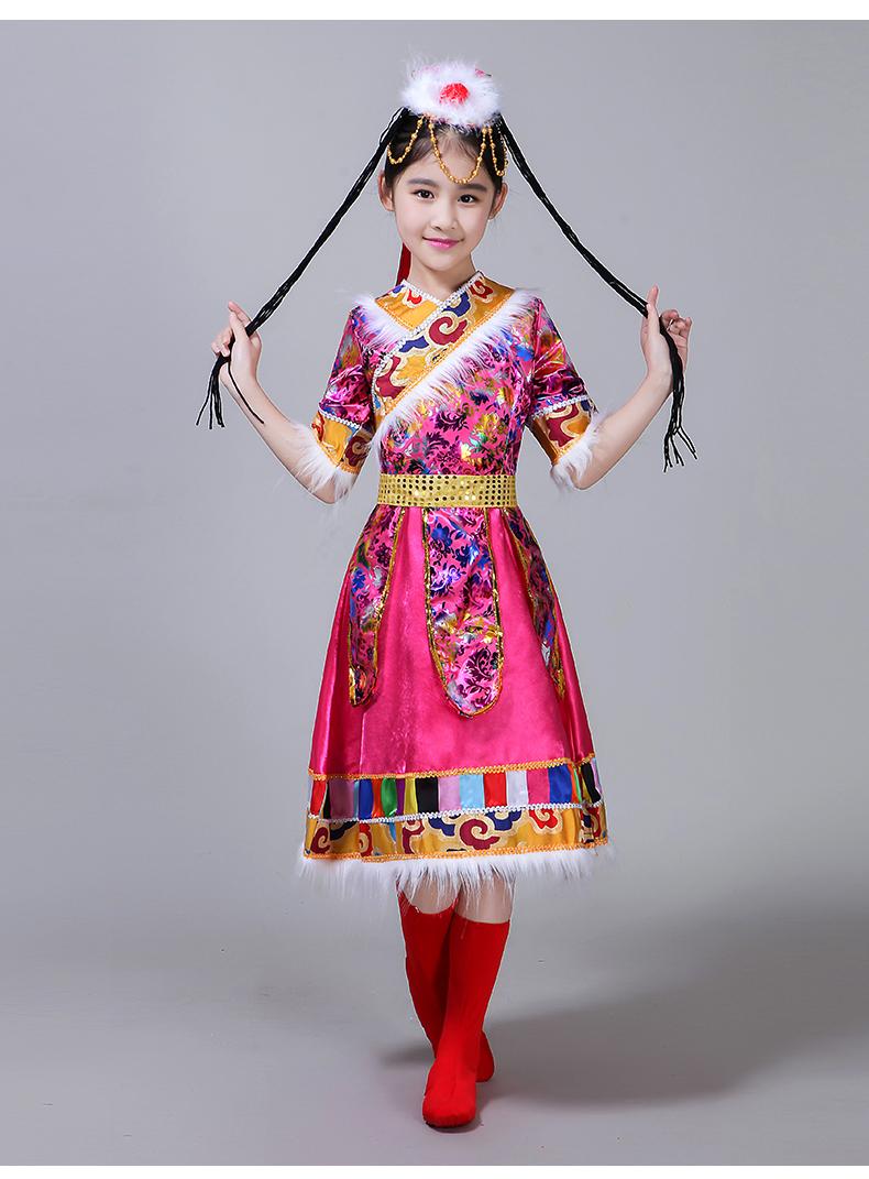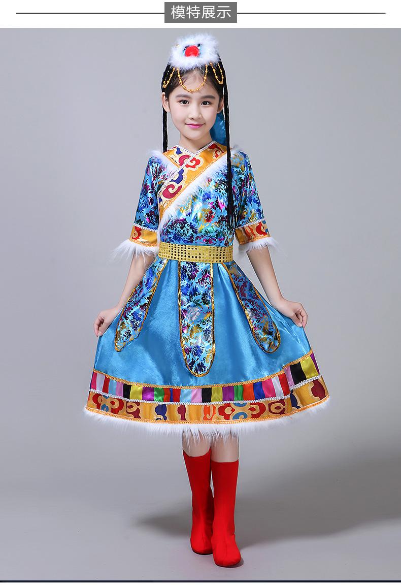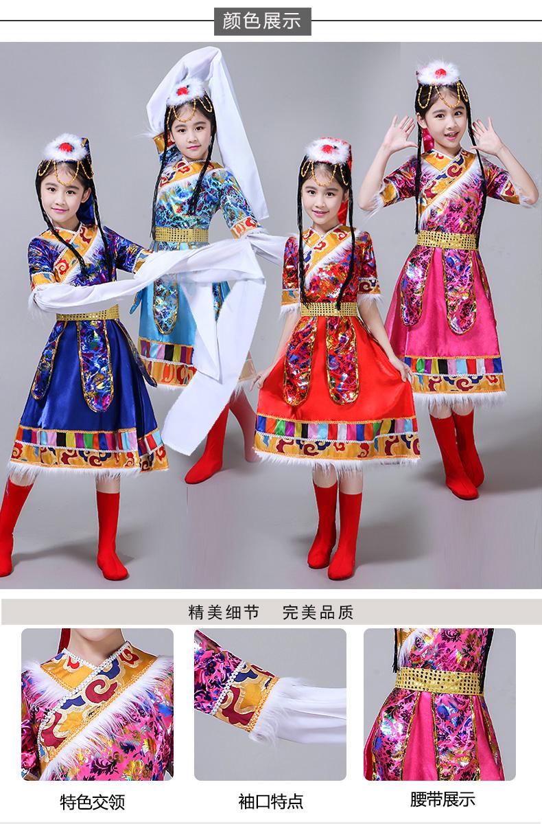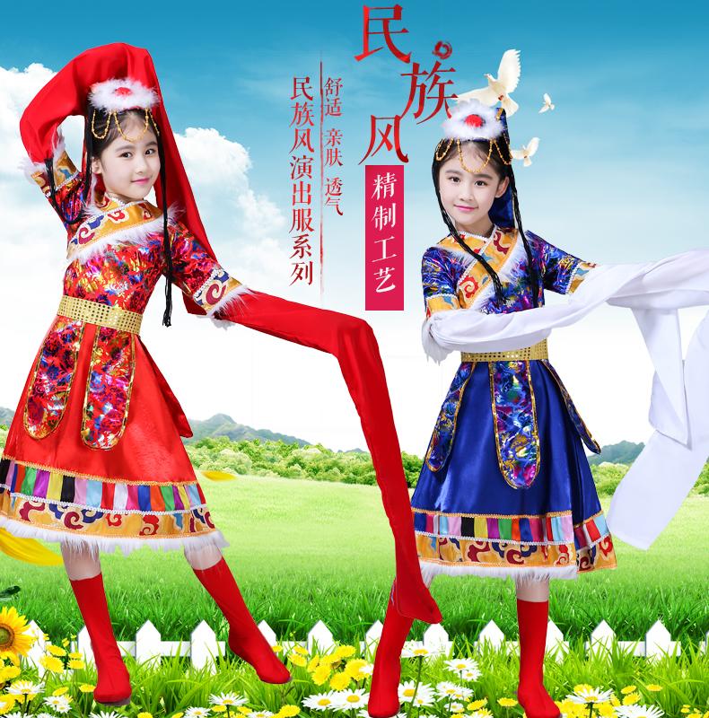Traje de Danza Xizang para Niños Traje de Actuación Traje de Manga de Agua Xizang para Niños Traje de Danza para Niñas de Minorías