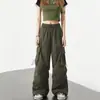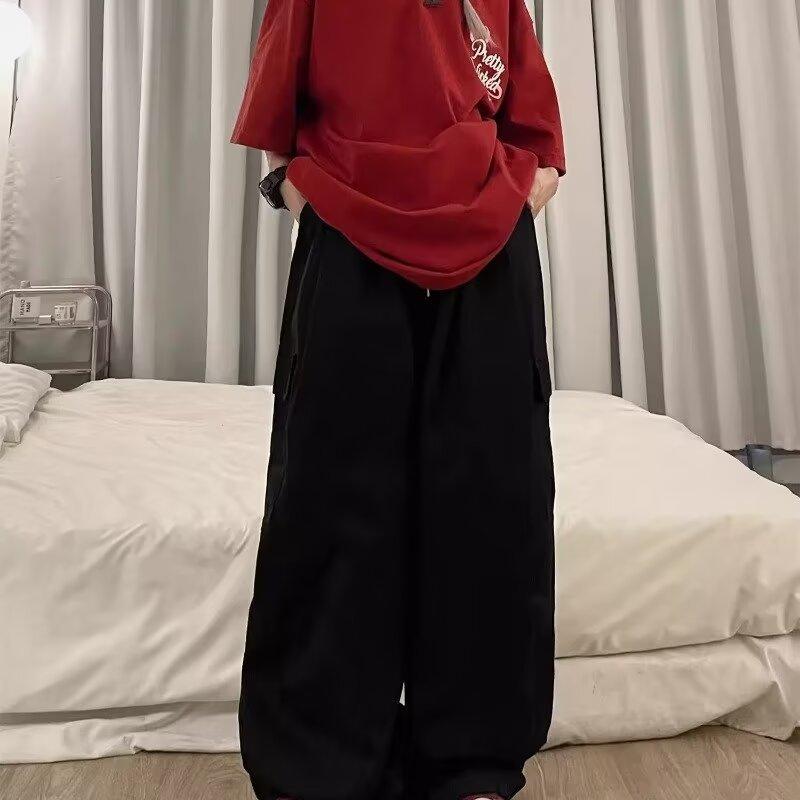 Jeans de ropa de trabajo americana para mujer 2025 verano nuevo suelto cintura alta multibolsillo slim pierna ancha pantalones largos hasta el piso
