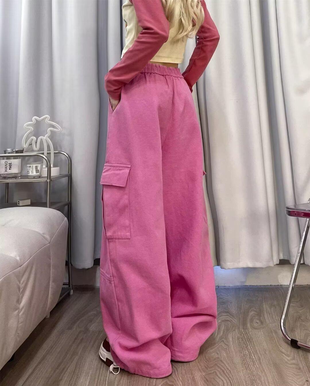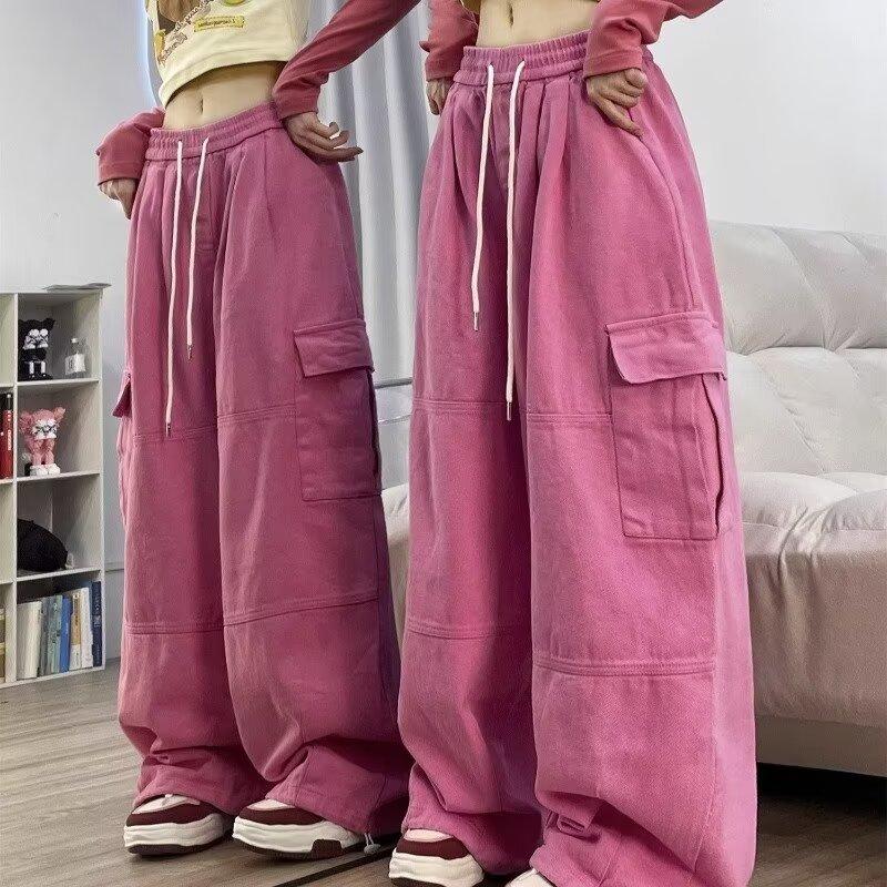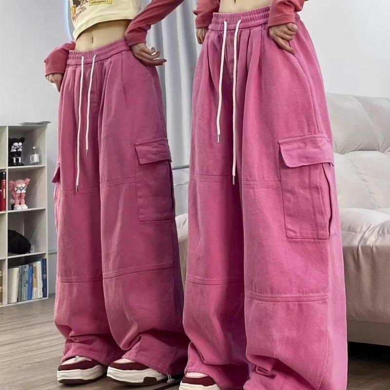 Pantalones vaqueros de trabajo multibolsillos color albaricoque para mujer, primavera y otoño, nuevos, de cintura alta, sueltos, de pierna ancha, ajustados, combinables, casuales, a la moda