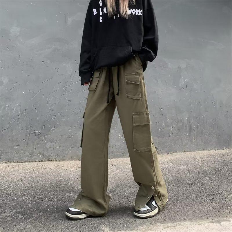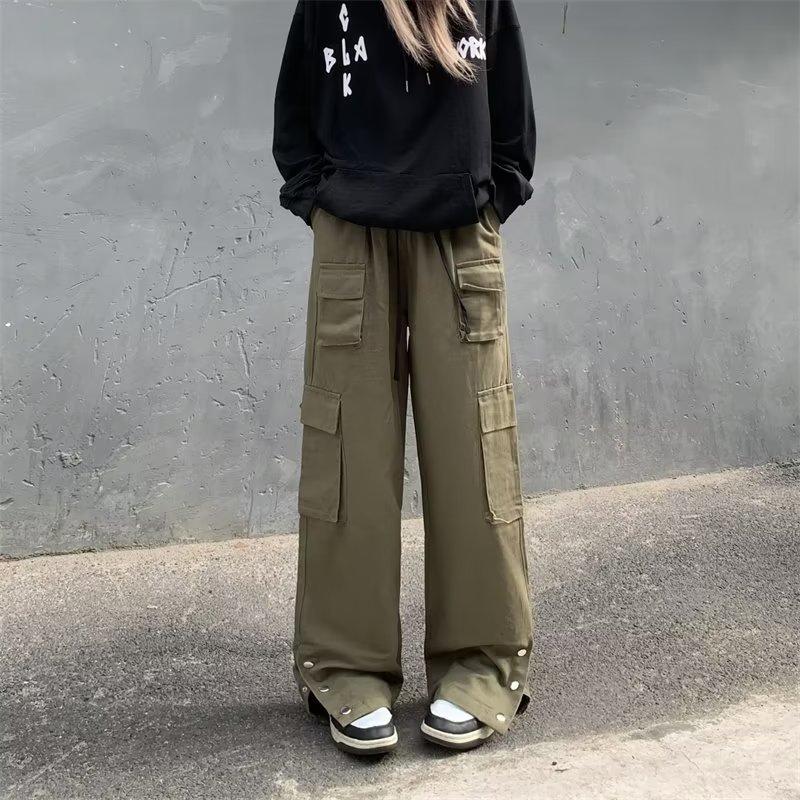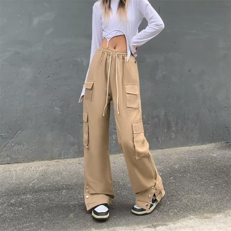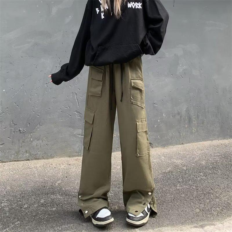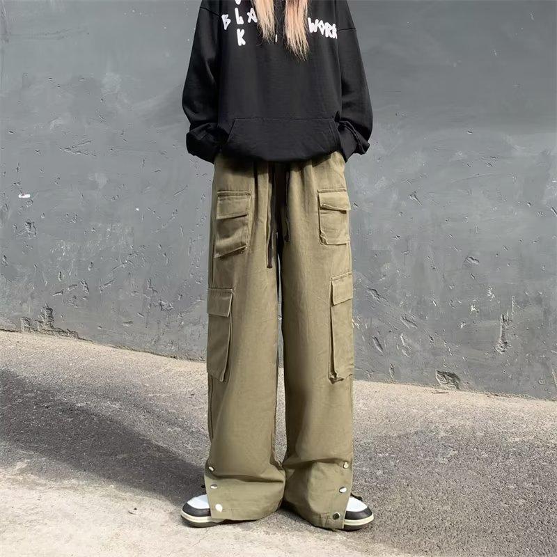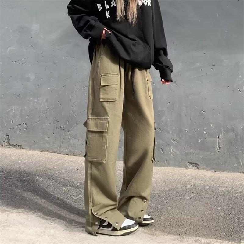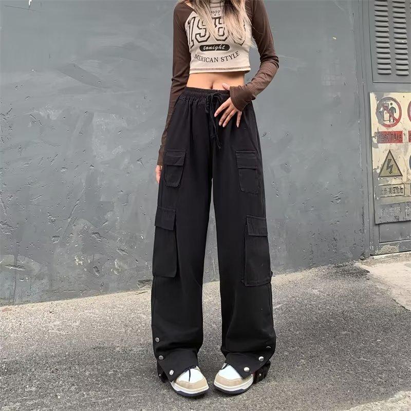 2023 nuevo peto americano retro multibolsillos desgastado para mujer moda calle holgado slim recto pantalones tendencia