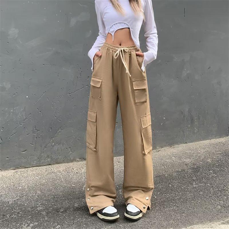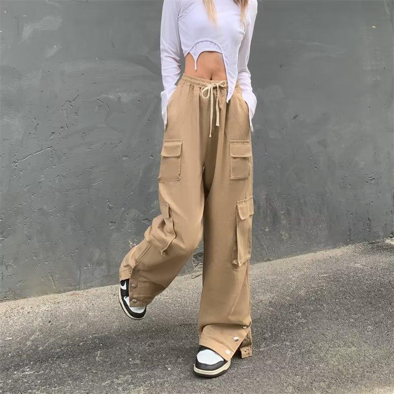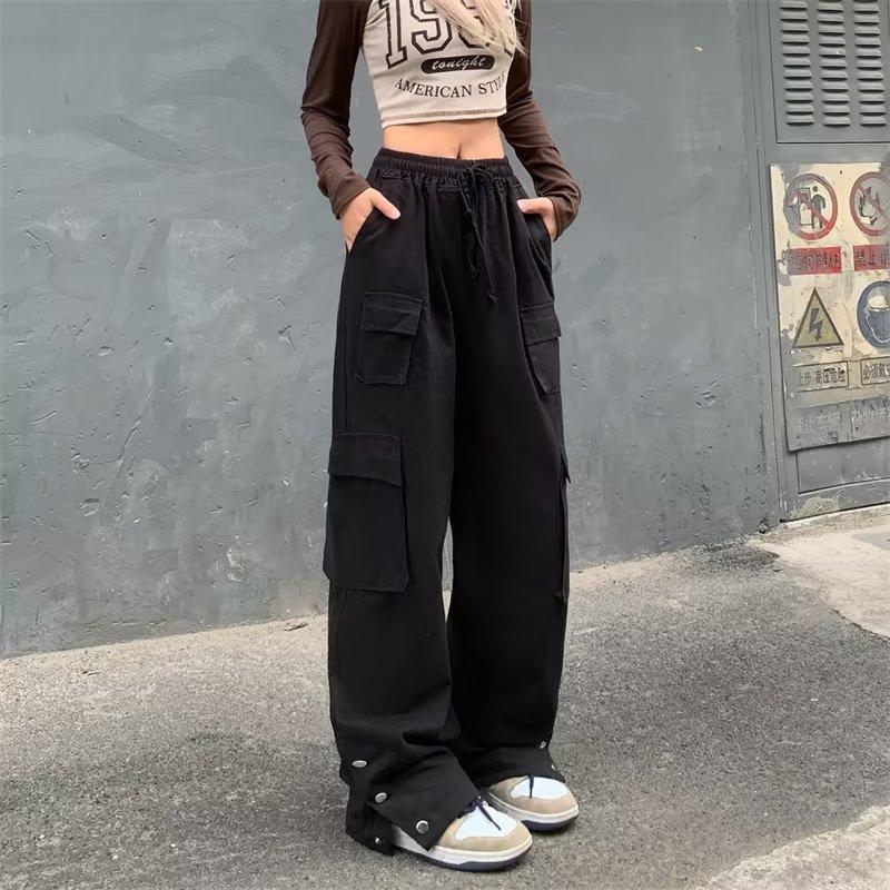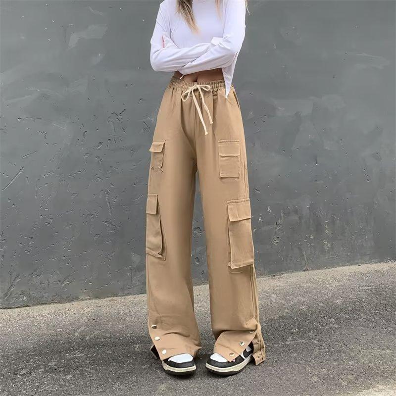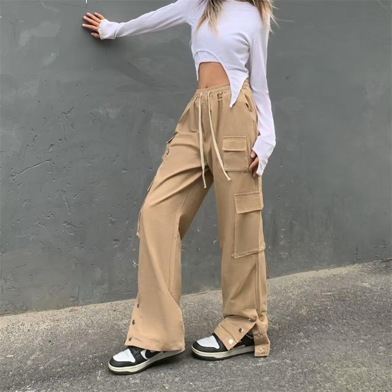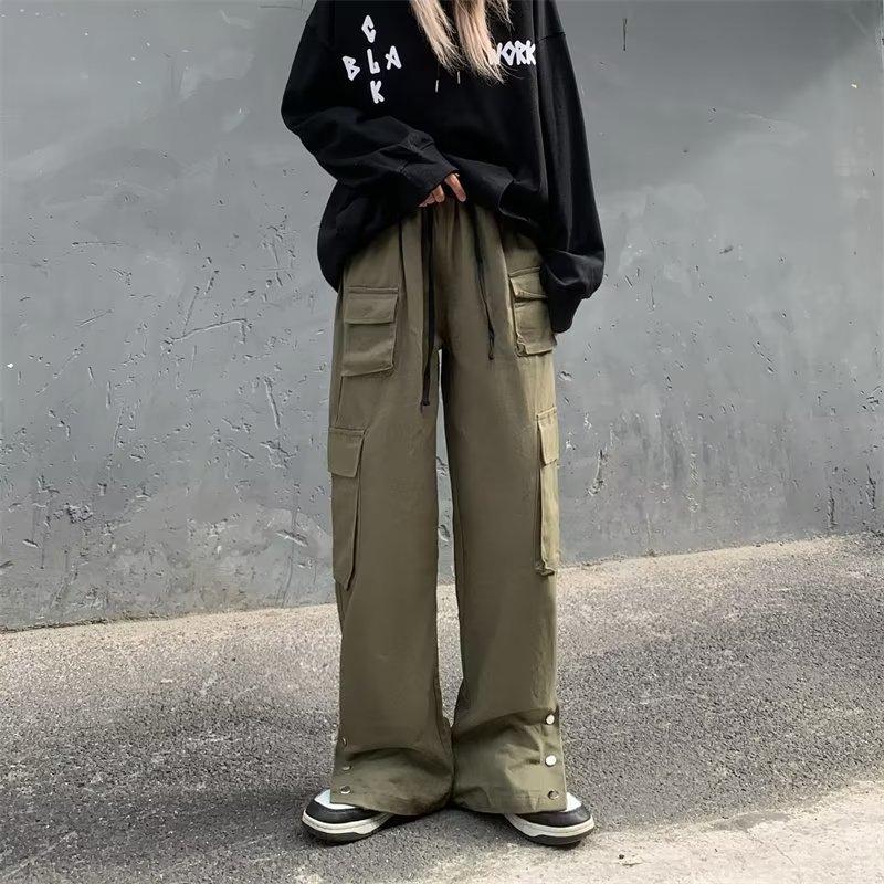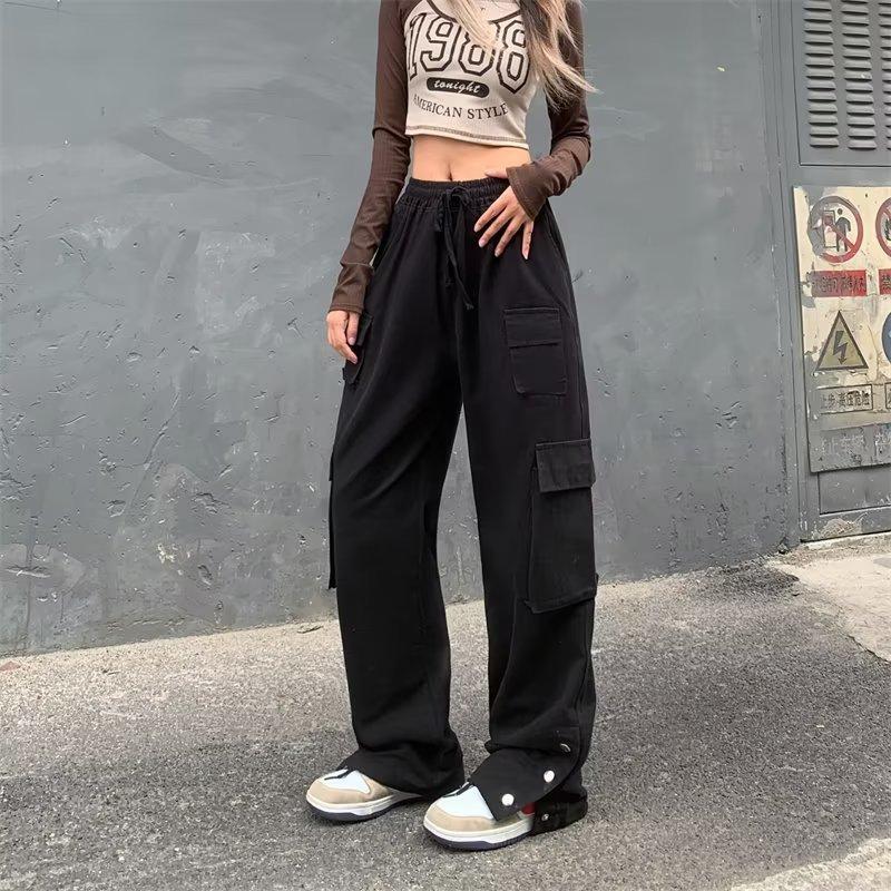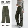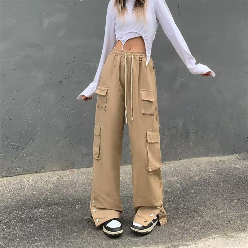 2023 nuevo peto americano retro multibolsillos desgastado para mujer moda calle holgado slim recto pantalones tendencia