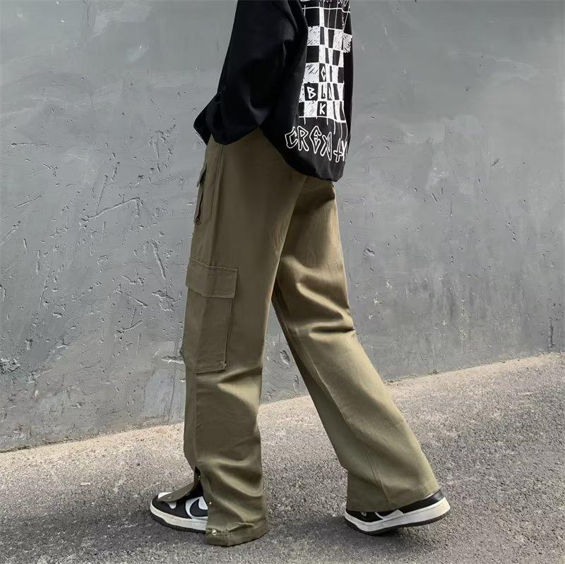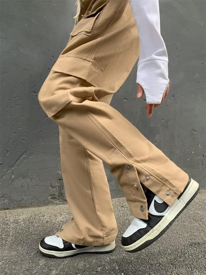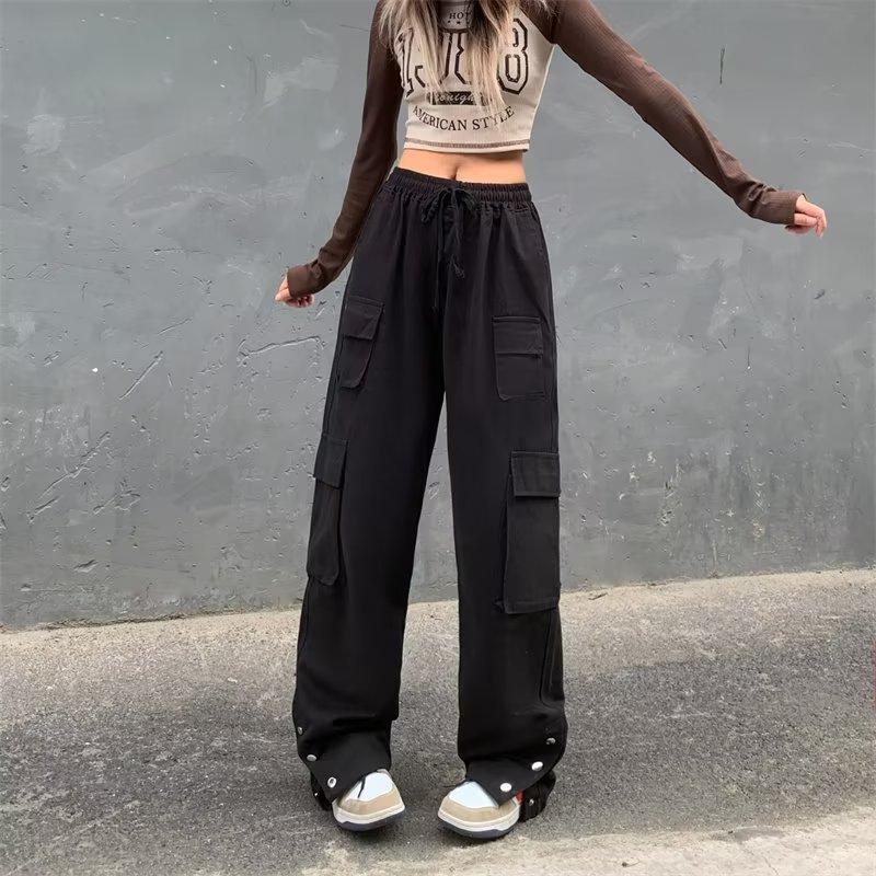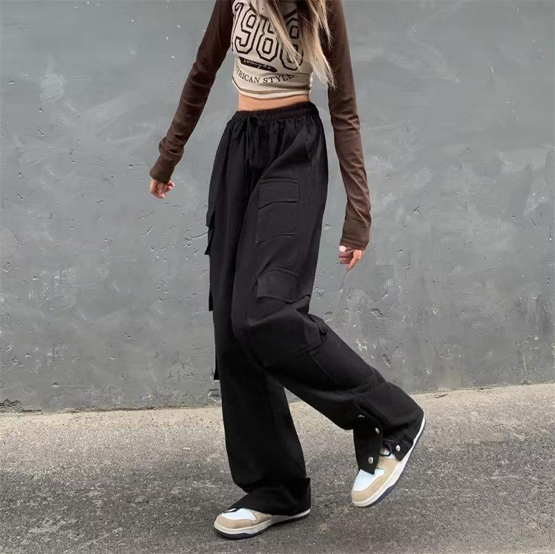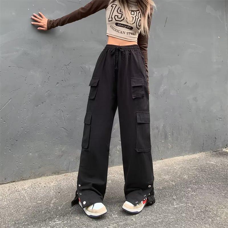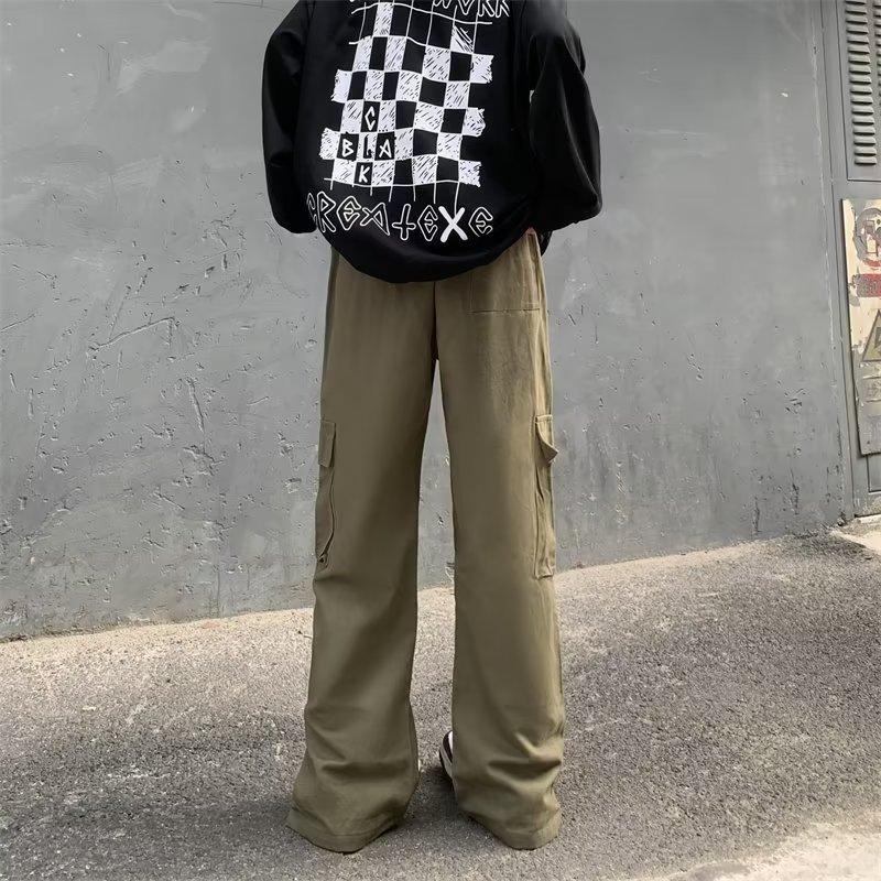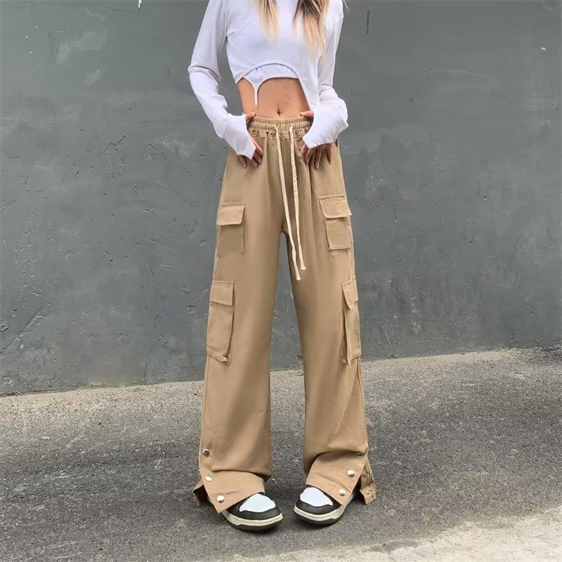 2023 nuevo peto americano retro multibolsillos desgastado para mujer moda calle holgado slim recto pantalones tendencia