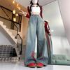 Tirantes de mezclilla de un solo hombro para mujer, verano 2024, nuevo diseño, pantalones holgados de pierna ancha, versátiles, de cintura alta y largos hasta el suelo.