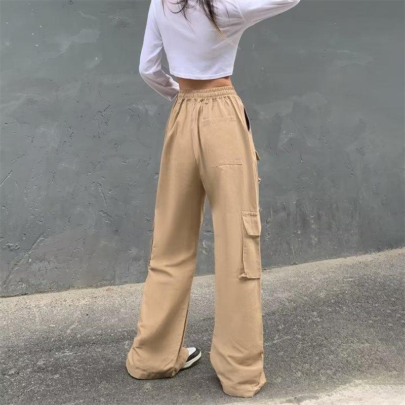 Pantalones vaqueros de trabajo multibolsillos color albaricoque para mujer, primavera y otoño, nuevos, de cintura alta, sueltos, de pierna ancha, ajustados, combinables, casuales, a la moda