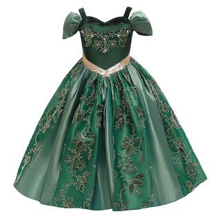 Nuevo vestido de verano con hombros descubiertos de la Princesa Anna de Frozen para niñas, vestido de princesa para actuaciones |