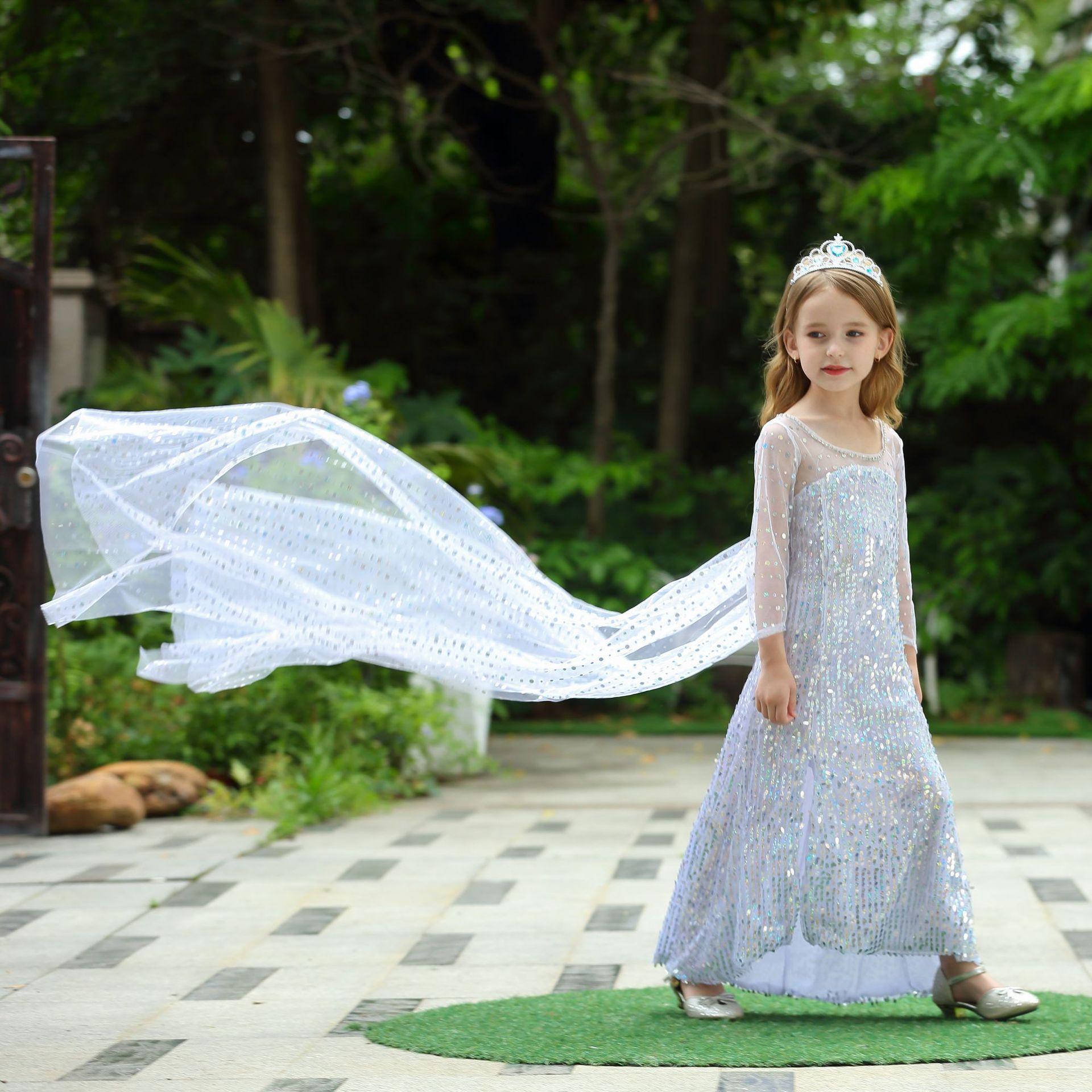 Vestido de niña estilo europeo y americano 2021, vestido de princesa, traje de princesa Elsa de Frozen 2 |