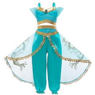 Disfraz de cosplay para niños europeos y americanos de Halloween Ala Shen Ding, princesa Jasmine, conjunto de 2 piezas con top y falda con lentejuelas |