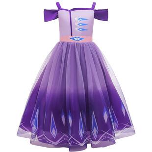Vestido de princesa Anna de Frozen 2, bonito vestido de princesa de alta gama con hombros descubiertos y manga corta. |