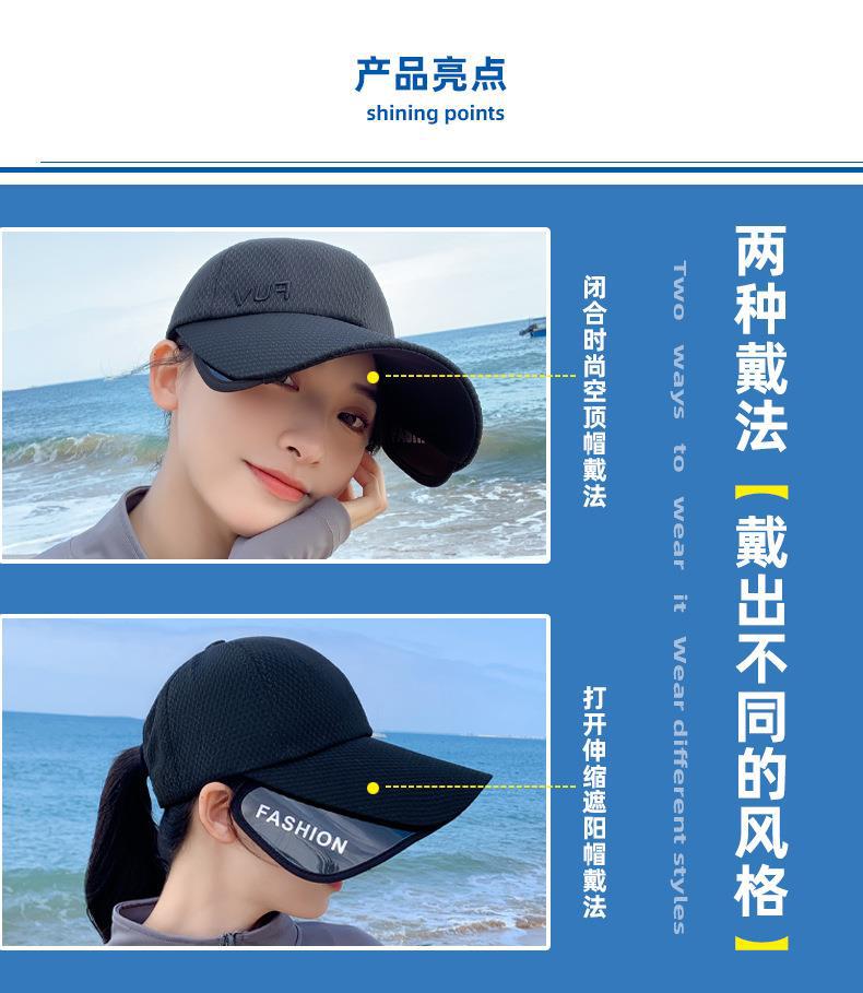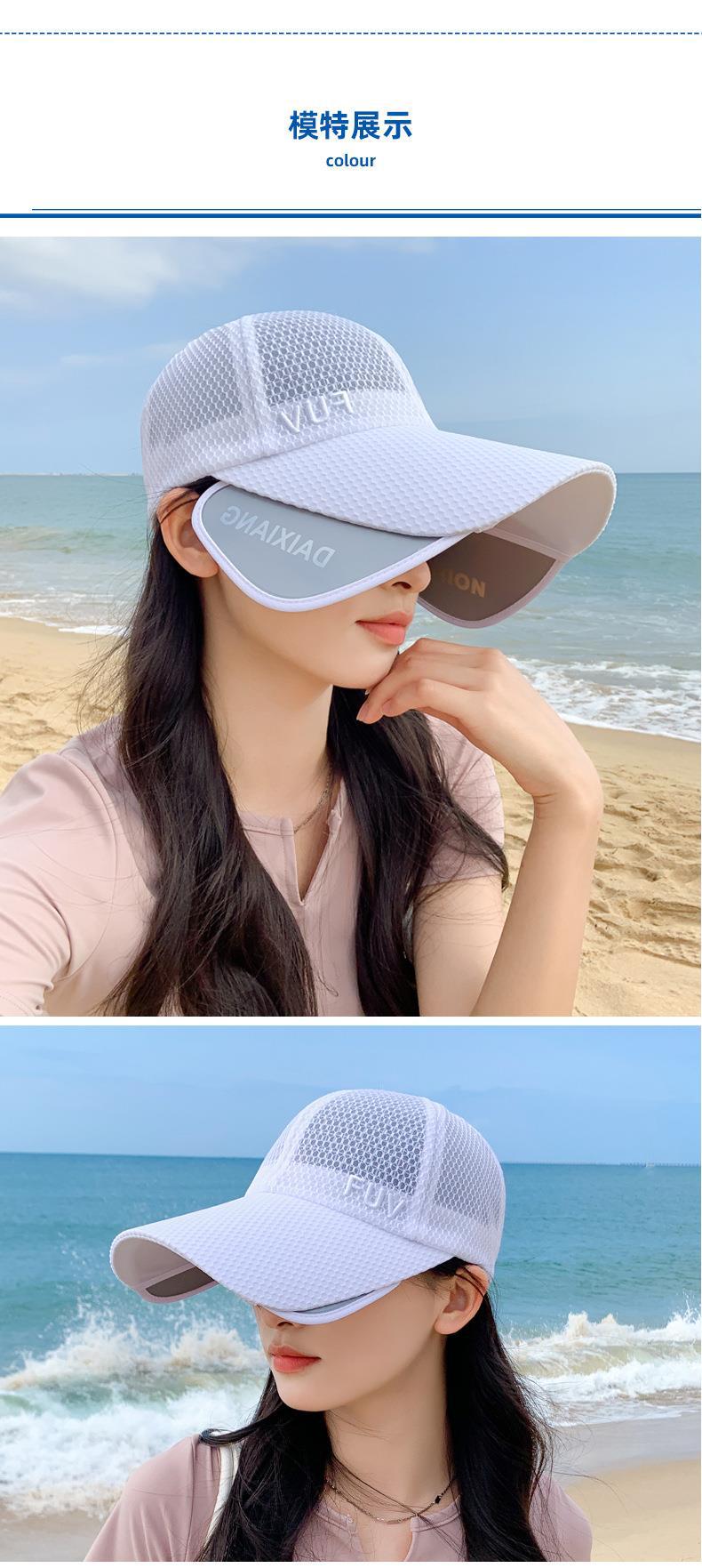 Nuevo sombrero de verano de estilo coreano para mujer, con letras bordadas, retráctil, para el sol, transpirable, para exteriores