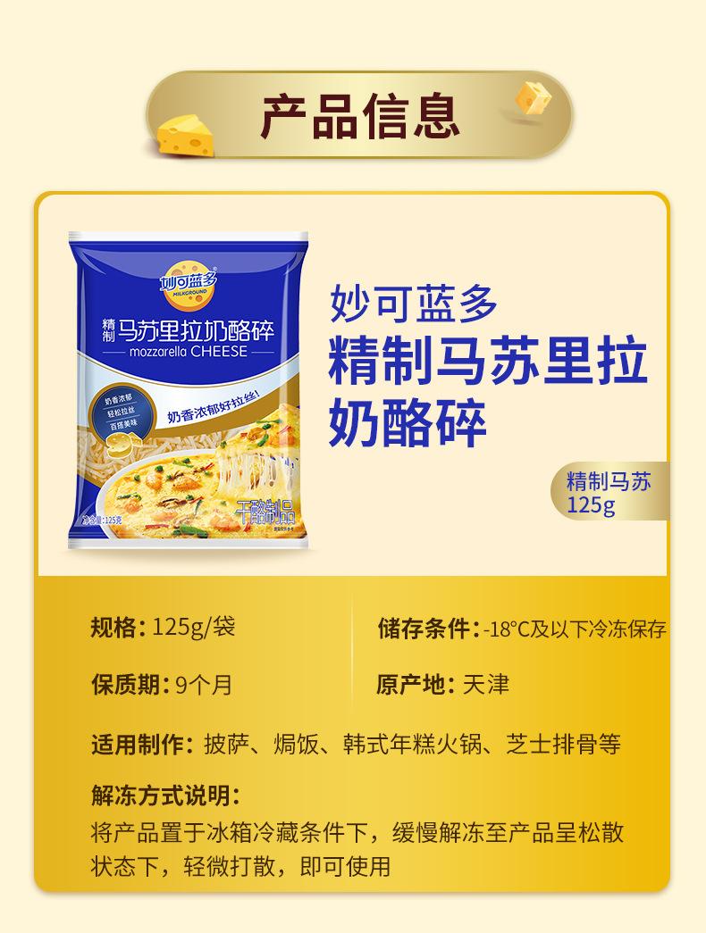 Queso Mozzarella Rallado Miao Ke Lan Duo 125g para Pizza, Arroz Horneado y Horneado