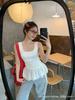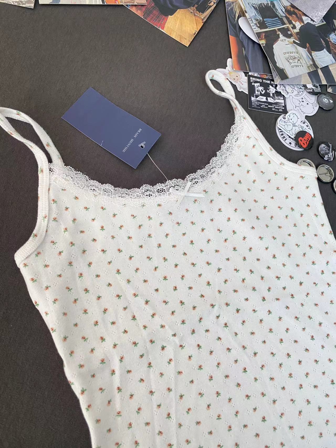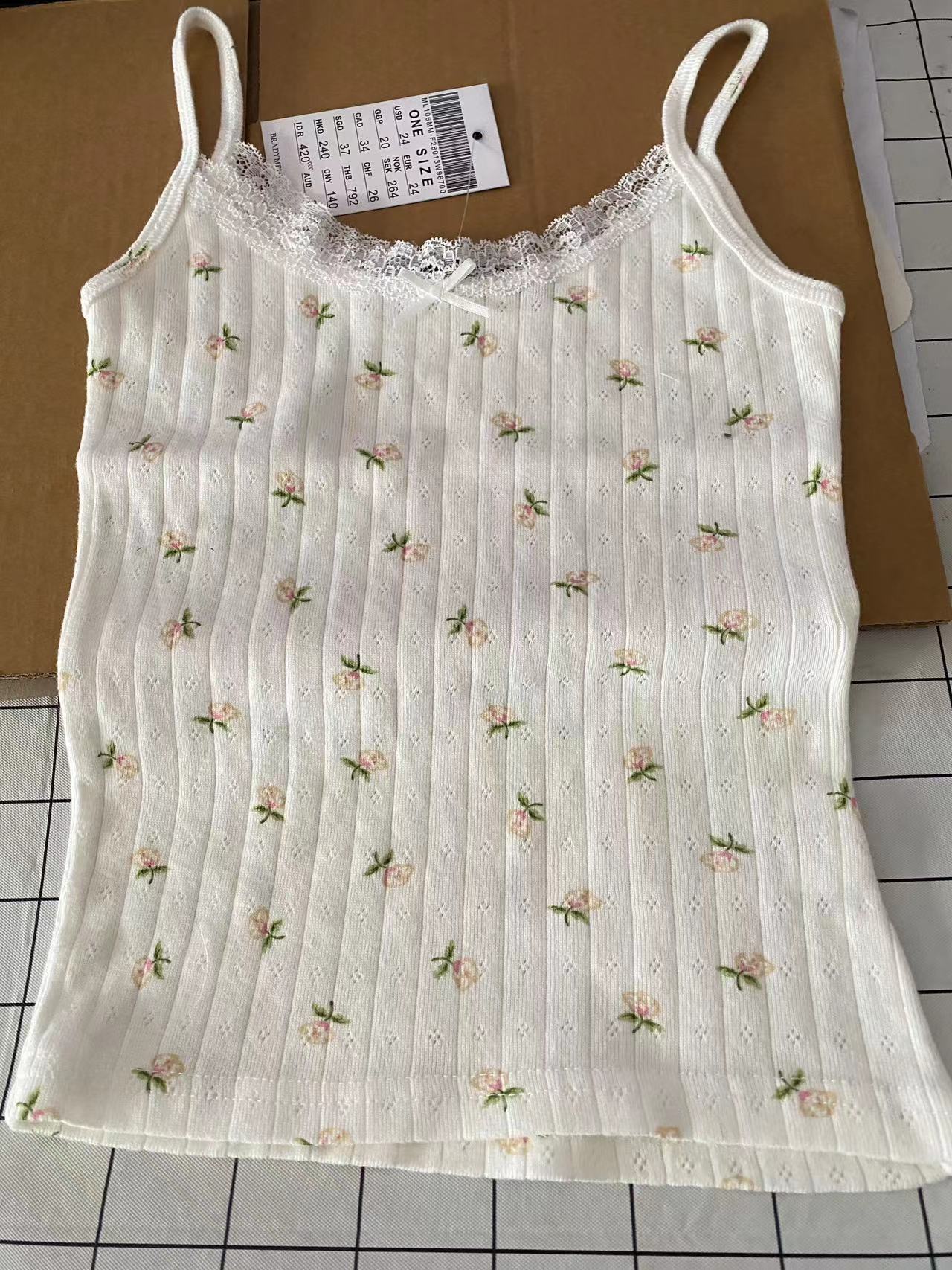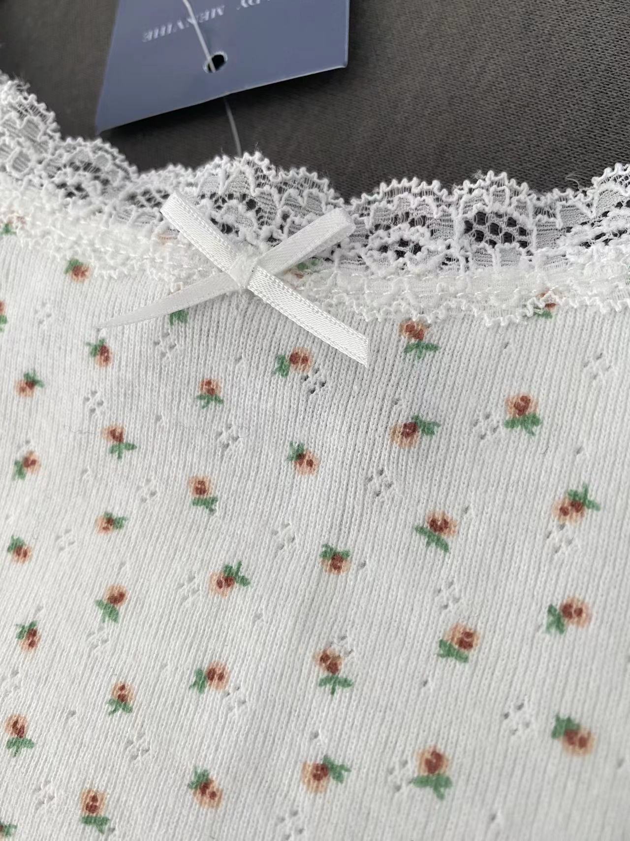 Camisola estilo americano vintage con lazo y encaje rojo floral para mujer, estilo BM, top corto puro para chica sexy BM