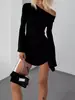Vestido de tirantes adelgazante sexy con escote descubierto para mujer, otoño e invierno, estilo europeo y americano.