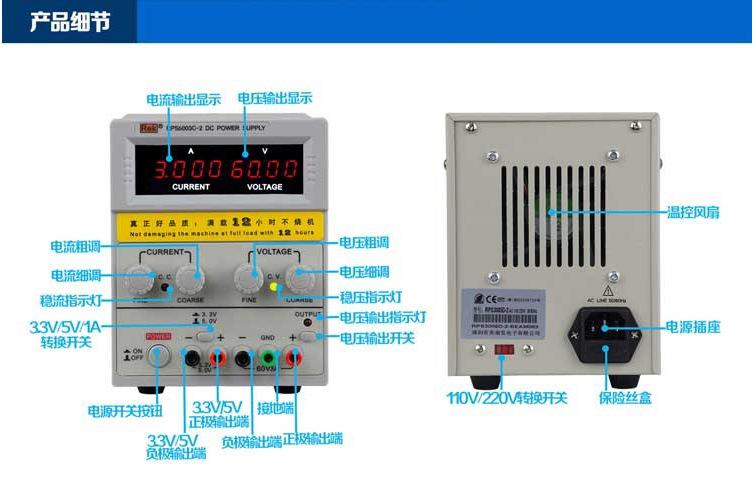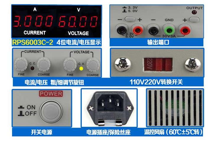 Fuente de alimentación CC con pantalla digital RPS3003C-2 americana auténtica original 0-30V 0-3A nueva fuente de alimentación CC