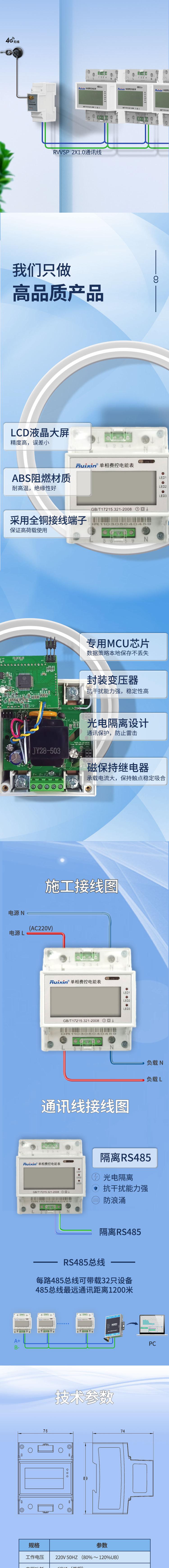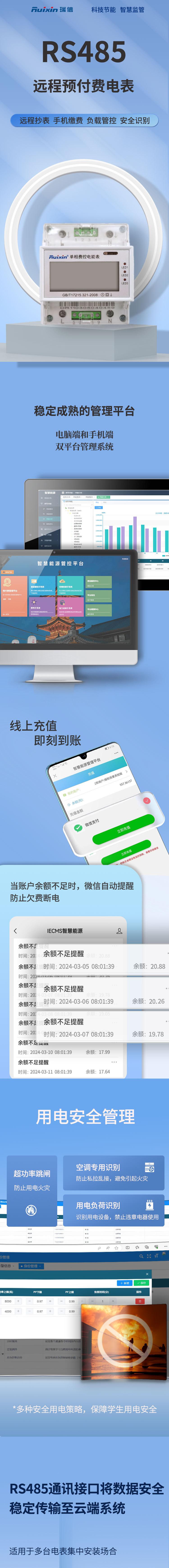 Medidor Inteligente Ruixin Monofásico 4P Medidor Montado en Riel Prepago Monitoreo de Consumo de Energía Lectura Remota de Medidor Medidor de Campus