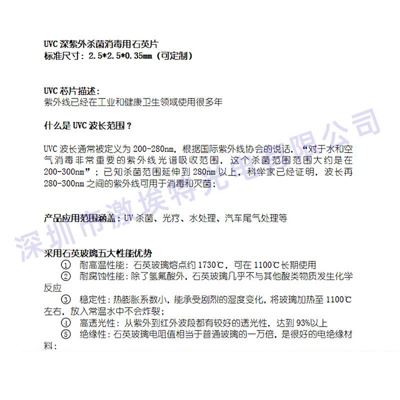 Suministro de Fabricantes Paquete de Mecha LED Ventana de Cuarzo UVC Desinfección UV Hoja de Cuarzo 222nm