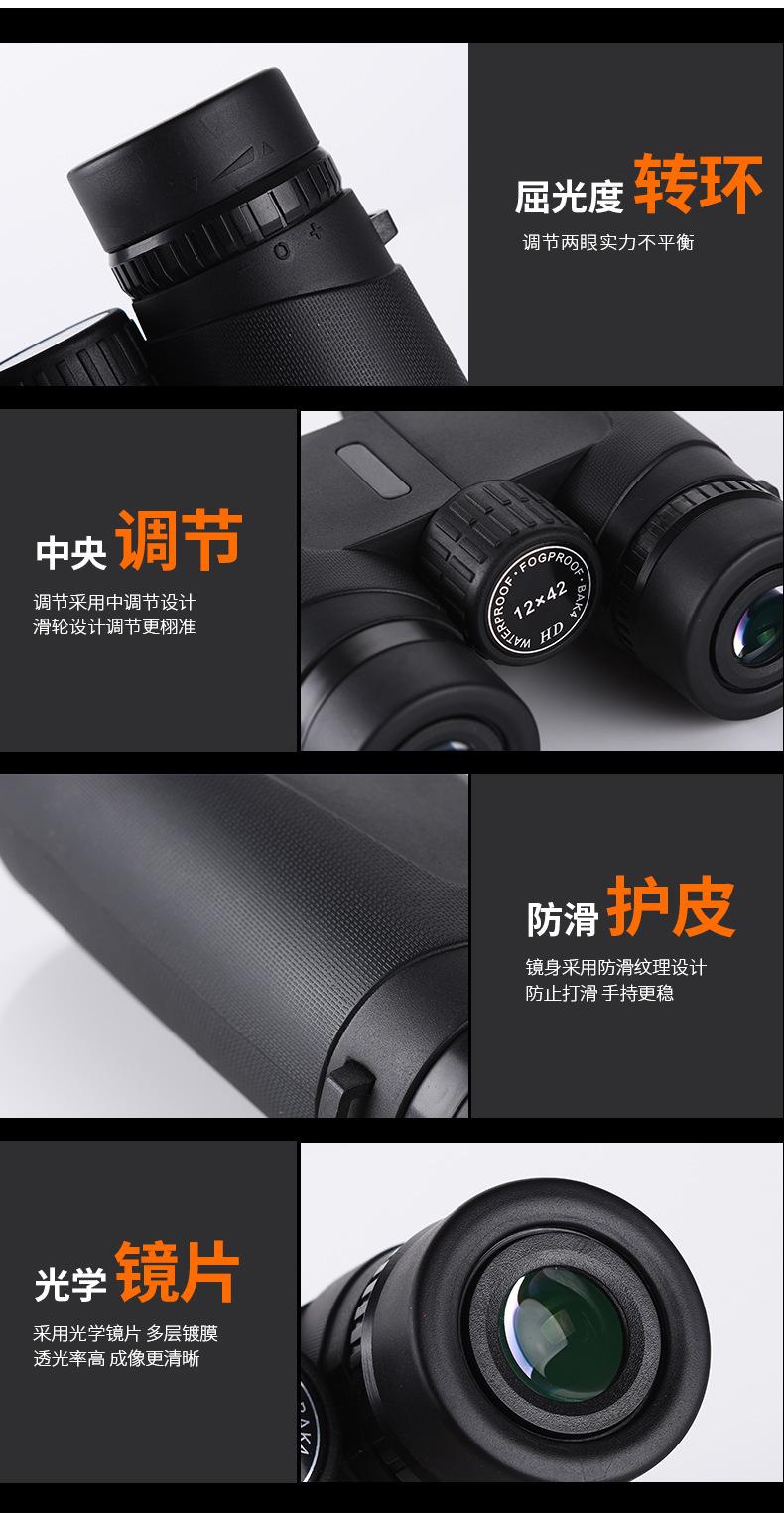 Venta al por mayor de fábrica telescopio 12x42 binoculares HD de alta potencia concierto civil exterior transmisión cruzada en vivo
