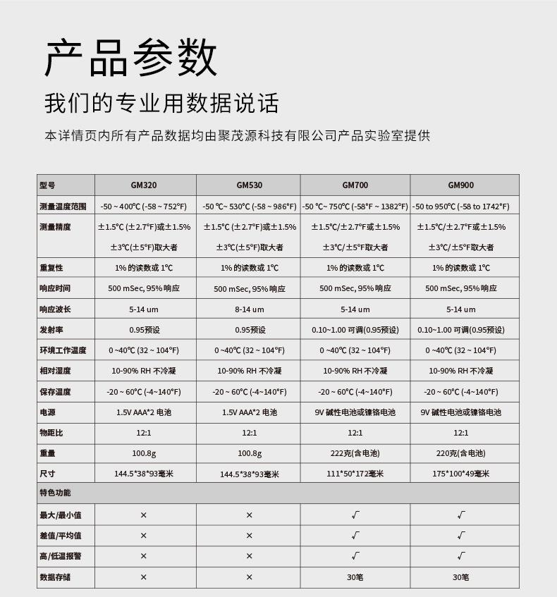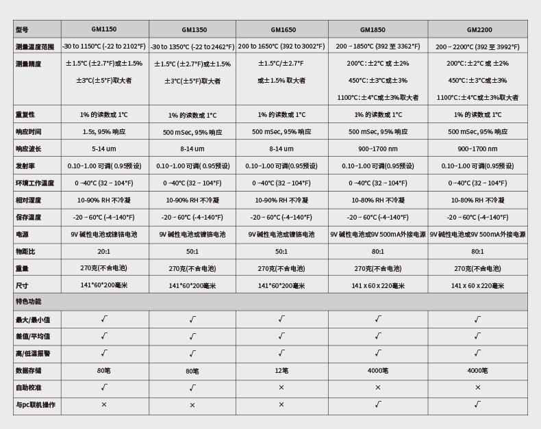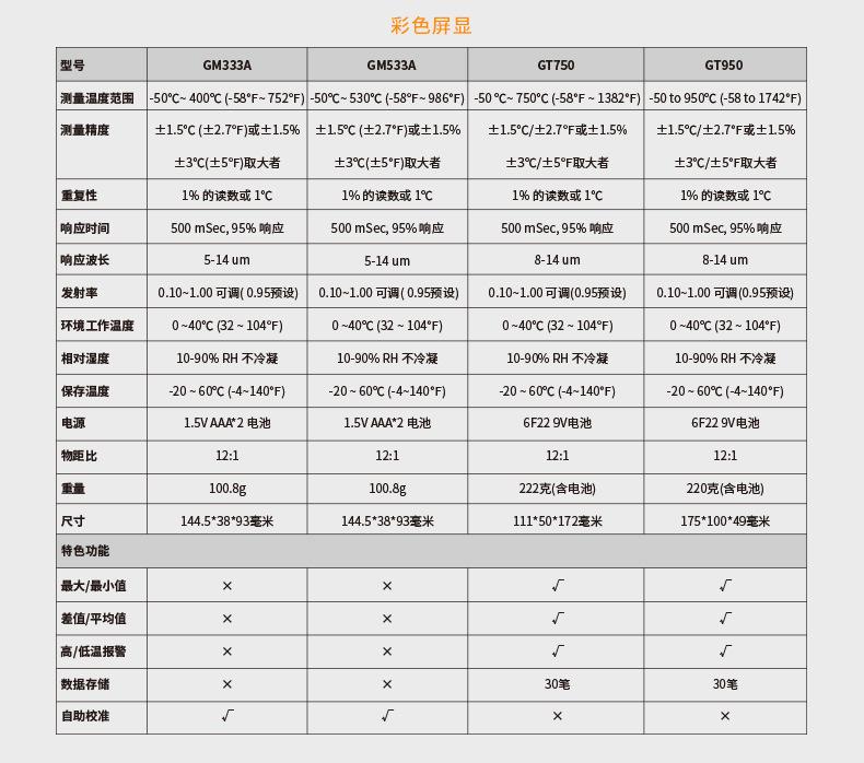 GM320(-50-400 degrees), GM321(-50-400 degrees), GT303A(-50-400 degrees), GT303B(-50-600 degrees), Gt323a (-50-...