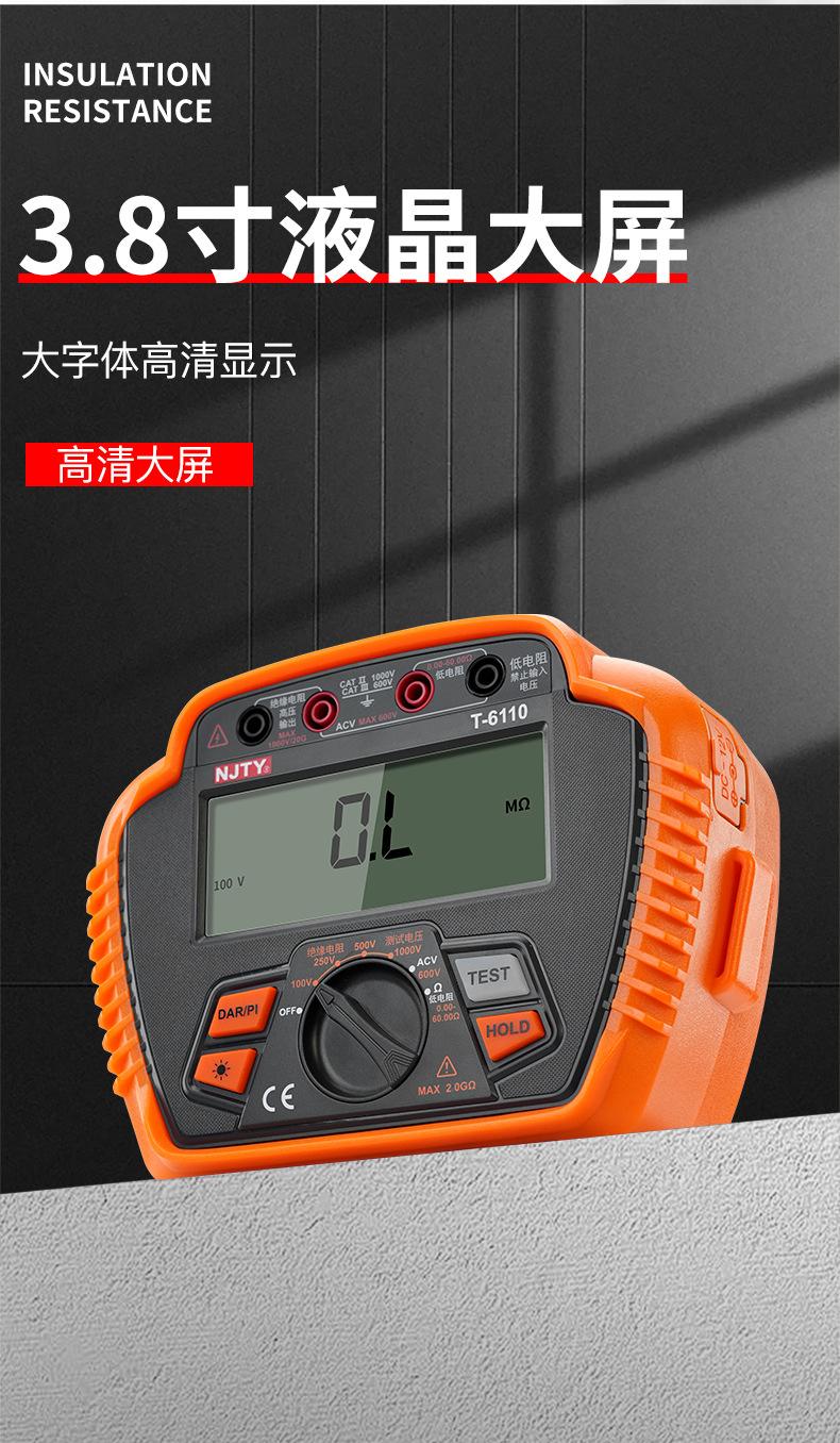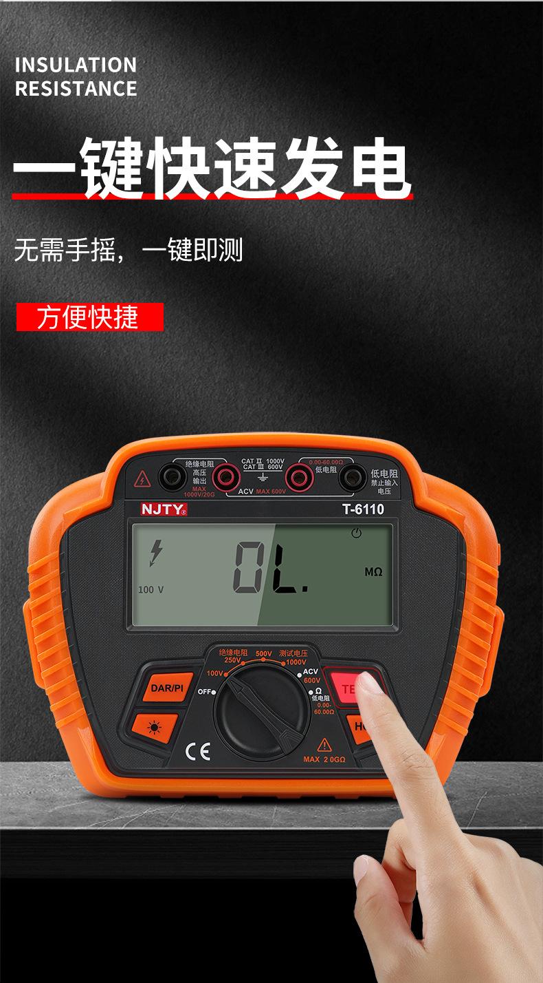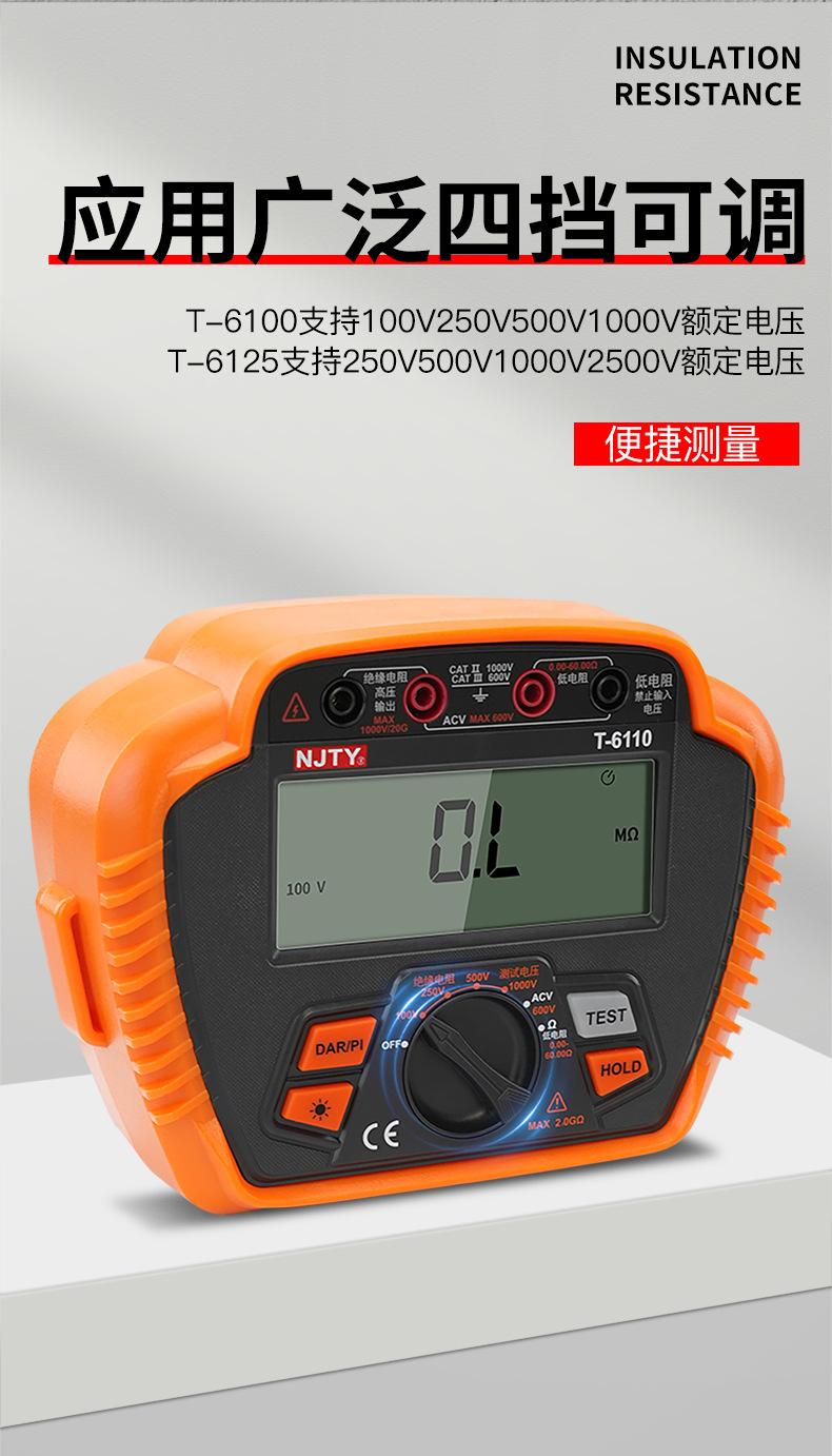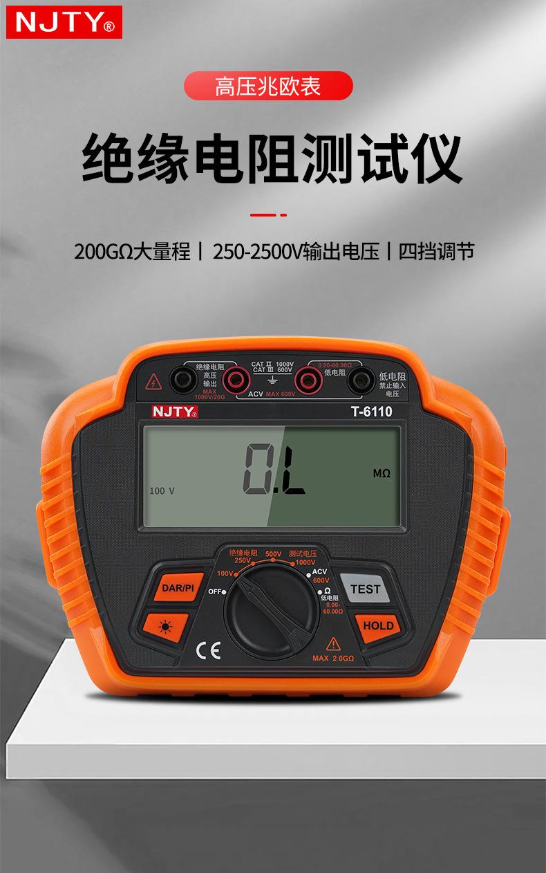 Probador de resistencia de aislamiento NJTY, megóhmetro de 2500 V, alto voltaje, 1000 V, agitador electrónico T-6110 T-6125