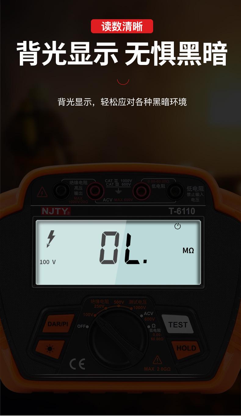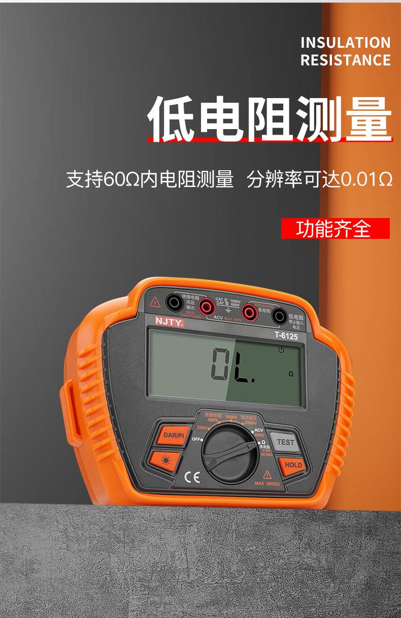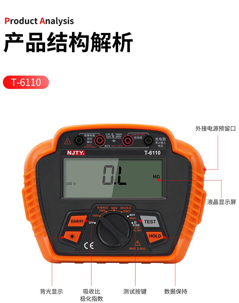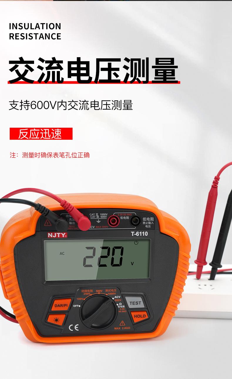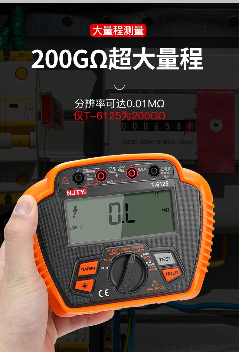 Probador de resistencia de aislamiento NJTY, megóhmetro de 2500 V, alto voltaje, 1000 V, agitador electrónico T-6110 T-6125