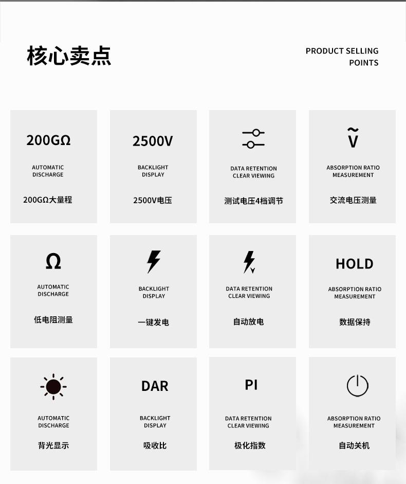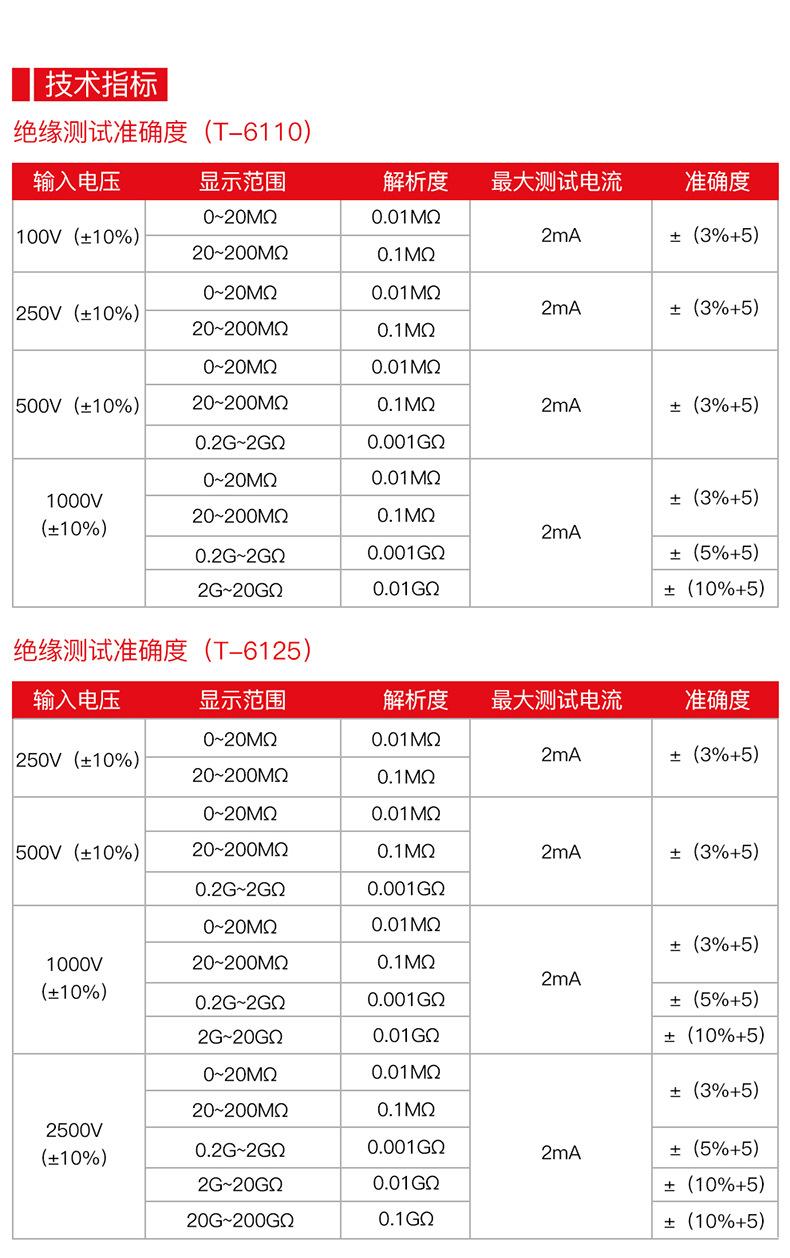 T-6125 standard [output 250-2500V] range: 200GΩ