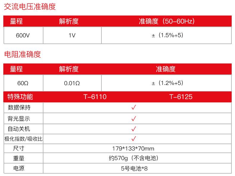 T-6110 standard [output 100-1000V] range: 20 GΩ, T-6110 standard configuration + No. 5 rechargeable lithium ba...